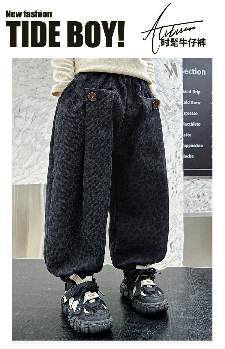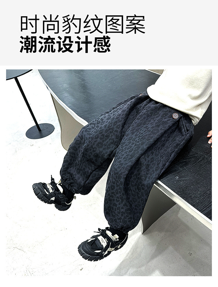 남학생과 여학생 바지 2024 레오파드 무늬 가을 · 겨울 새 어린이 겨울 기모 바지