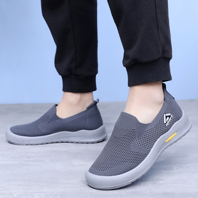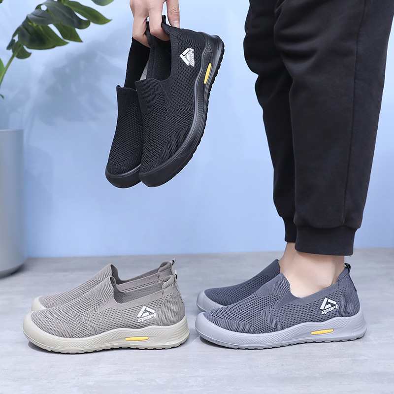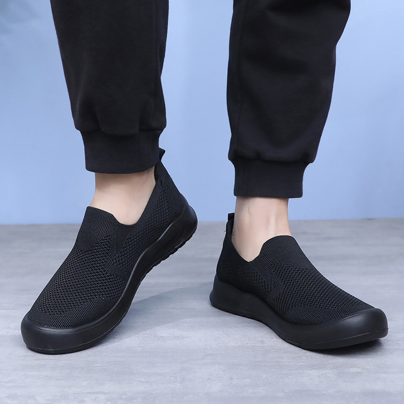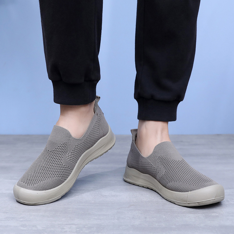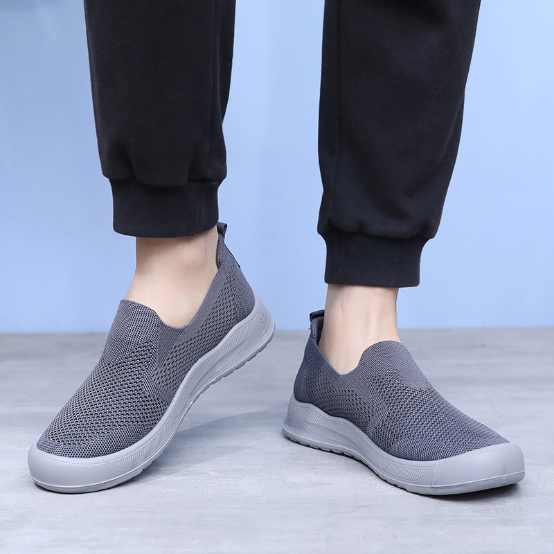 신발 남성 비행 직조 통기성 캐주얼 신발 소프트 단독 경량 슬립 온 아빠 신발 도매 간단한 올 매치 워킹 슈즈