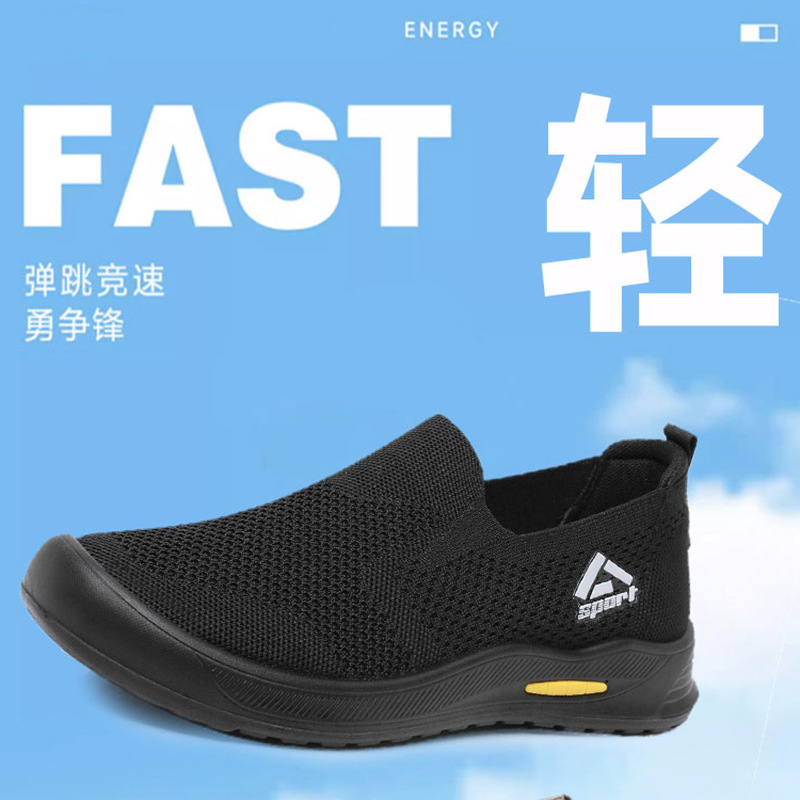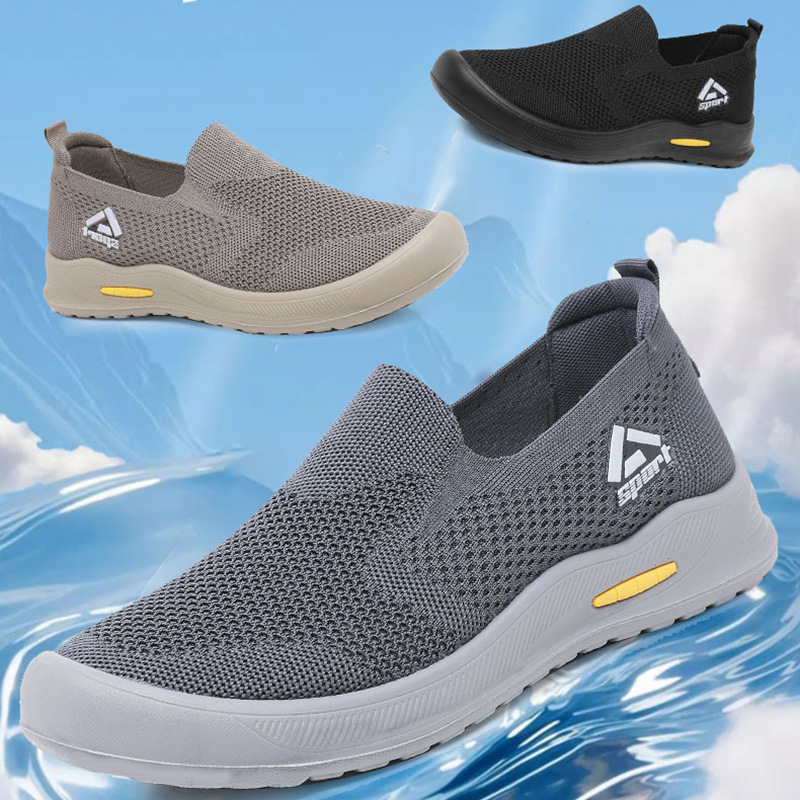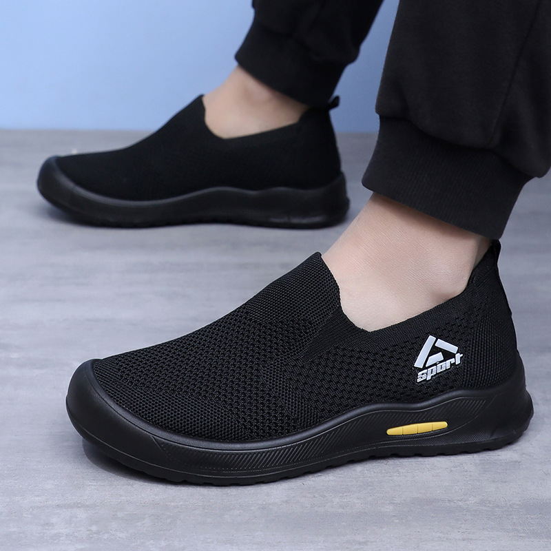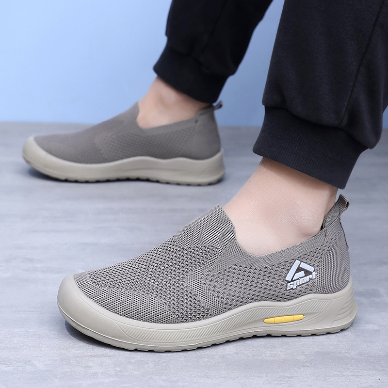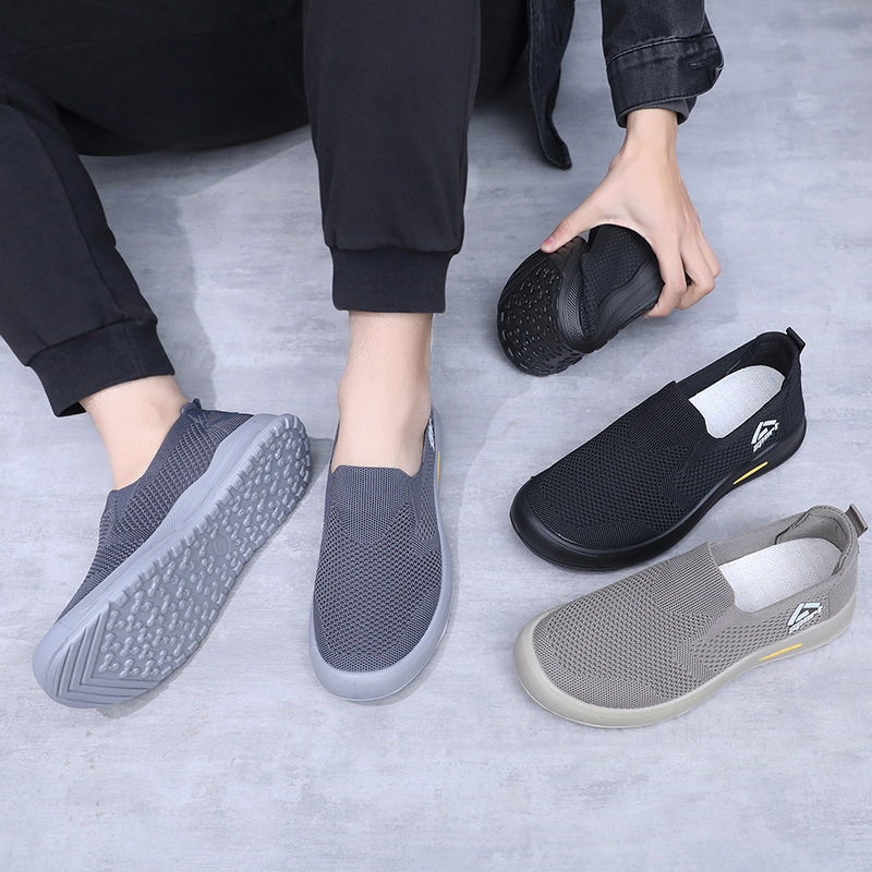 신발 남성 비행 직조 통기성 캐주얼 신발 소프트 단독 경량 슬립 온 아빠 신발 도매 간단한 올 매치 워킹 슈즈