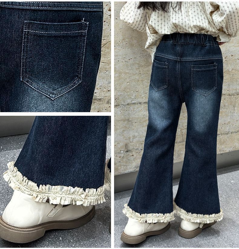 소녀 청바지 가을과 겨울 꽃 바지 세련된 세련된 스트레치 레이스 바지 기모 원피스 벨벳 패션 트렌디 바지스토어 가기