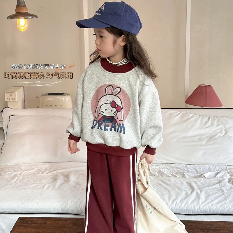 [4371 명 컬렉션] 어린이 벨벳 세트 가을 · 겨울 어린이 원피스 벨벳 스웨터 바지 한국식 여성