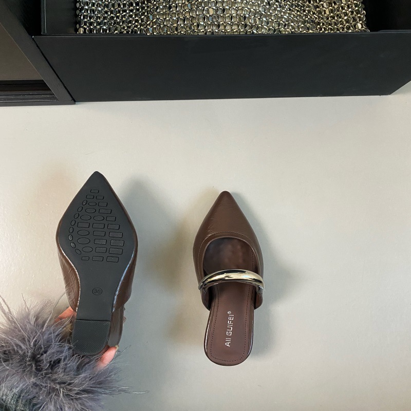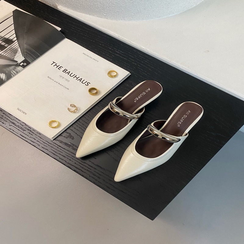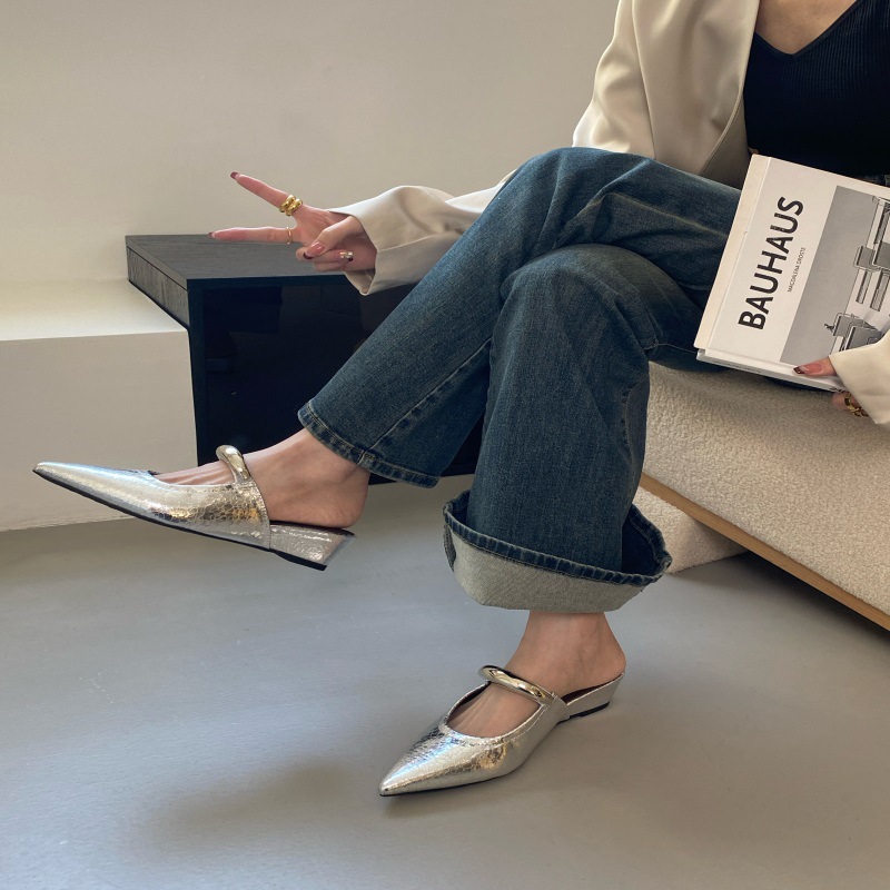 여성용 한국식 슬리퍼 외부 착용 봄 2025 새로운 뾰족한 슬립 온 얕은 입 샌들스토어 가기