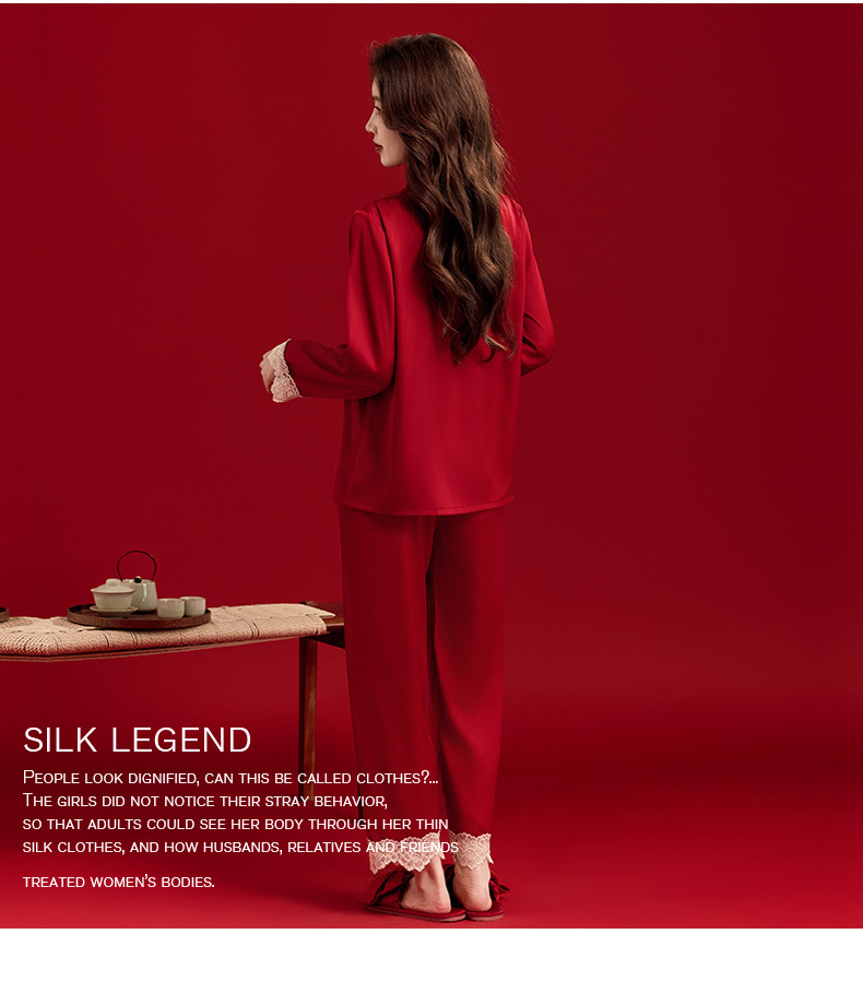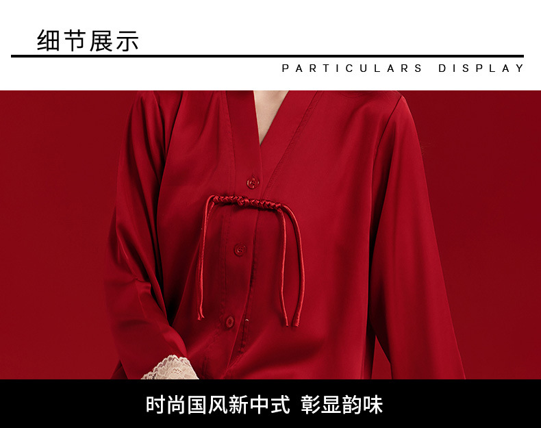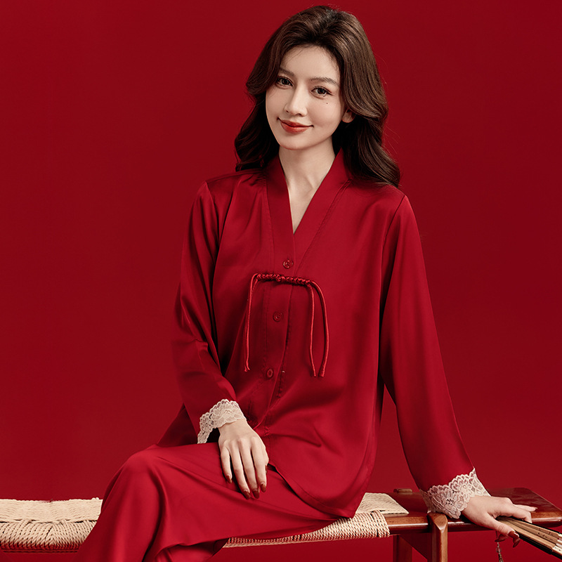 중국 스타일의 긴팔 홈웨어 남성 기념품 얼음 실크 커플 잠옷 가을 빨간색 웨딩 잠옷 도매스토어 가기