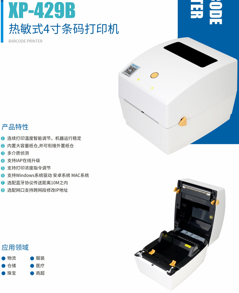 코어 예 XP-429B 전자 표면 단일 프린터 대형 종이 창고 익스프레스 단일 프린터 4 인치 블루투스 열 라벨 기계