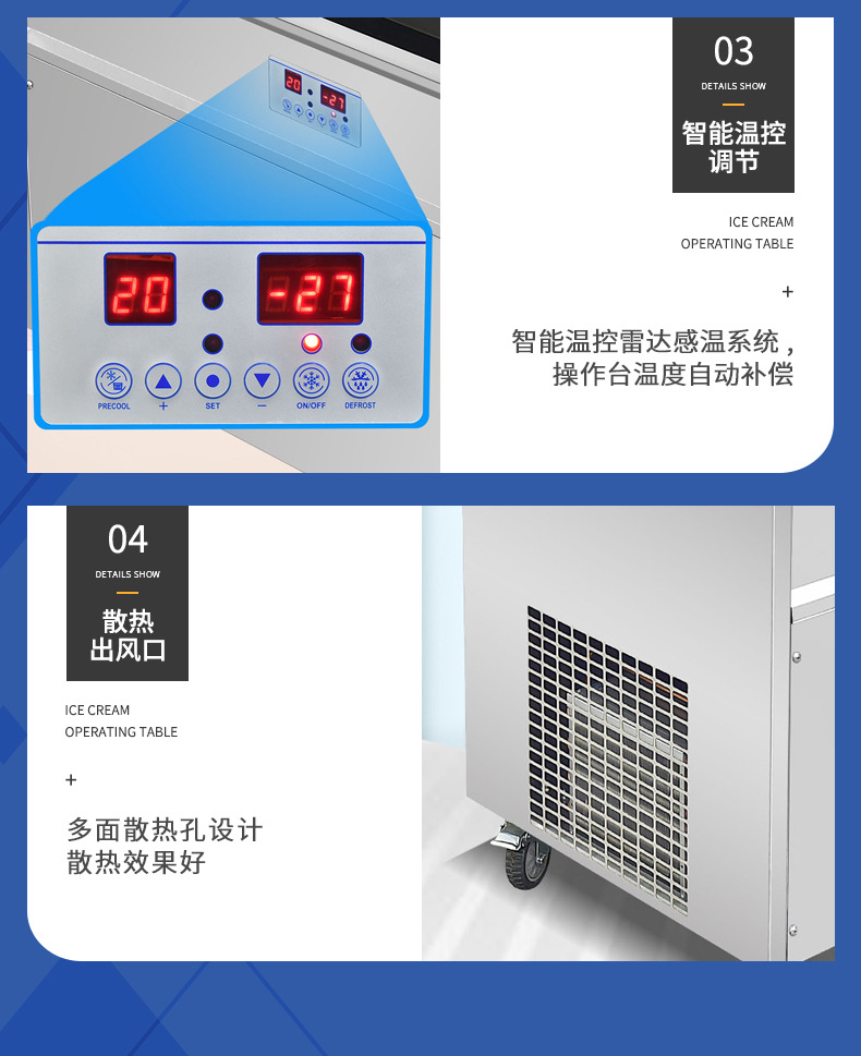 아이스크림 콘솔 스낵 바 우유 차 가게 스테인리스 멀티 맛 선택 아이스크림 냉장 보관 장비