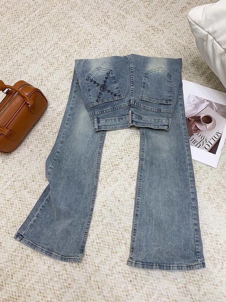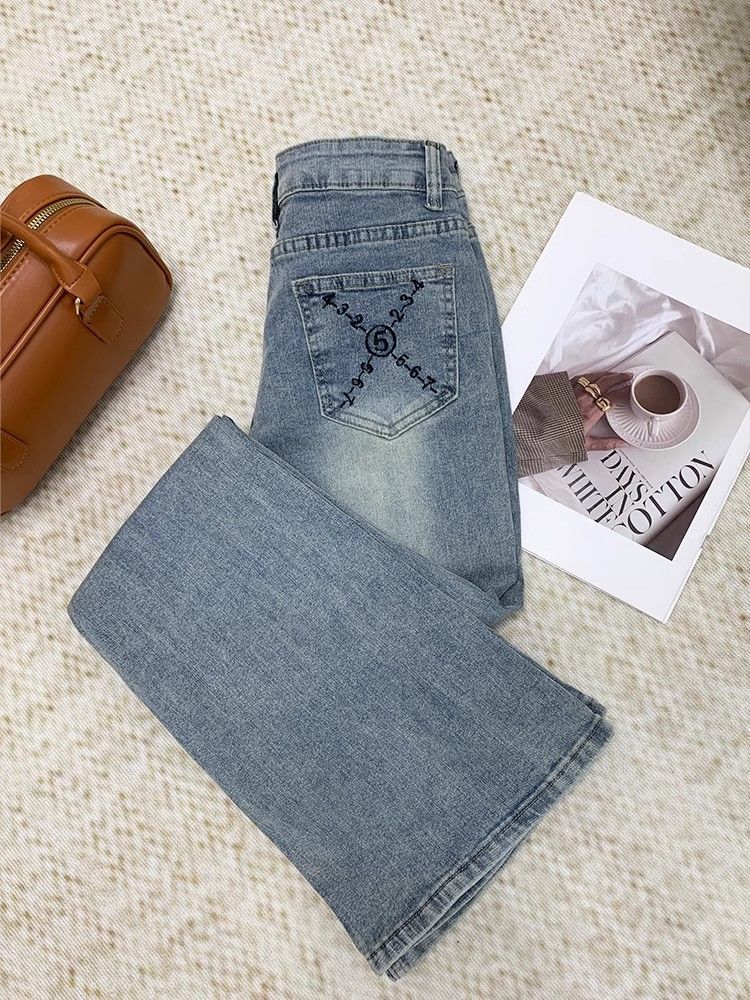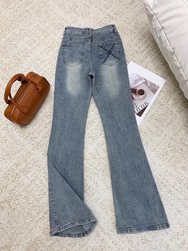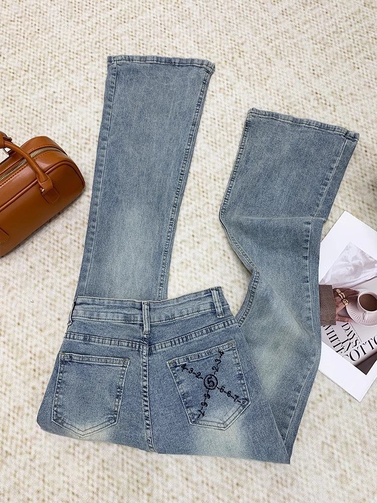 라이트 컬러 마이크로 플레어 청바지 여성의 2025 봄 새로운 스타일 작은 그림 슬림 올 매치 행잉 말굽 바지