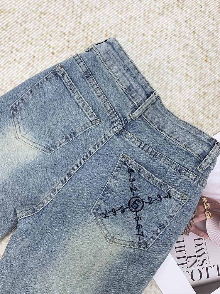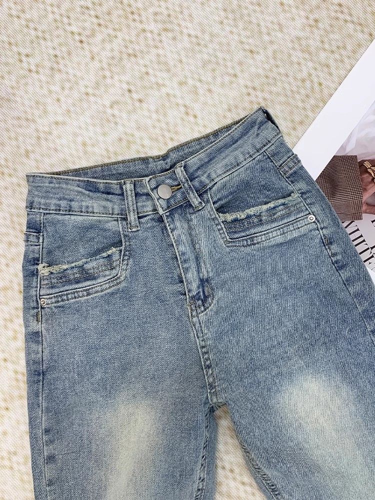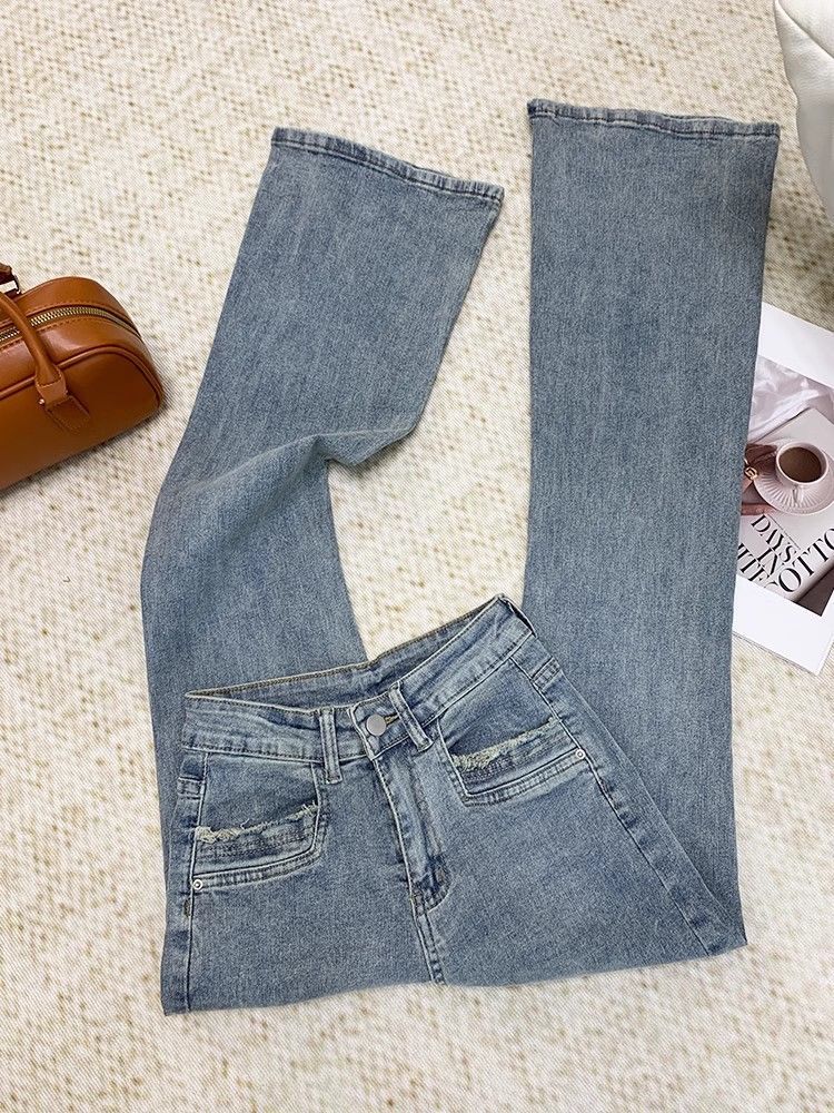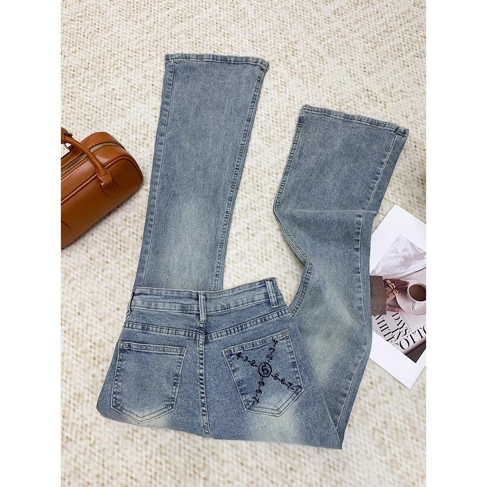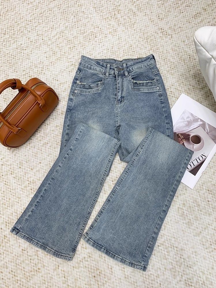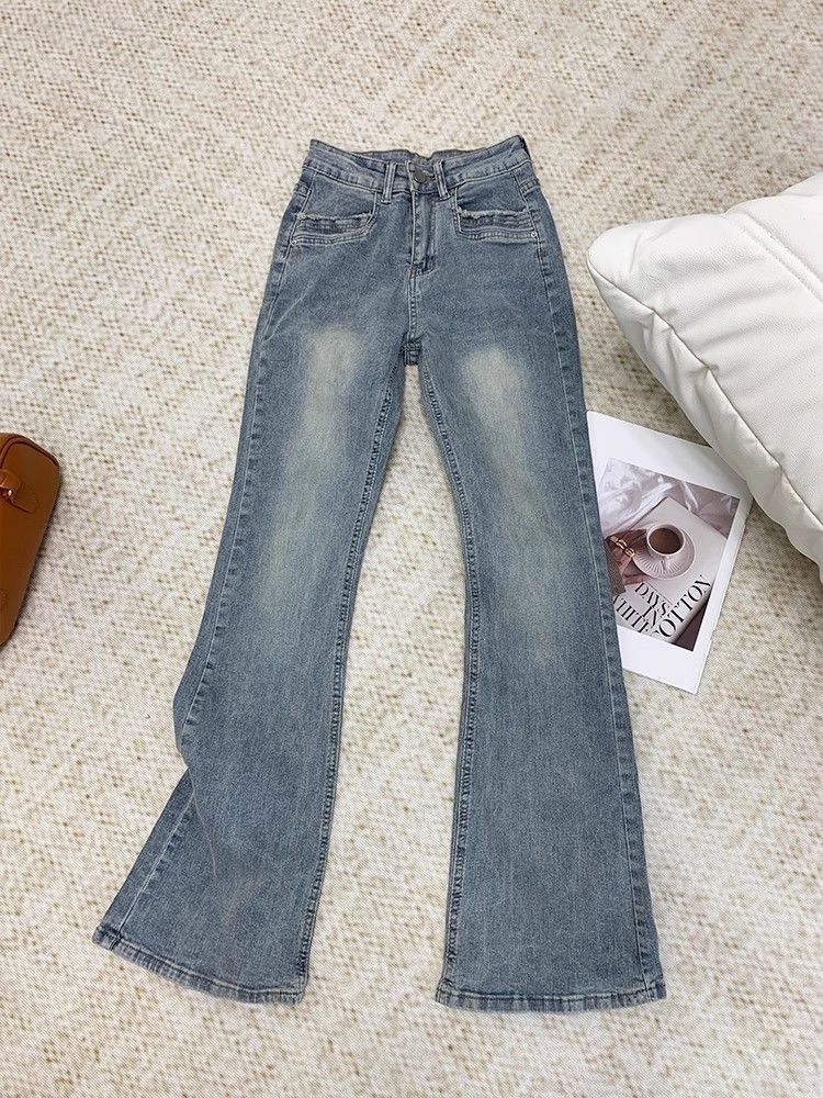 라이트 컬러 마이크로 플레어 청바지 여성의 2025 봄 새로운 스타일 작은 그림 슬림 올 매치 행잉 말굽 바지스토어 가기