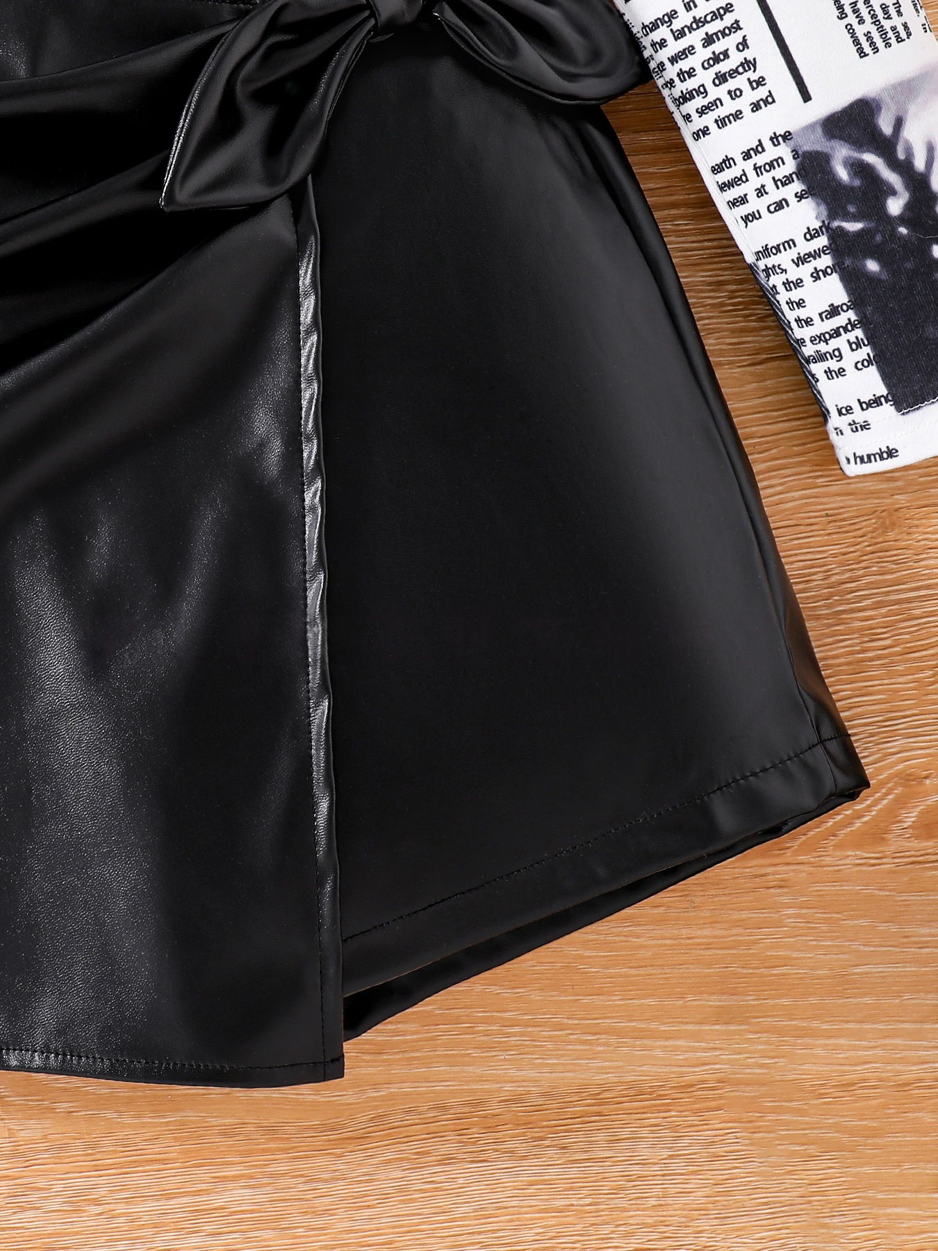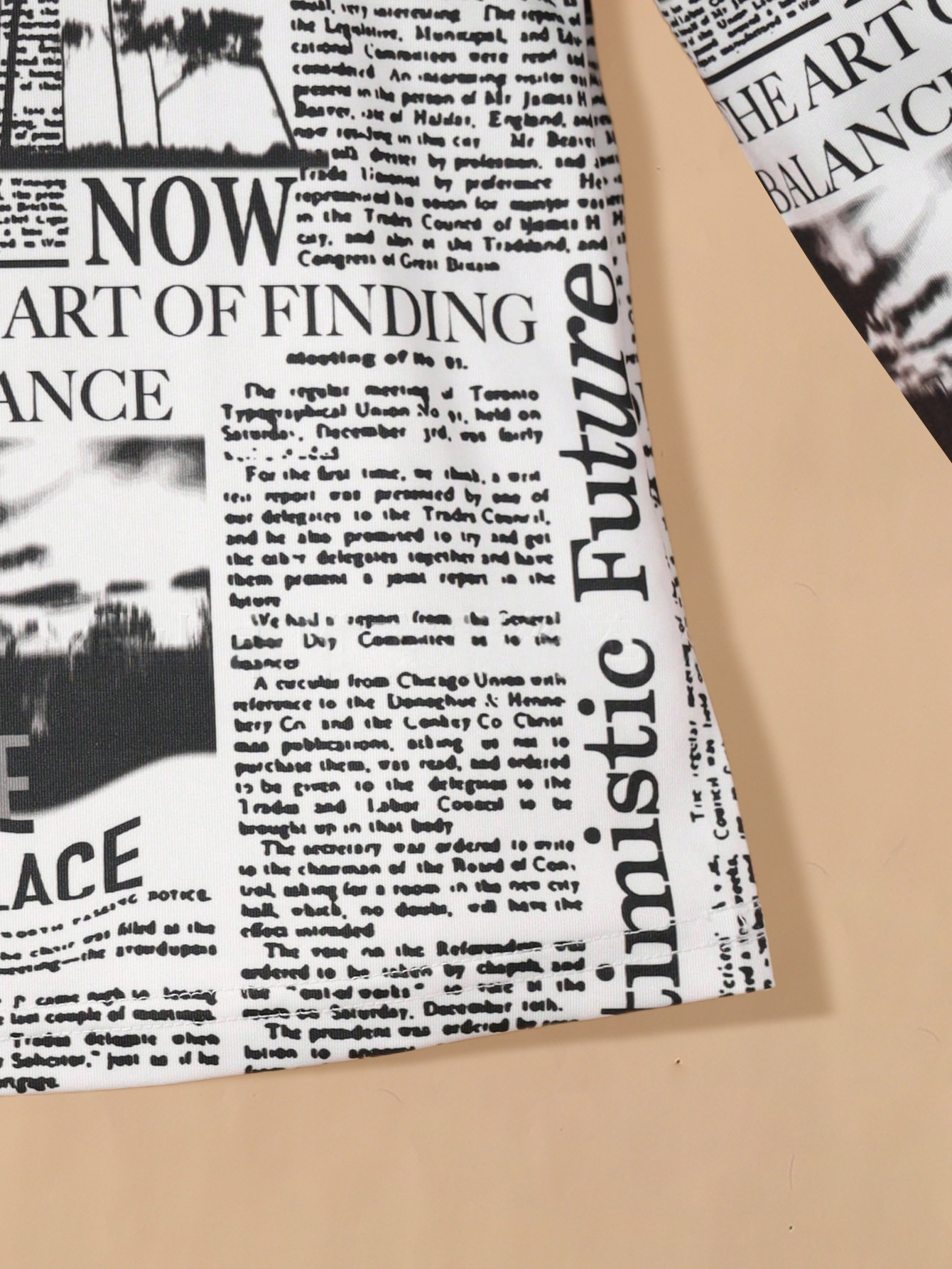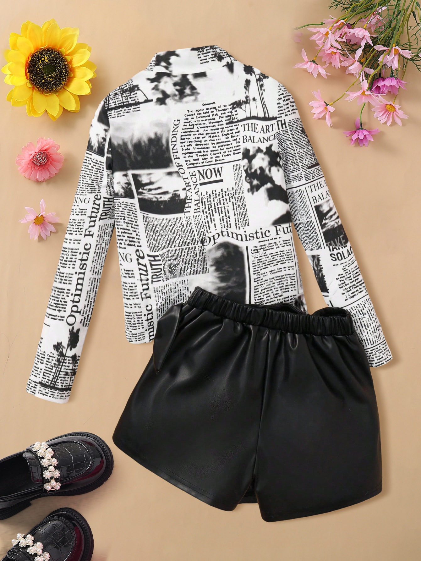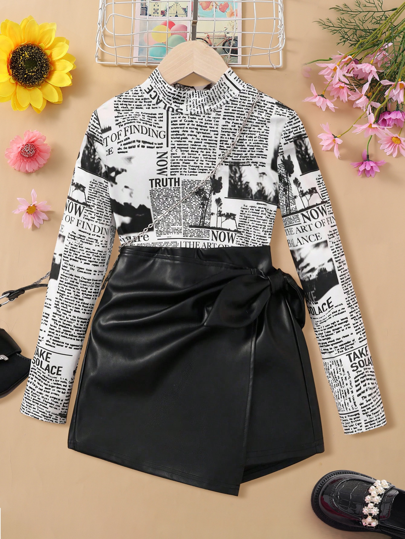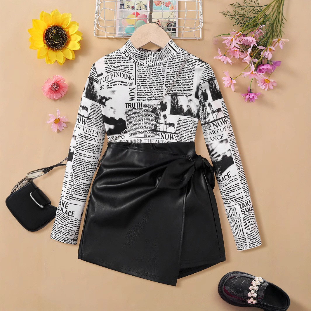 라자다 국경 뜨거운 판매 봄과 가을 소녀 슬리밍 신문 인쇄 긴 소매 기본 레이어 셔츠 톱 스커트 투피스 세트