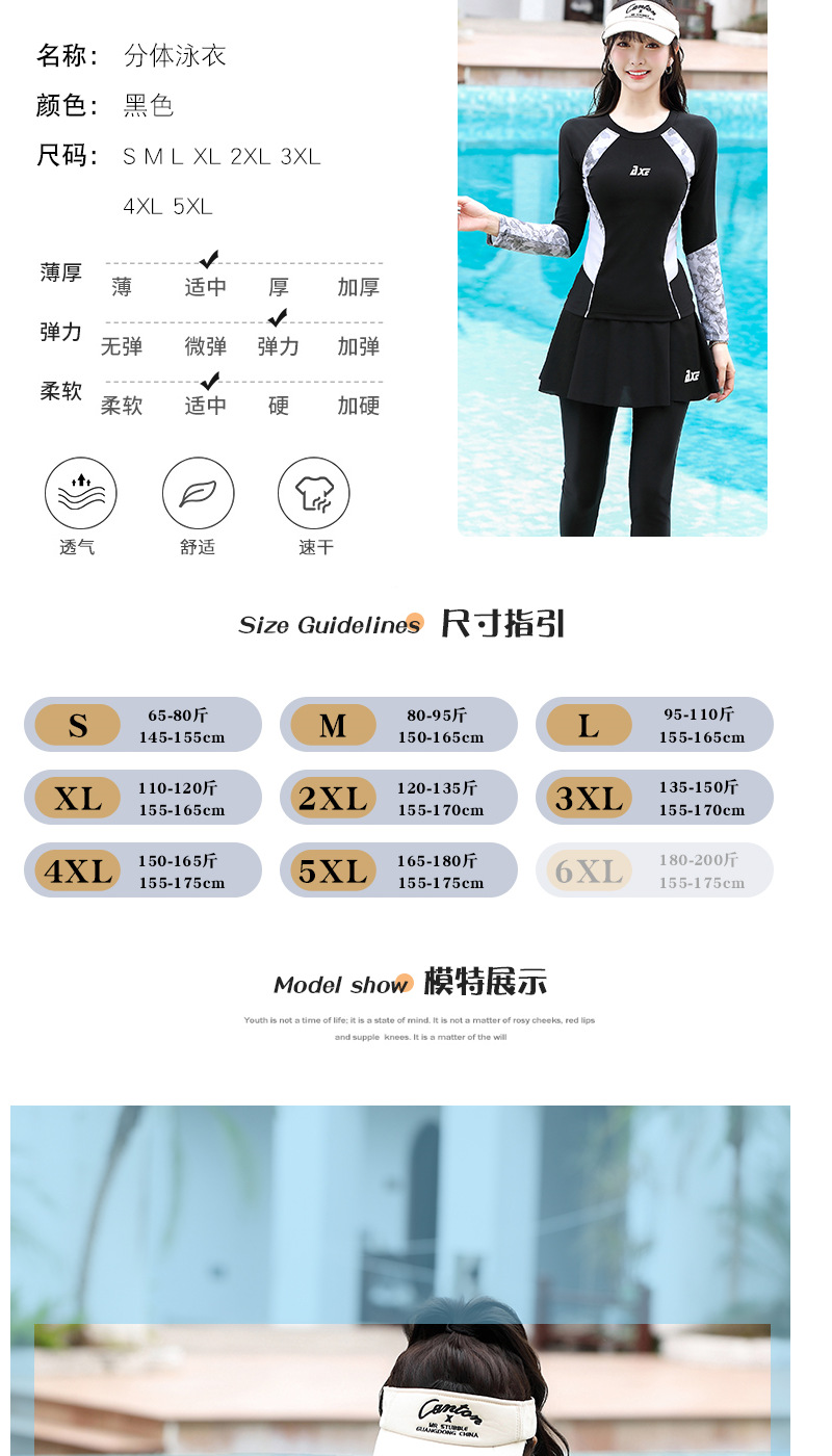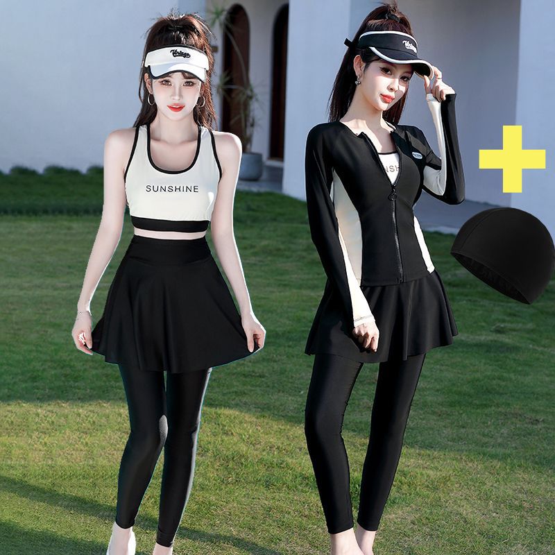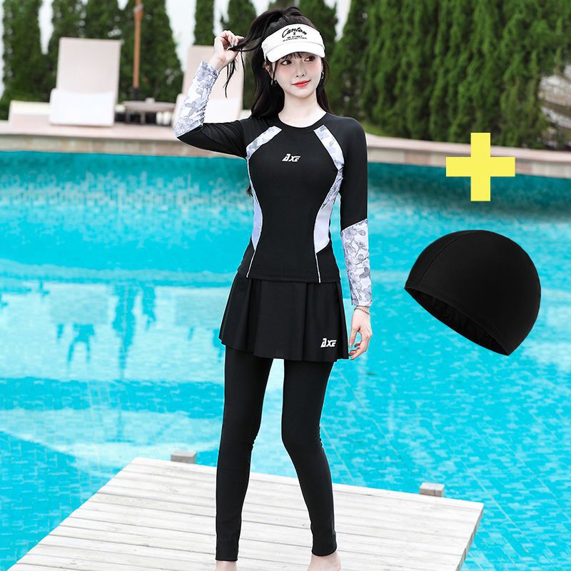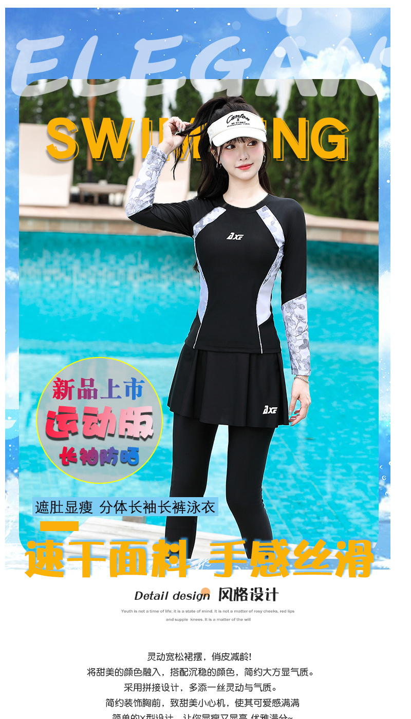 플러스 사이즈 보수적 인 수영복 여성의 2025 새로운 슬림 분할 다이빙 세트 배꼽 덮음 긴 소매 바지 투피스 수영복스토어 가기