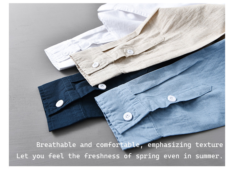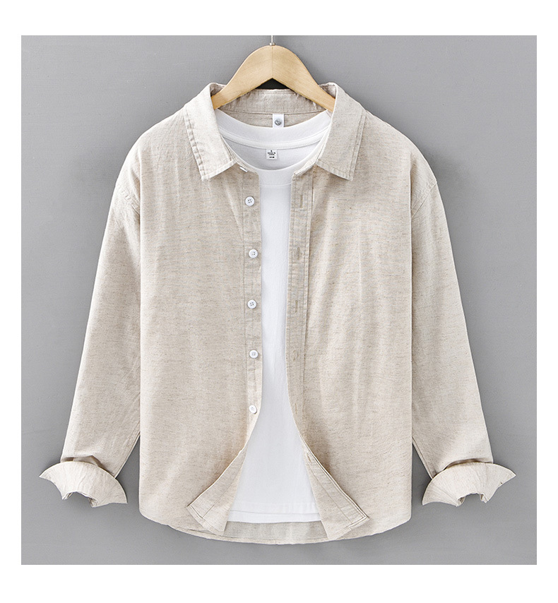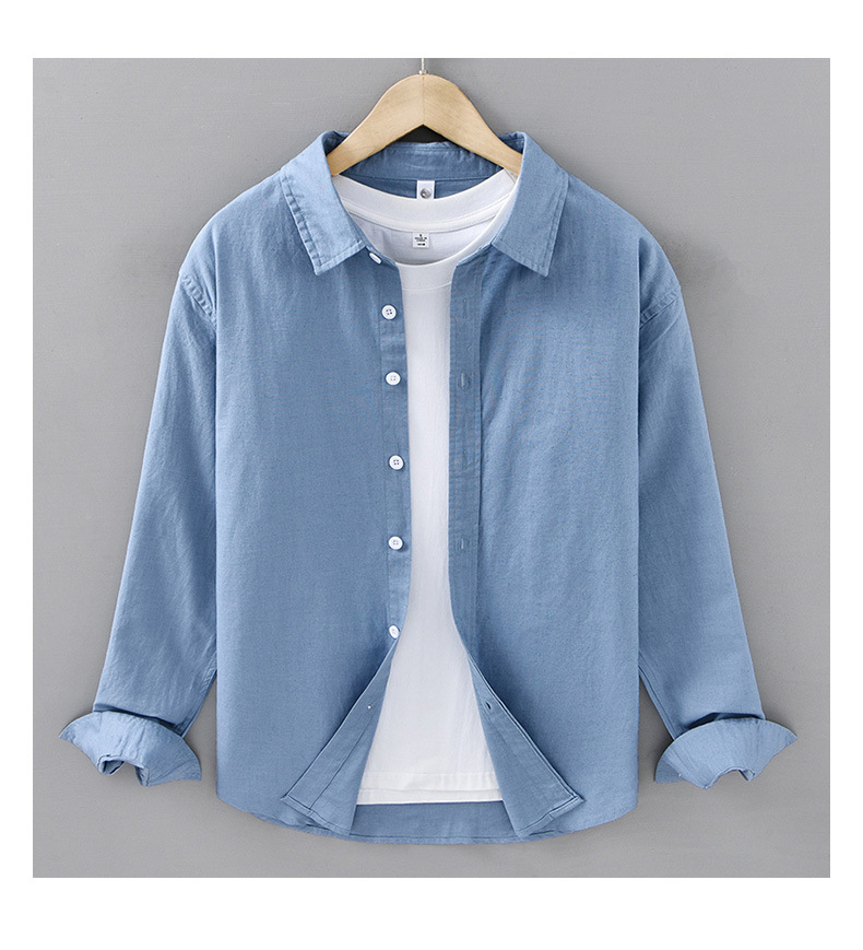 봄 여름 신작 면 린넨 긴팔 셔츠 남성 솔리드 컬러 심플 루즈 다용도 캐주얼 셔츠 린넨 남성복 212