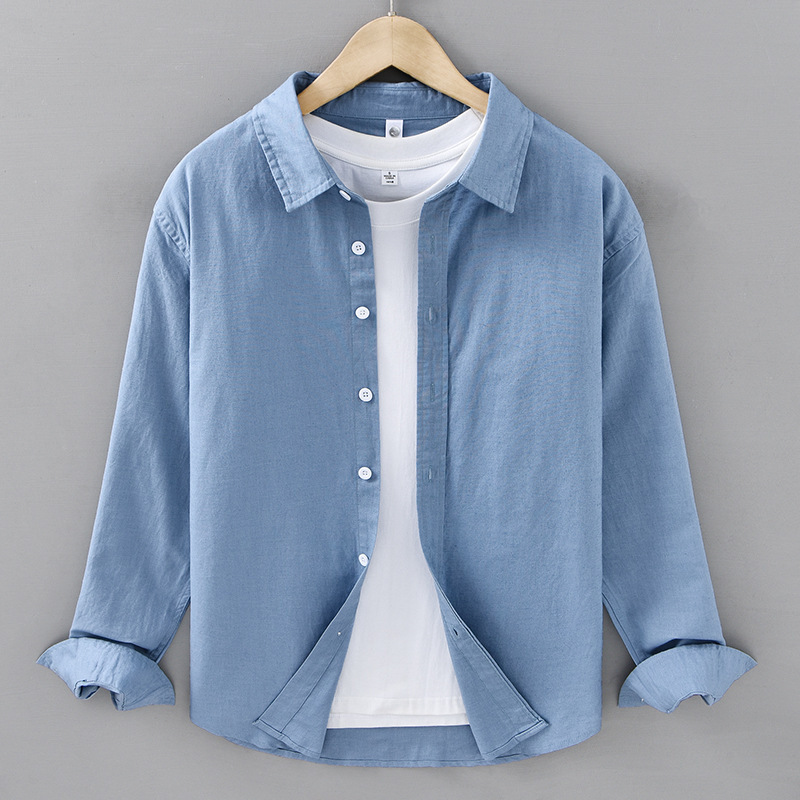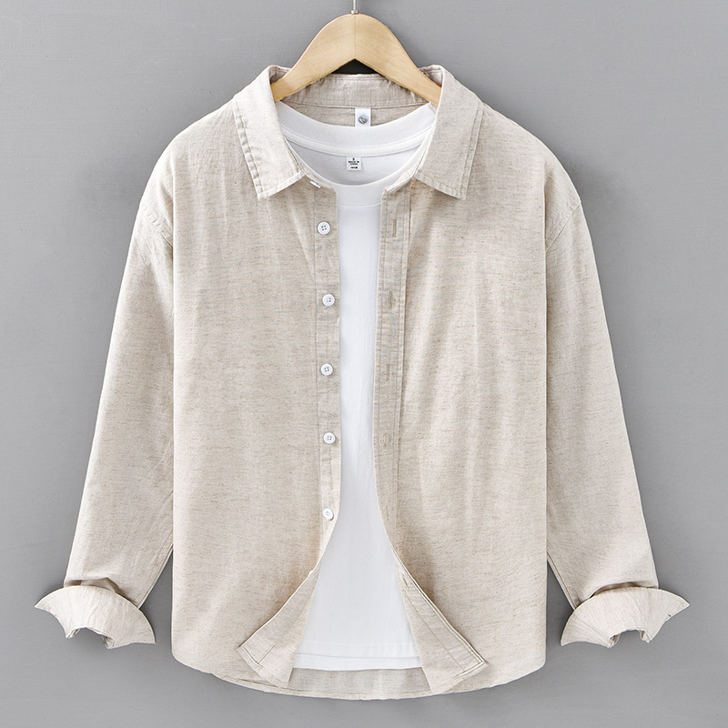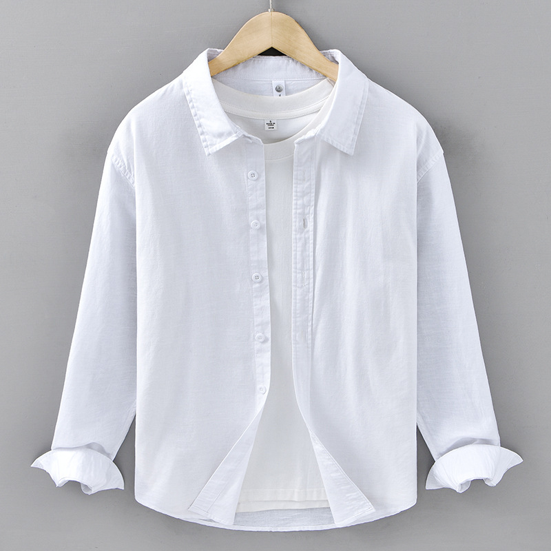 봄 여름 신작 면 린넨 긴팔 셔츠 남성 솔리드 컬러 심플 루즈 다용도 캐주얼 셔츠 린넨 남성복 212스토어 가기