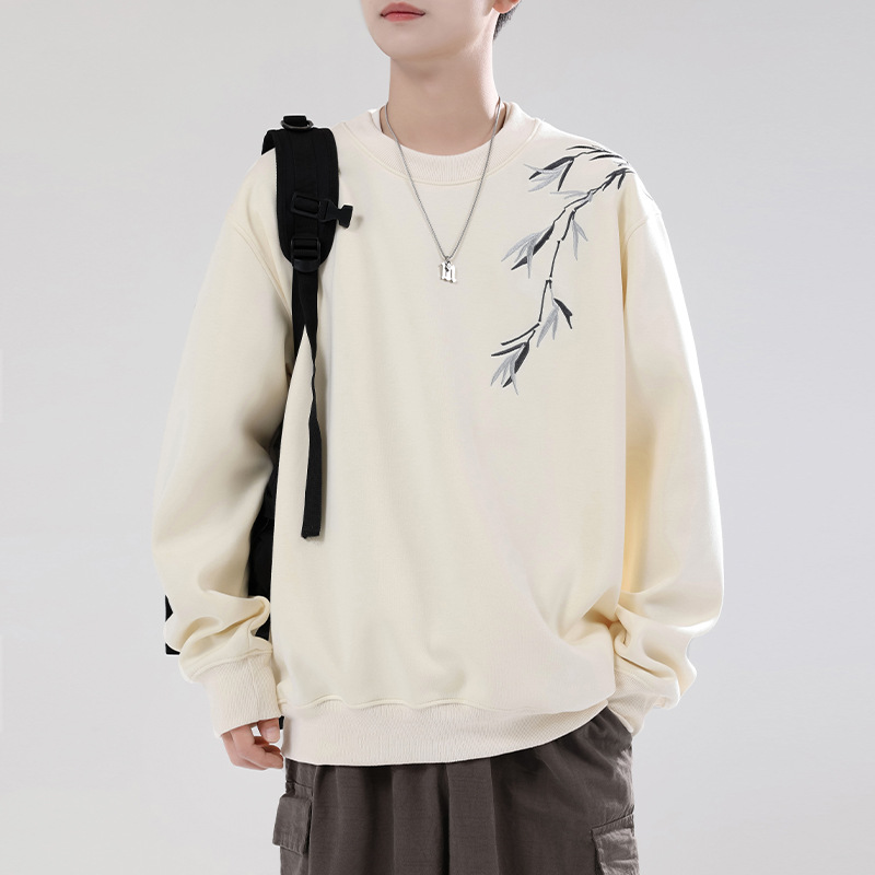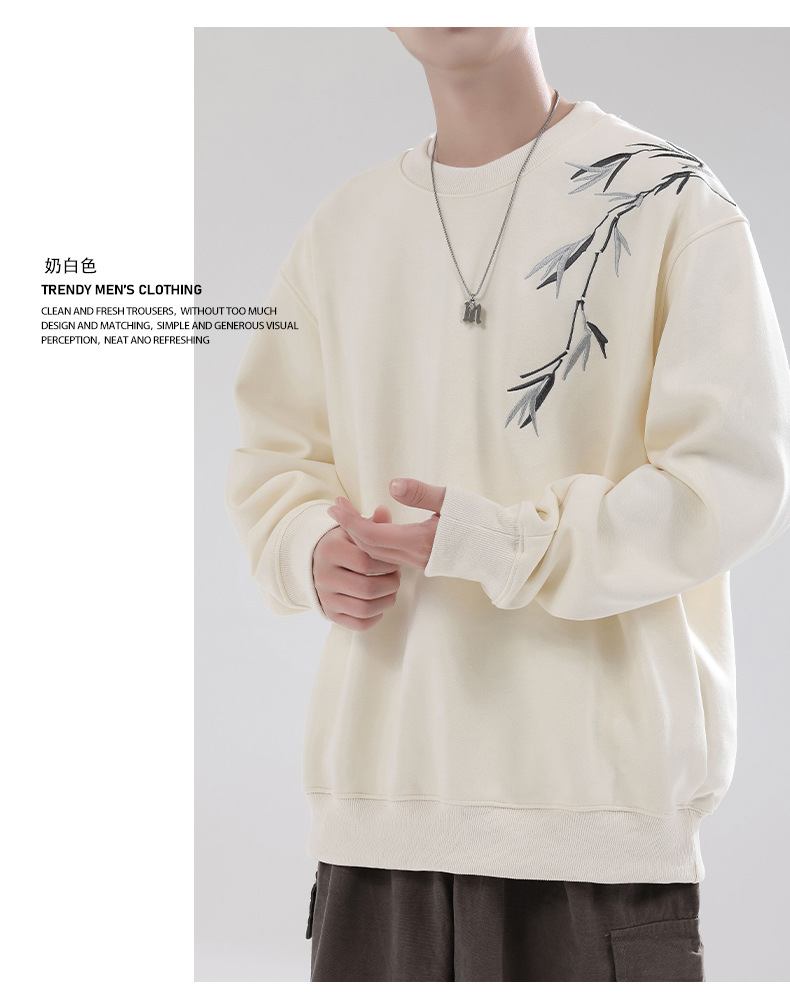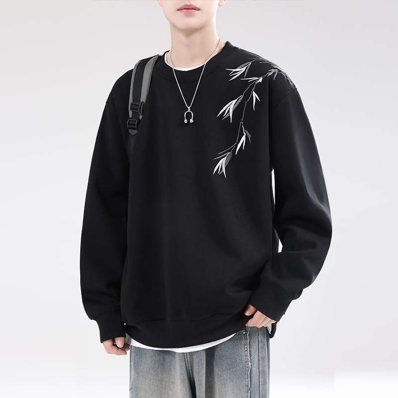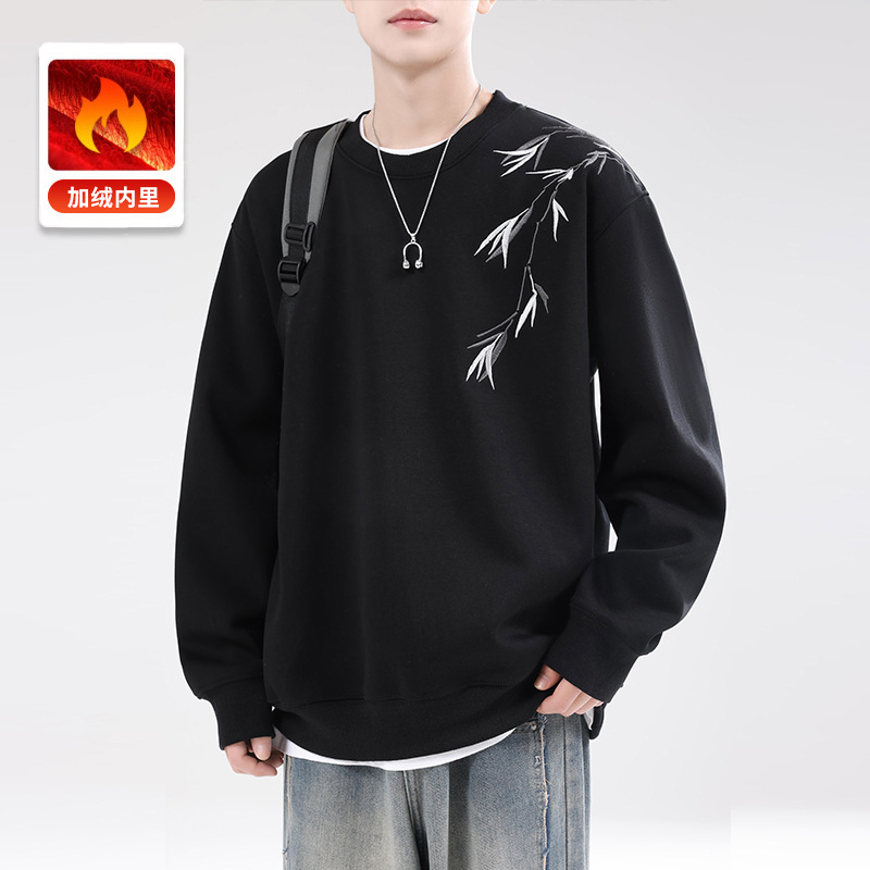 남성용 기모 스웨트셔츠, 가을 겨울 신상 중국풍 자수 라운드넥 남성 의류, 이너웨어, 겨울 남성 상의스토어 가기