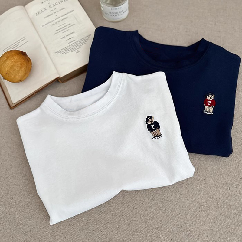 순수 코튼 아동 티셔츠 긴 소매 2025 새로운 만화 자수 다목적 중소형 아동 의류 바닥 셔츠 봄, 가을