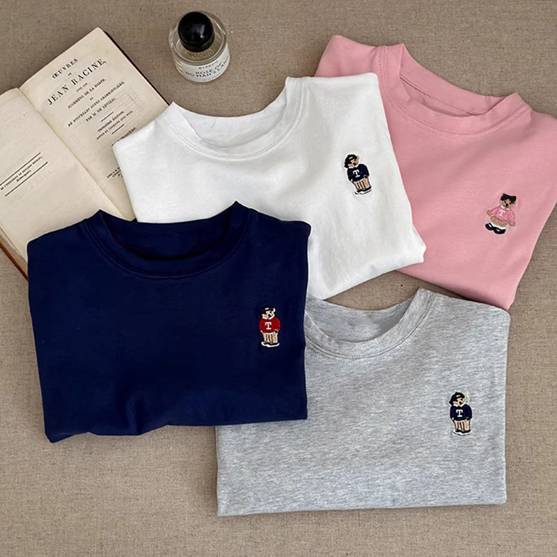 순수 코튼 아동 티셔츠 긴 소매 2025 새로운 만화 자수 다목적 중소형 아동 의류 바닥 셔츠 봄, 가을스토어 가기