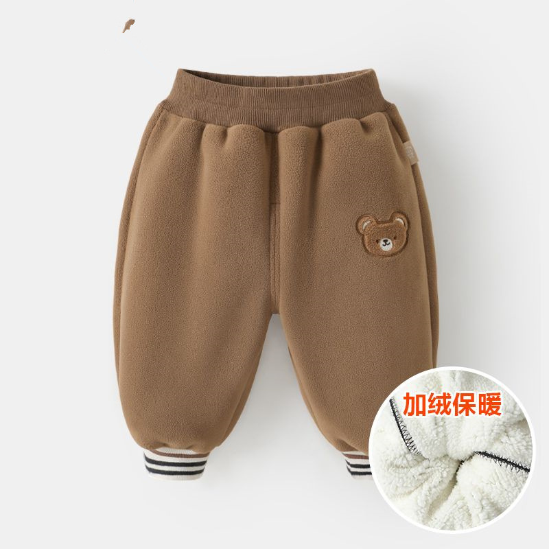 아기의 올림픽 벨벳 스포츠 긴 바지 어린이 가을과 겨울 착용 두꺼운 소년 소녀 아기의 기모 캐주얼 바지 서양식스토어 가기