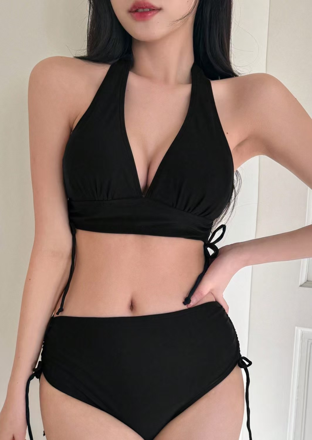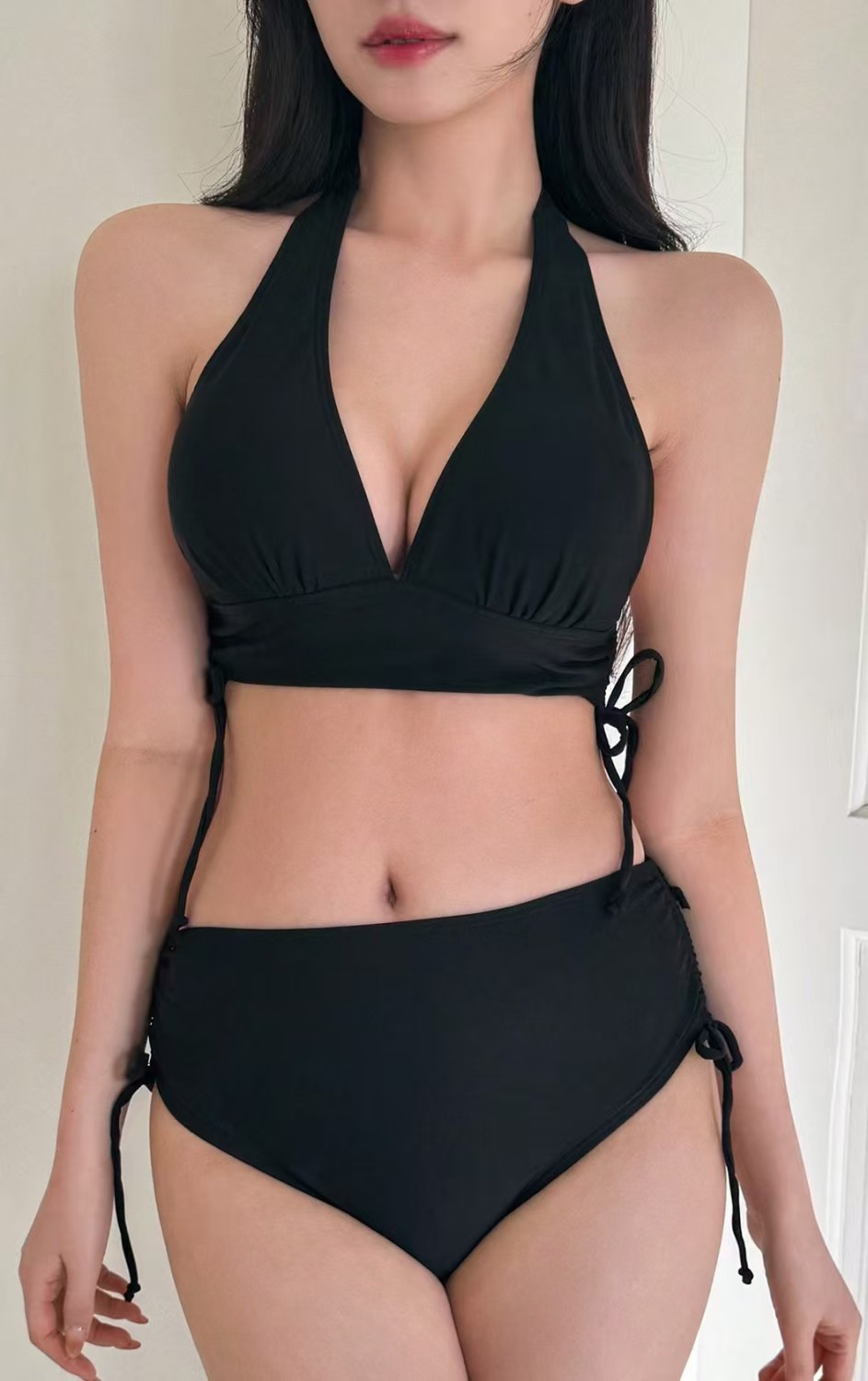 유럽과 미국의 섹시 비치 홀리데이 비키니 투피스 수영복 블랙 하이 허리 레이스 업 해변 수영복 캐주얼 수영복스토어 가기