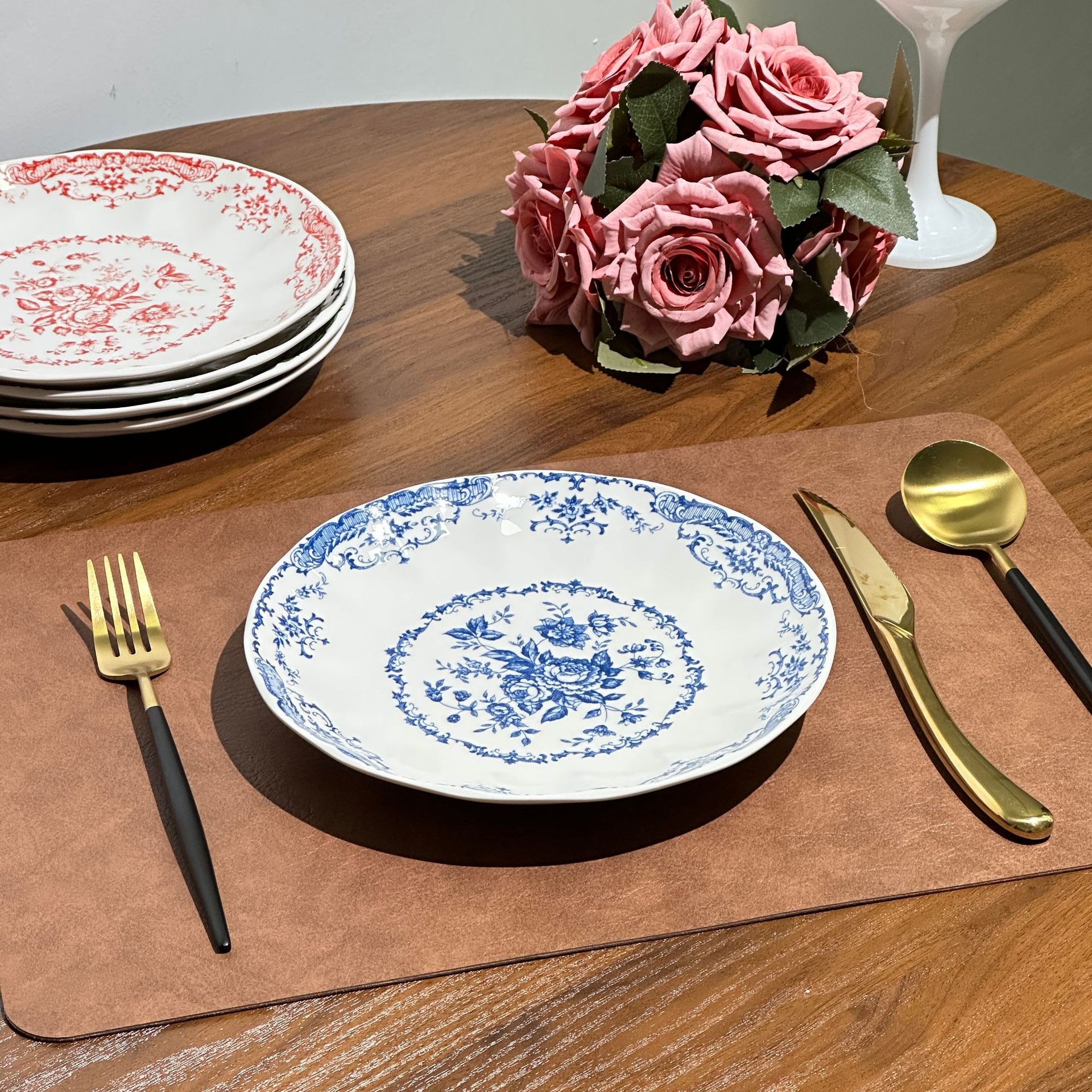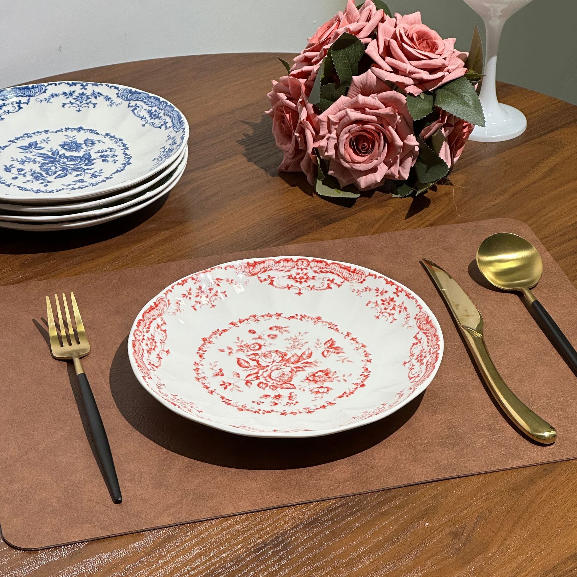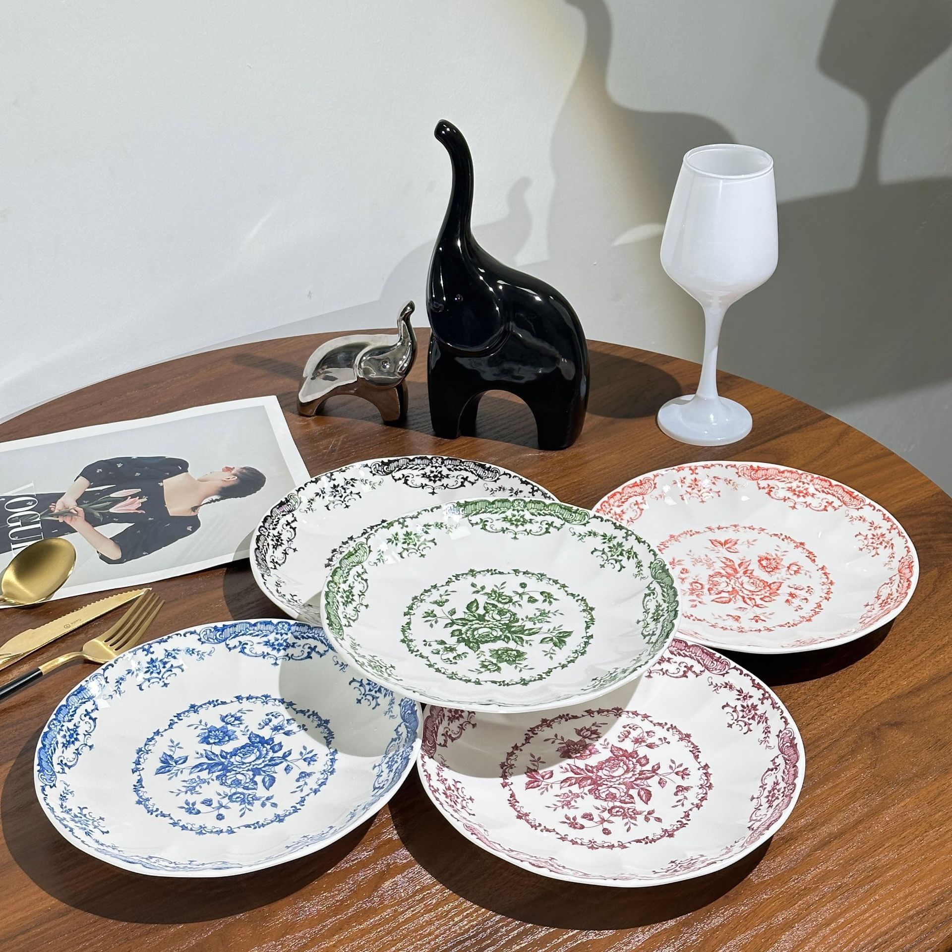 프랑스 서양식 레트로 세라믹 플레이트 로즈 플라워 인 스타일 디너 플레이트 하이 뷰티 가치 아침 식사 디저트 꽃잎 플레이트