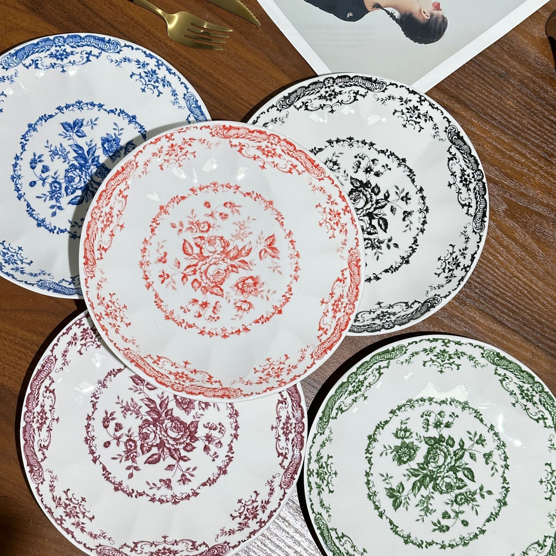 프랑스 서양식 레트로 세라믹 플레이트 로즈 플라워 인 스타일 디너 플레이트 하이 뷰티 가치 아침 식사 디저트 꽃잎 플레이트스토어 가기