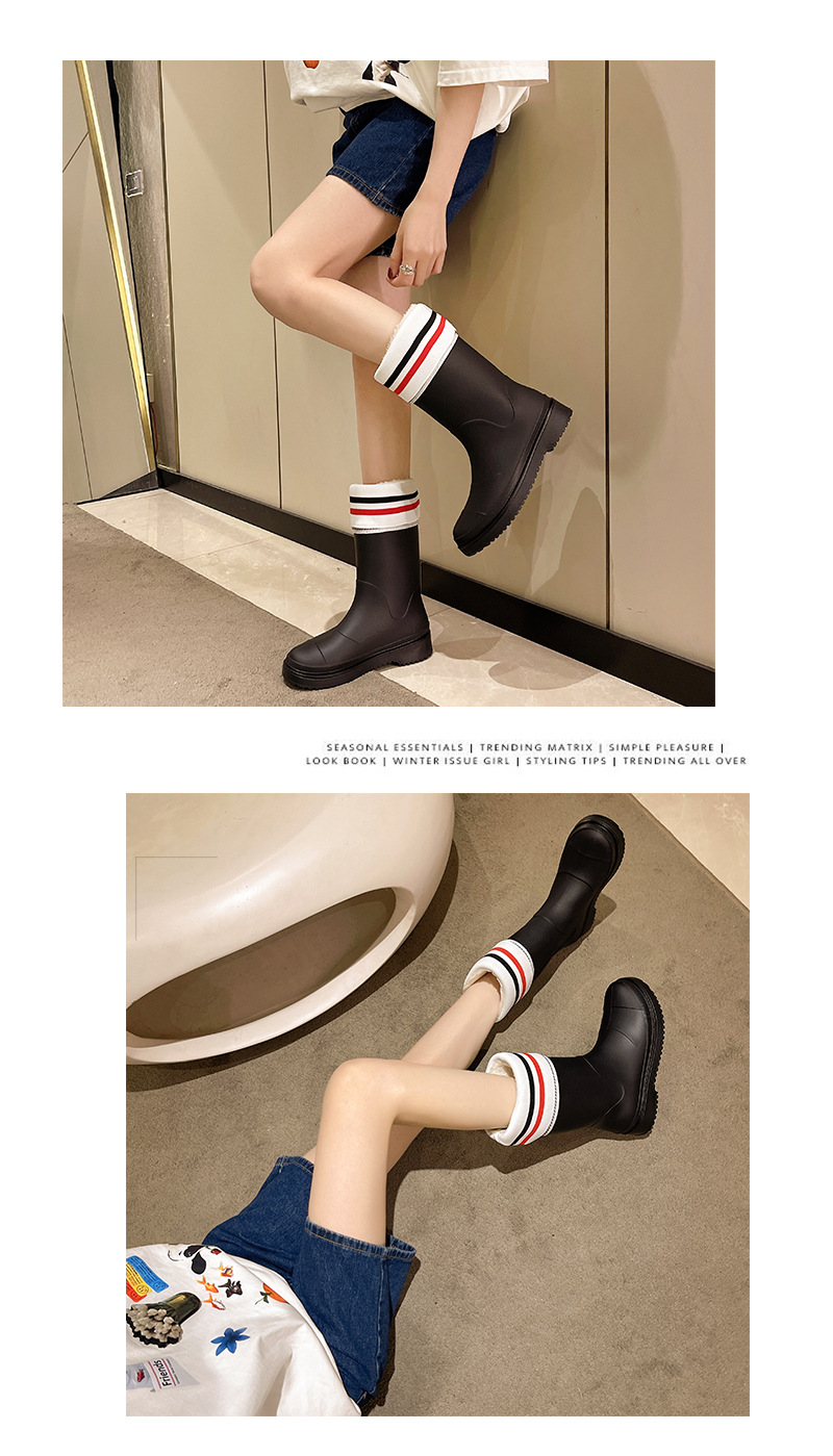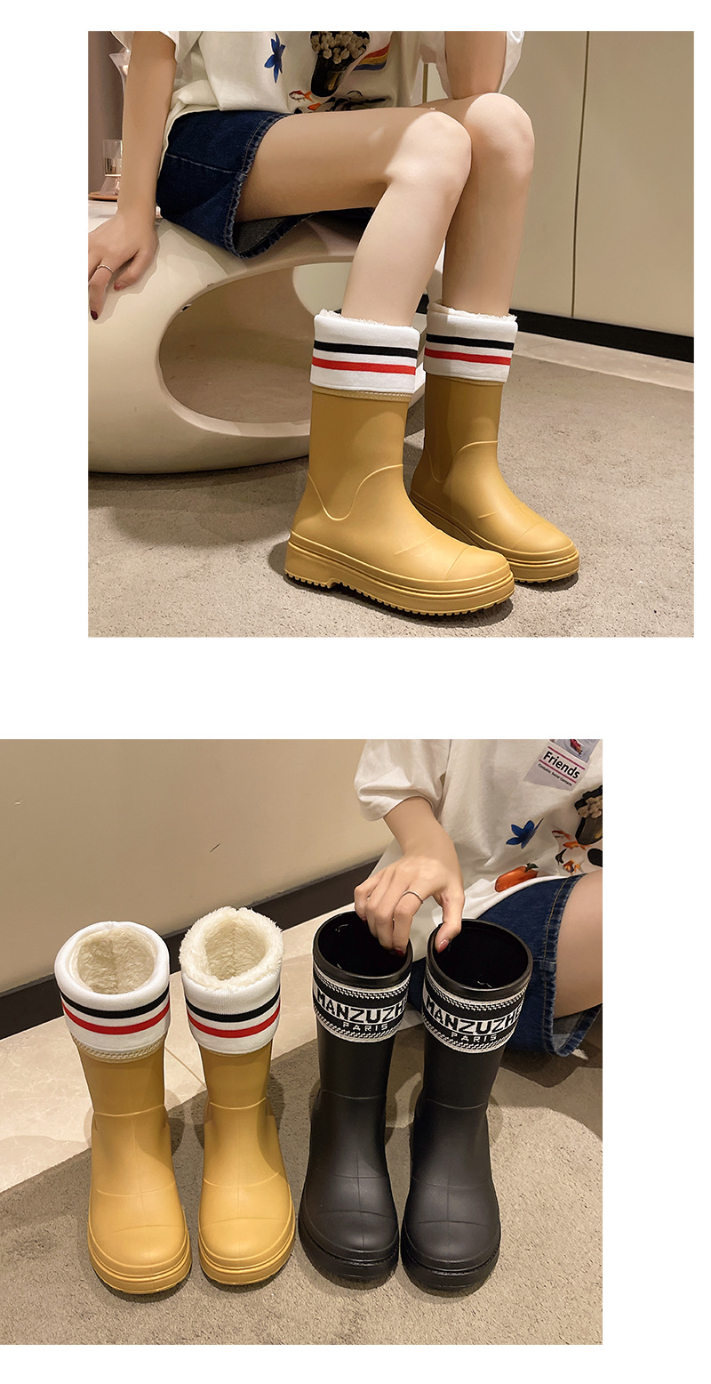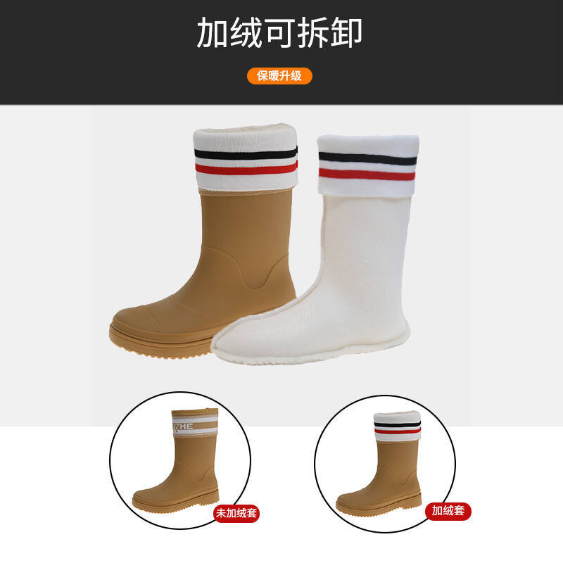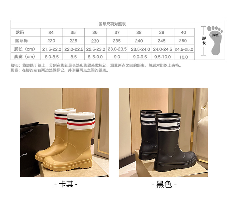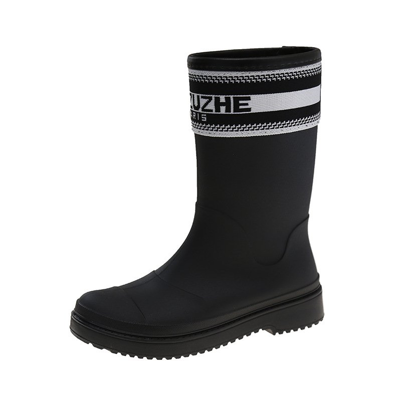 Xiaoxiang 스타일 중간 고대 장우 부츠 여성의 유행 외부 착용 중간 배럴 편지 장화 비 슬립 방수 신발 오버 슈즈 캠핑 워딩 슈즈스토어 가기