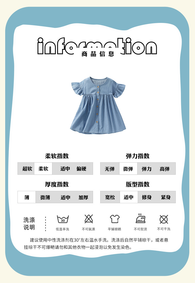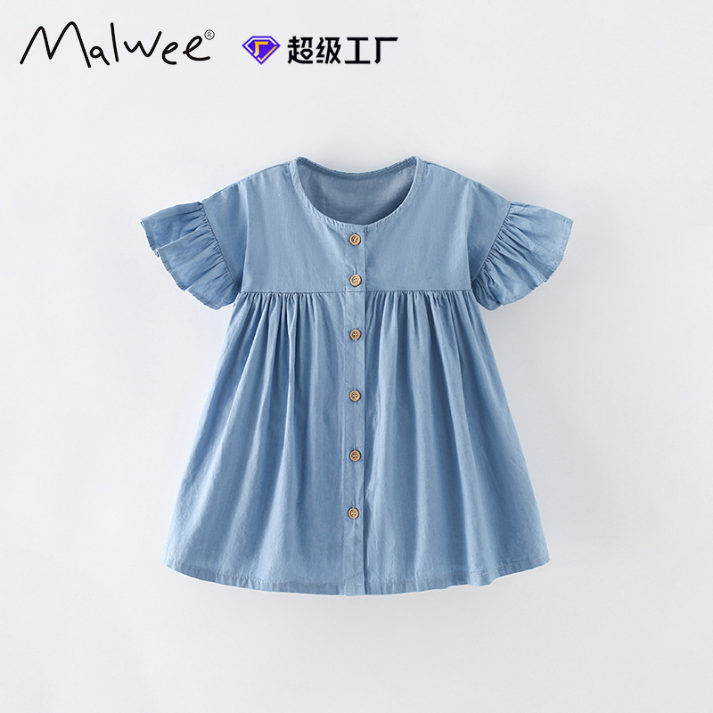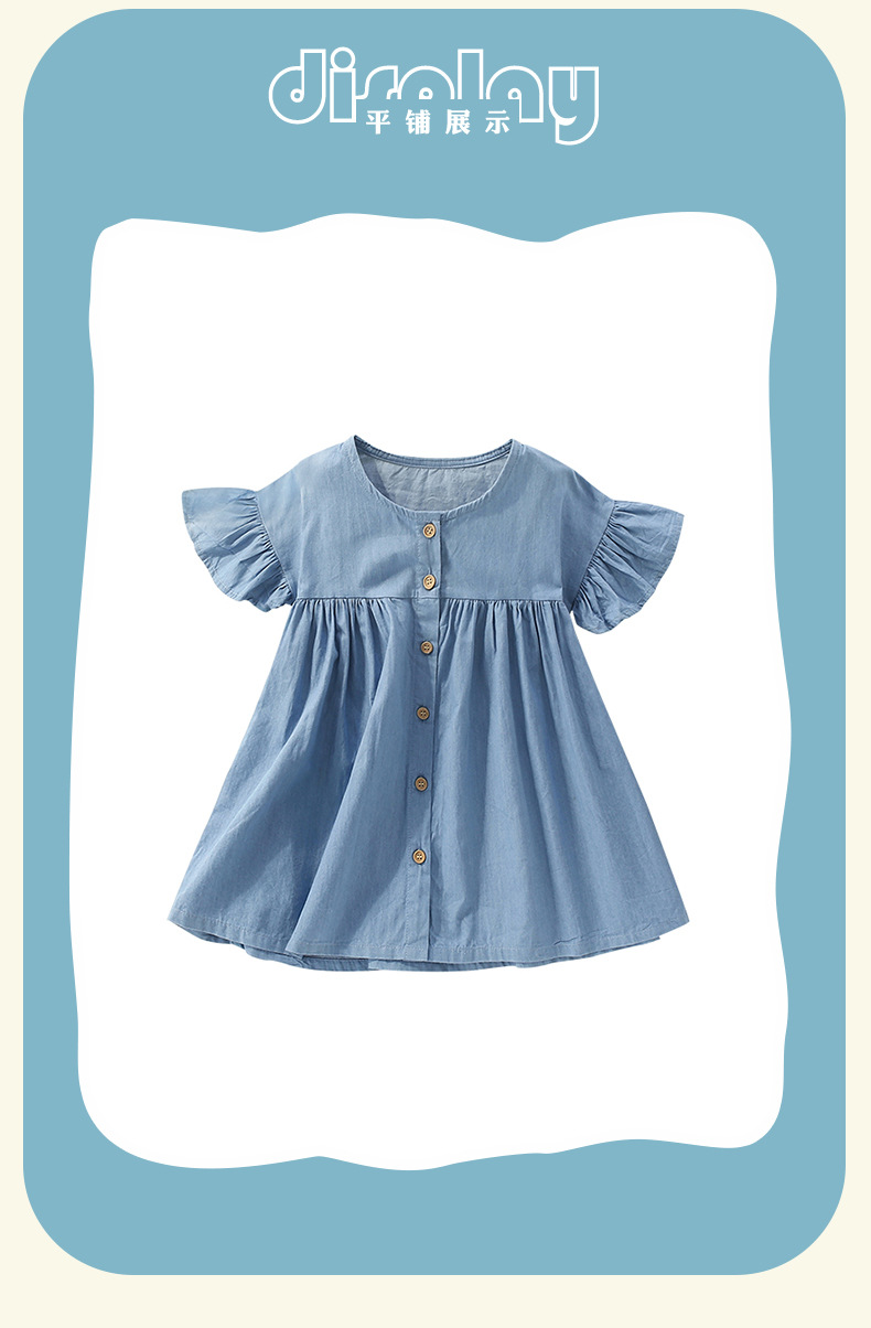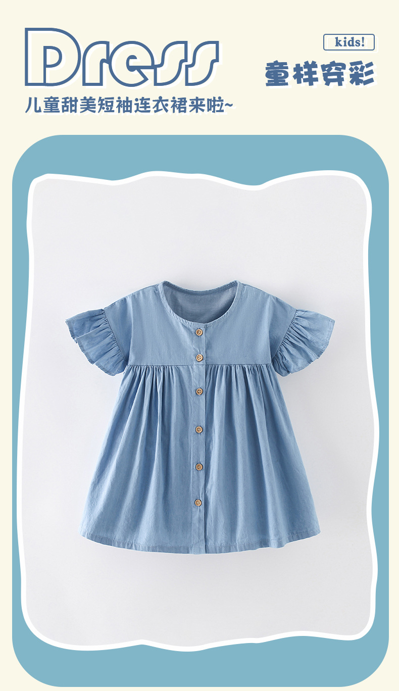 국경 간 몰위 소녀 데님 스커트 여름 새로운 유럽과 미국 어린이 둥근 목 반팔 어린 소녀 원피스스토어 가기