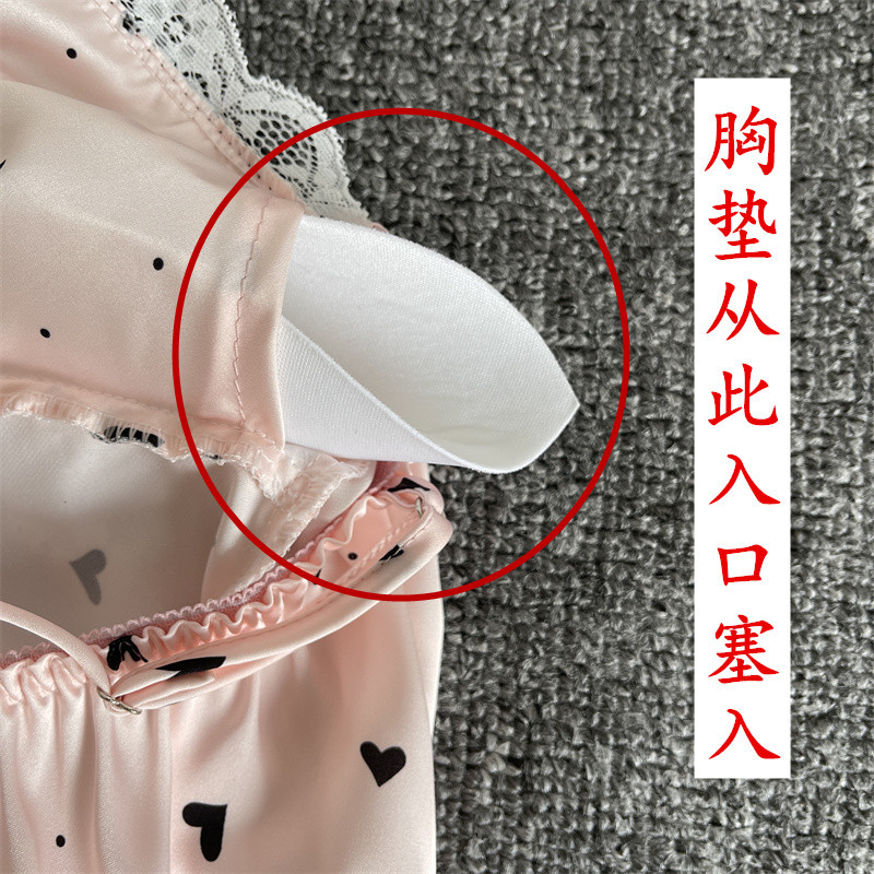 순수한 욕망 파자마 여성의 여름 아이스 실크 섹시한 달콤한 홈 옷 레이스 슬링 반바지 세트 봄과 가을스토어 가기