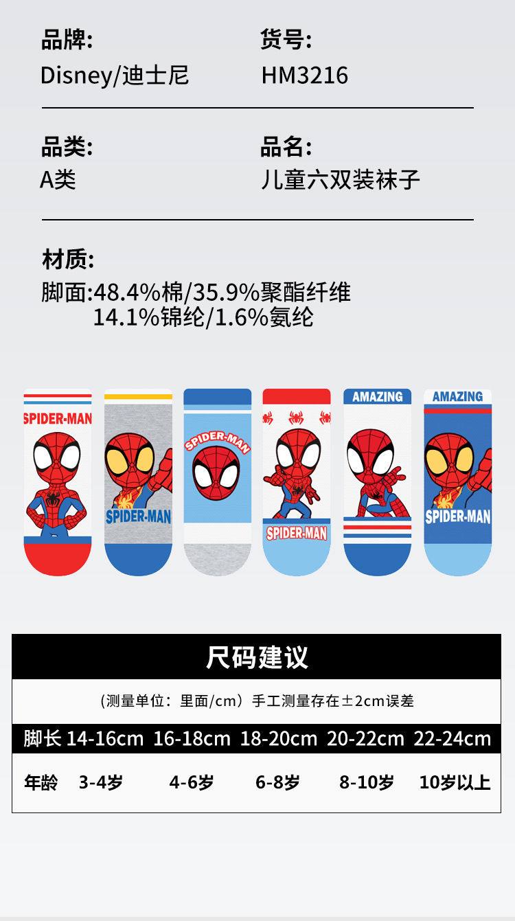 디즈니 보이즈 양말 봄과 가을 코튼 양말 스파이더 맨 소년 어린이 빨간 양말 아기 중간 튜브 양말 얇은스토어 가기