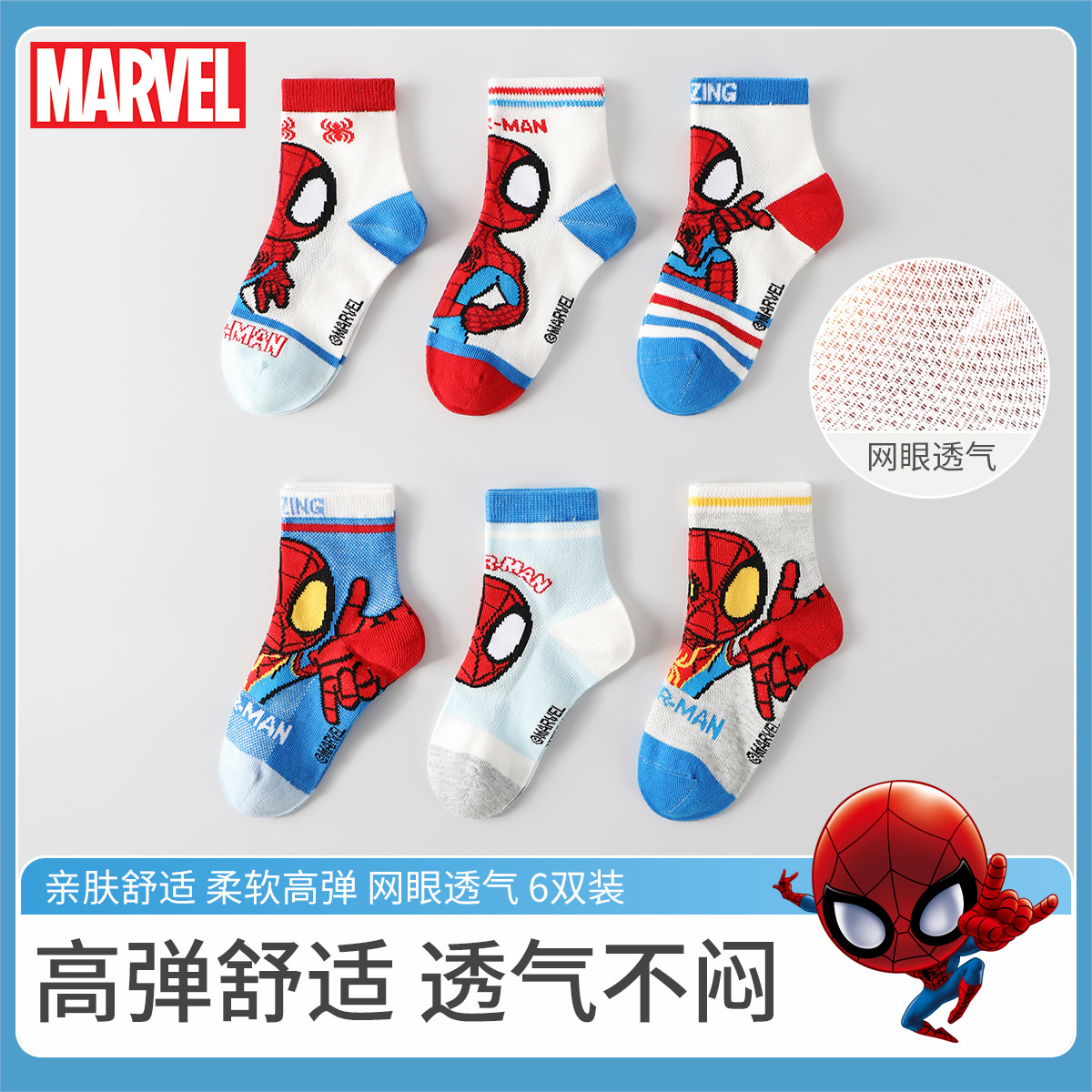 디즈니 보이즈 양말 봄과 가을 코튼 양말 스파이더 맨 소년 어린이 빨간 양말 아기 중간 튜브 양말 얇은