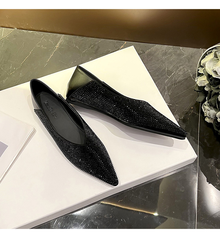 2025 새로운 풀 다이아몬드 패션 지적 내부 높이 올매치 얕은 입 편안한 스테핑 여성용 싱글 슈즈 플러스 사이즈 여성 신발스토어 가기
