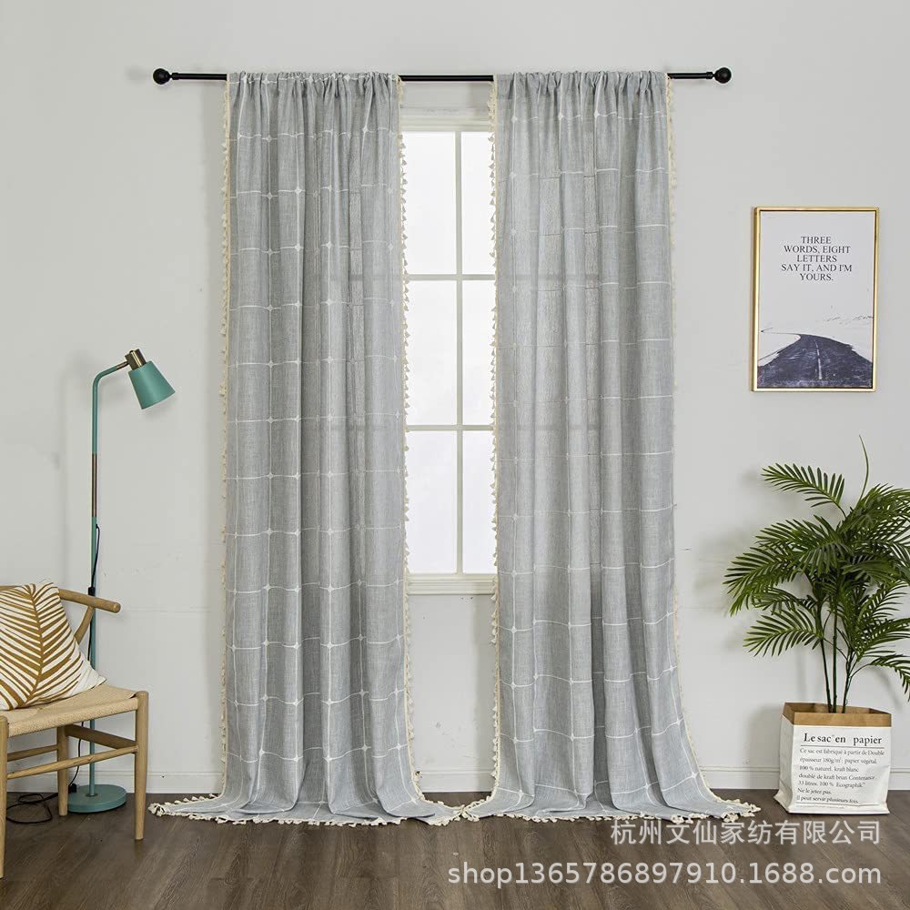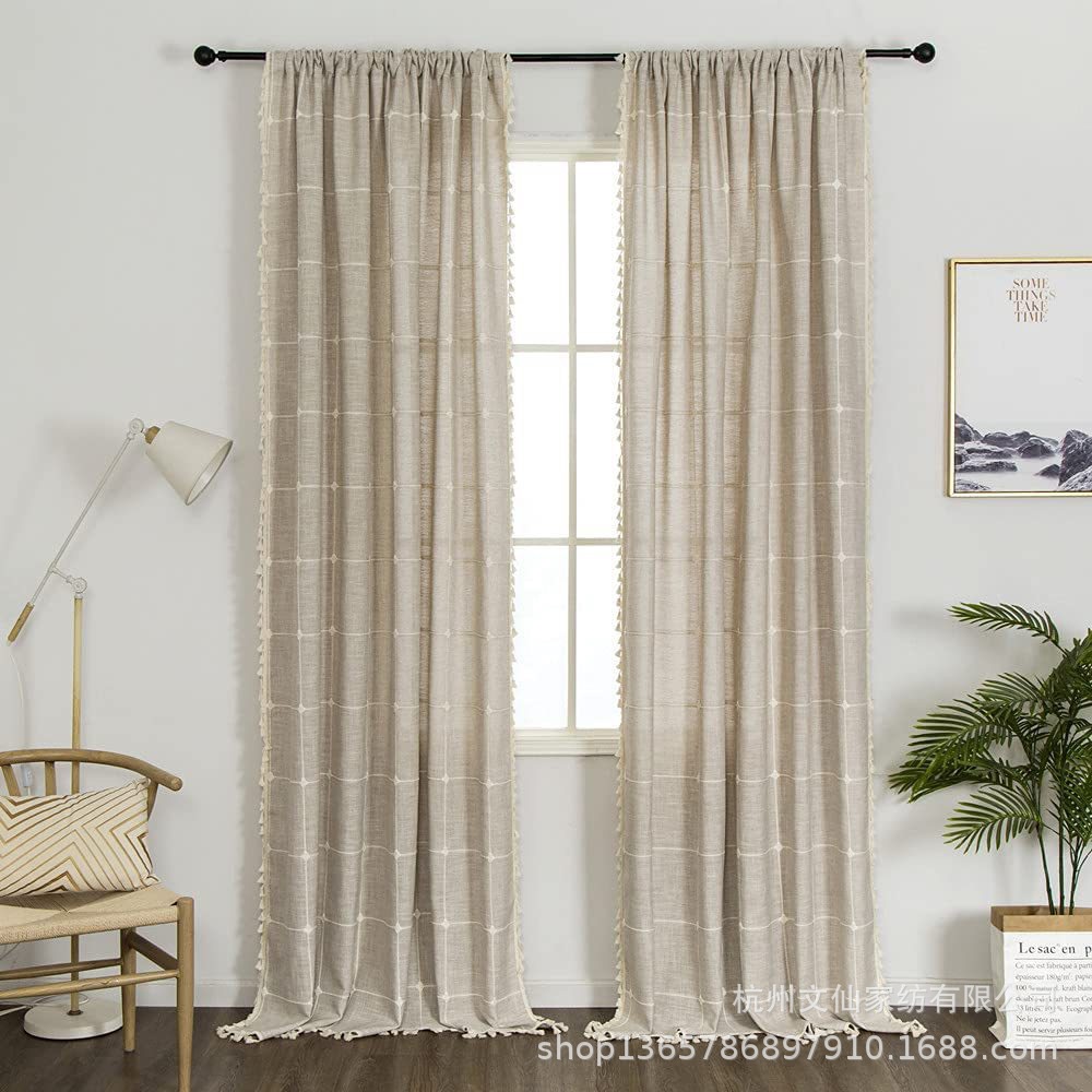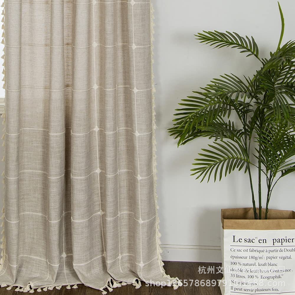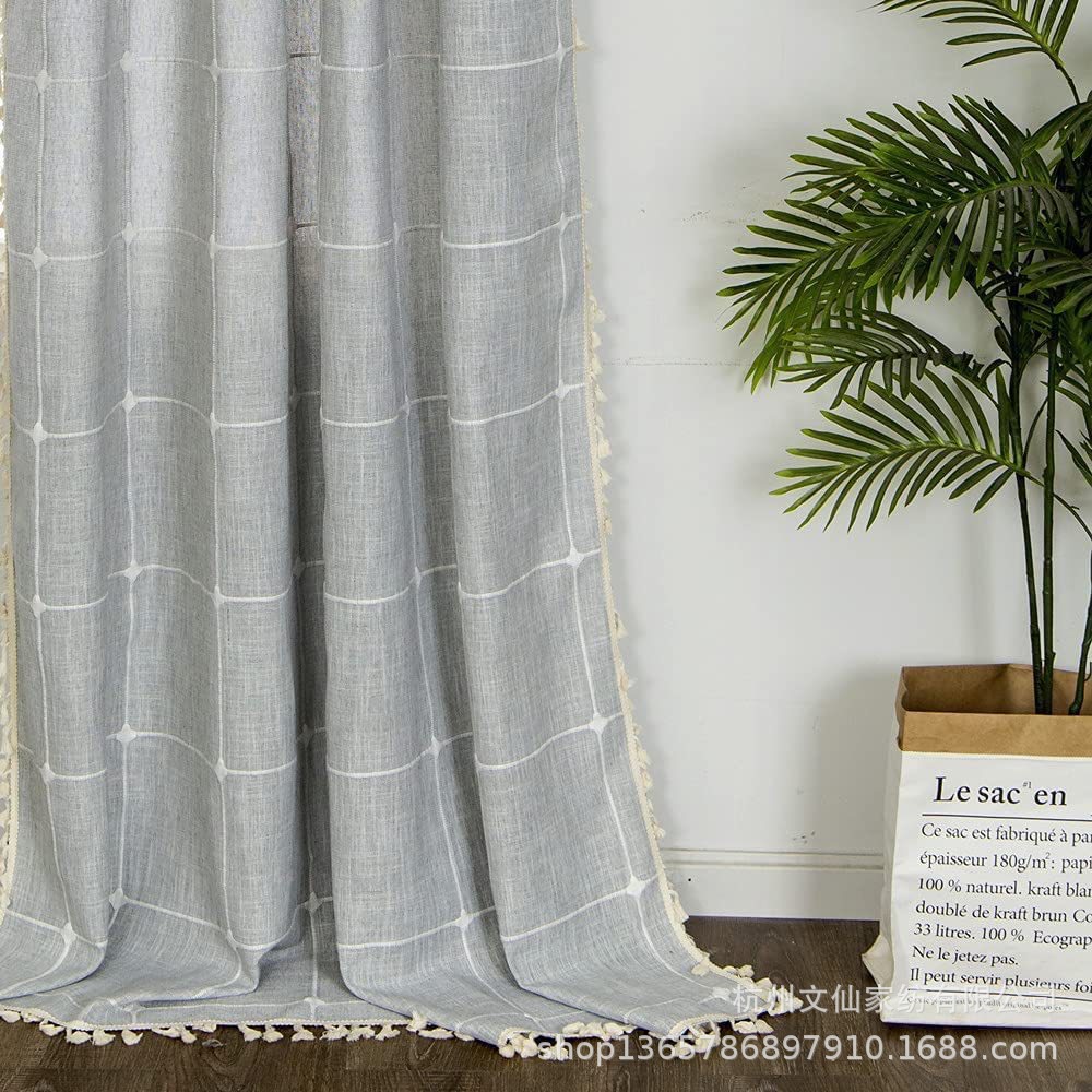 국경 커튼 완성 된 빈티지 농가 광장 자수 린넨 느낌 술 거실 침실 커튼