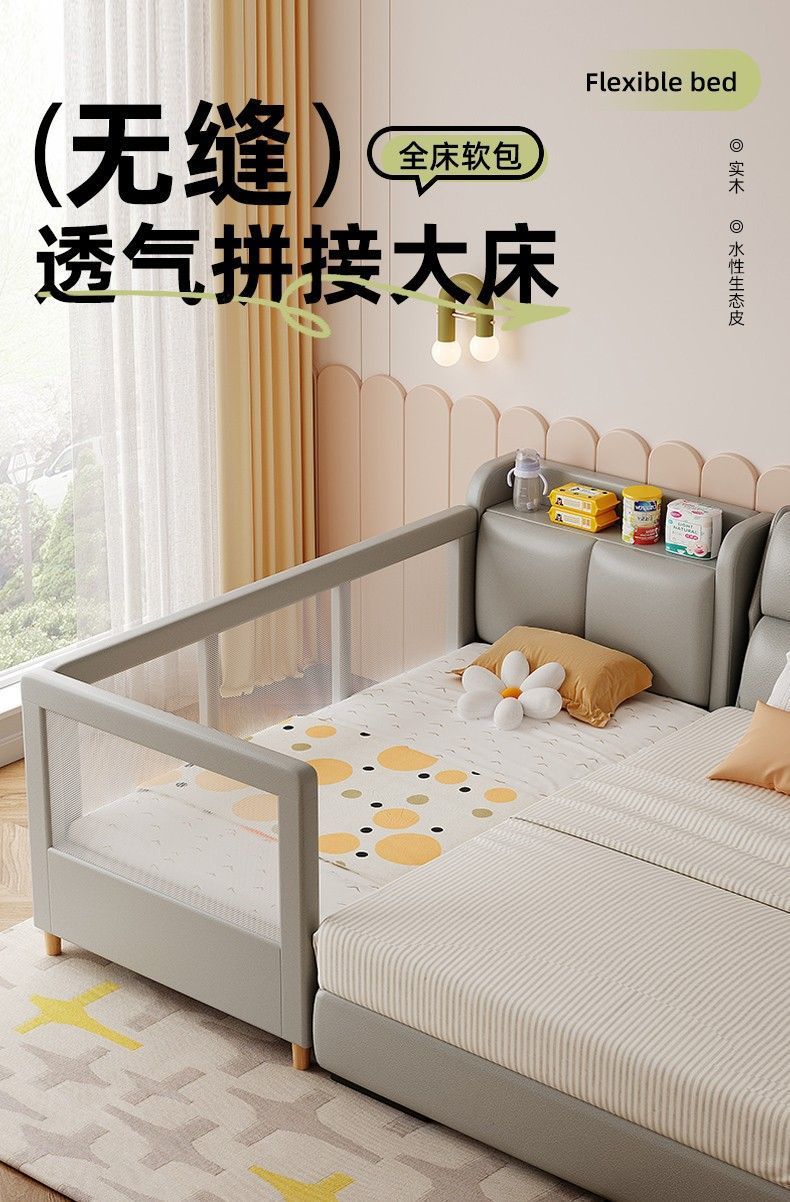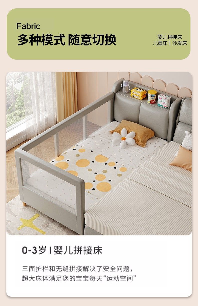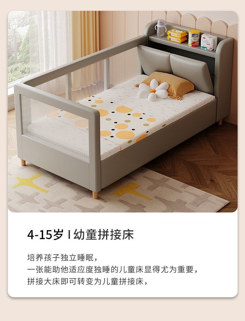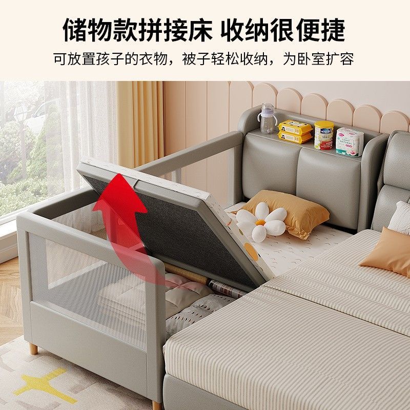 어린이 접합 침대 가드 레일 아기 침대 옆 침대 추가 침대 접합 침대 조명 럭셔리 아기 접합 큰 침대를 가진 확장 된 저장 침대스토어 가기