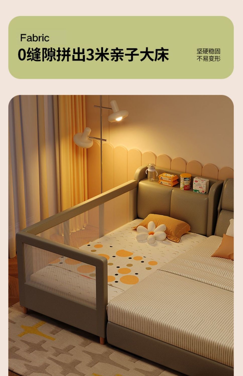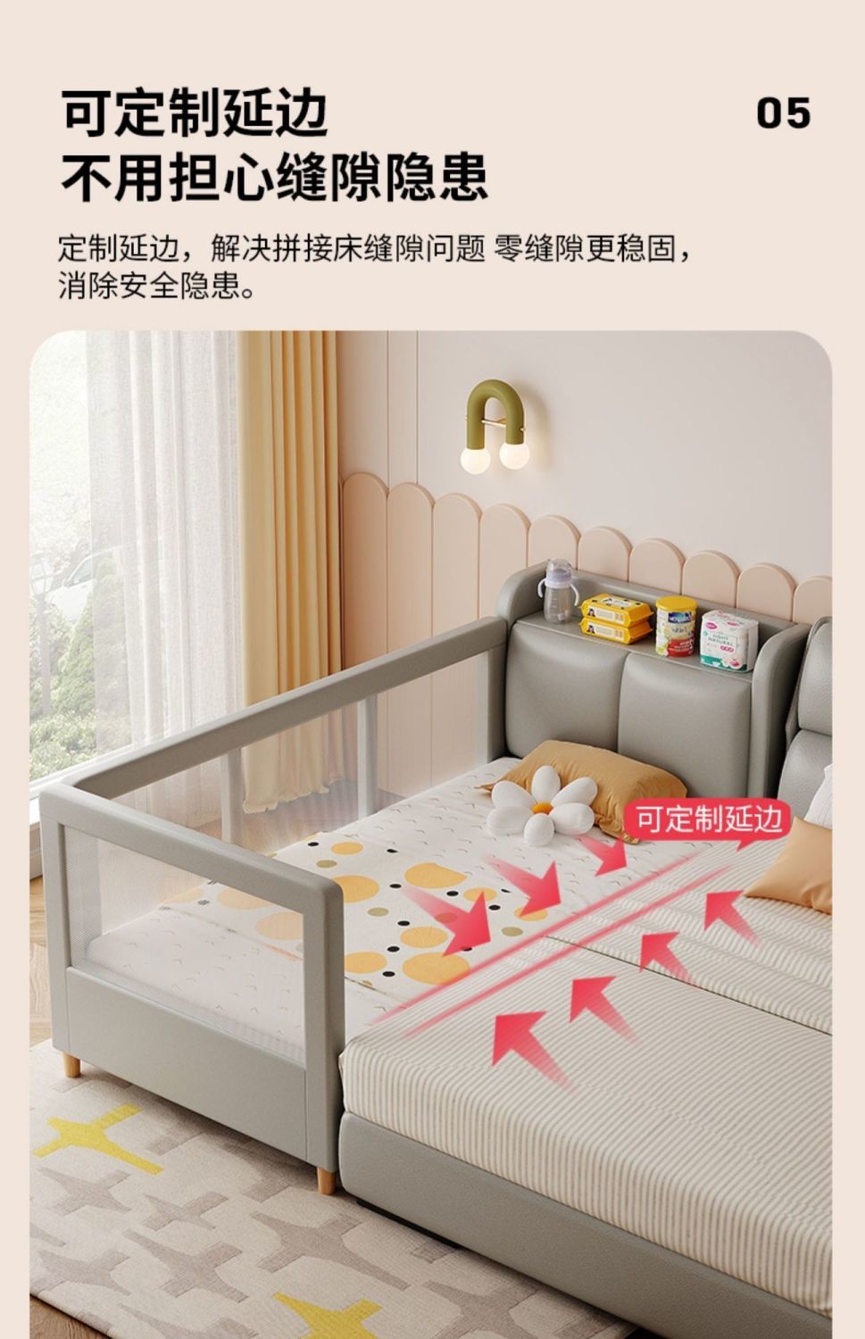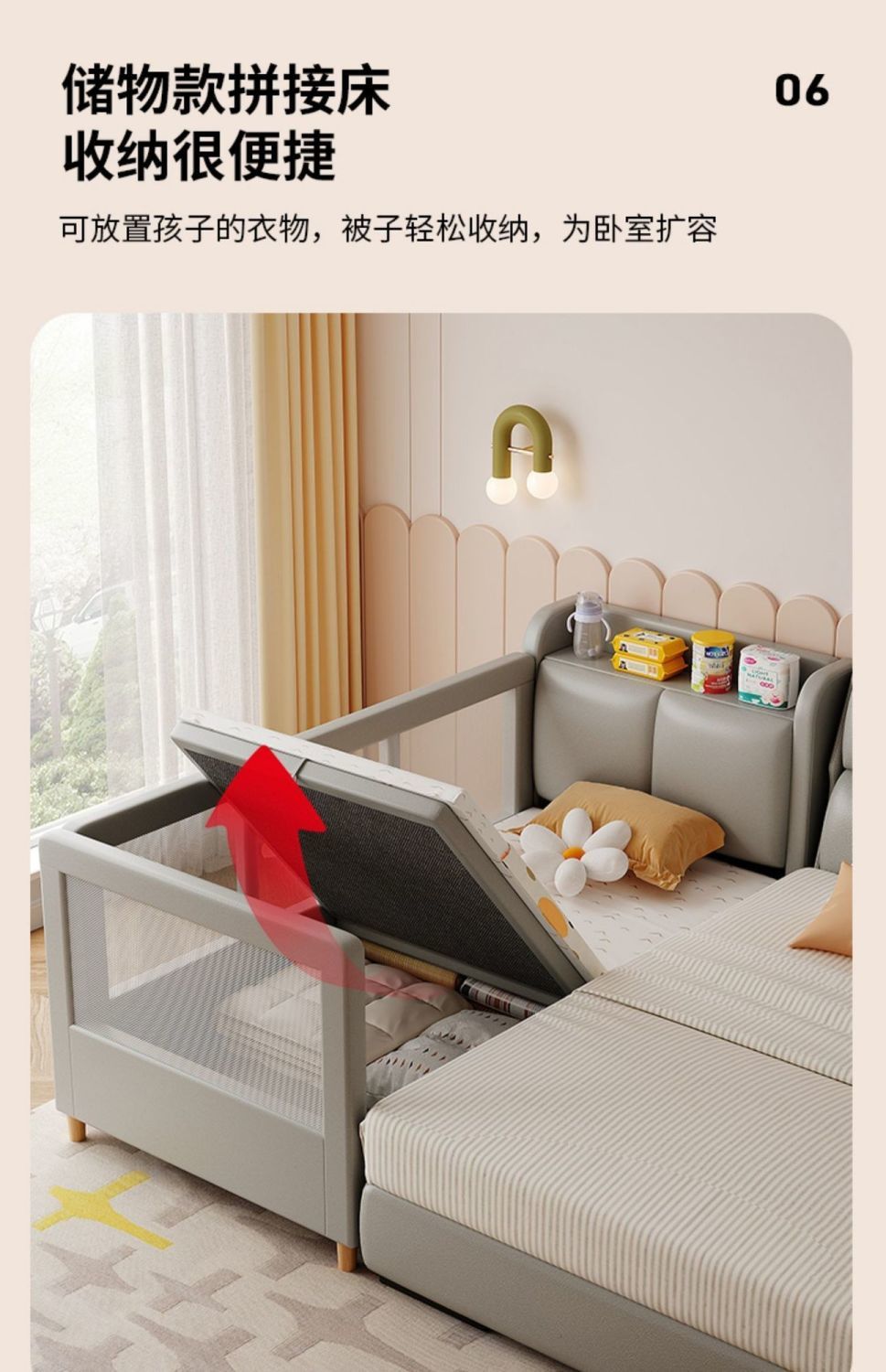 어린이 접합 침대 가드 레일 아기 침대 옆 침대 추가 침대 접합 침대 조명 럭셔리 아기 접합 큰 침대를 가진 확장 된 저장 침대스토어 가기