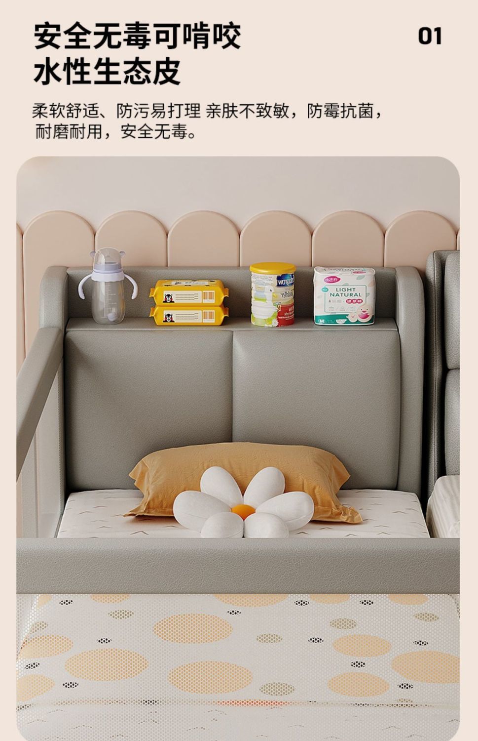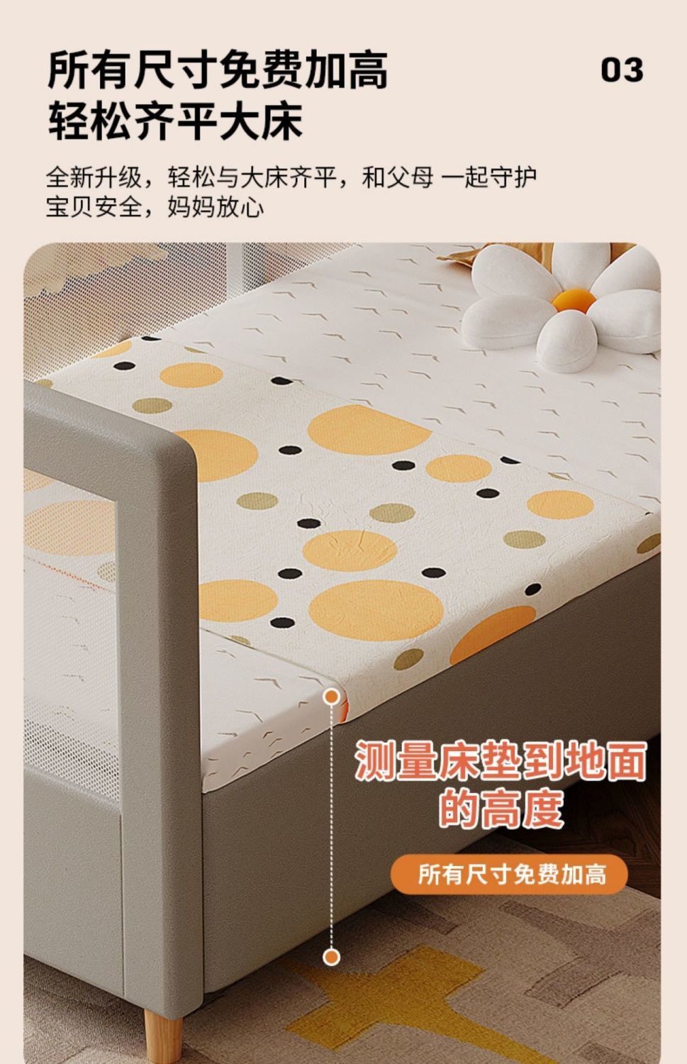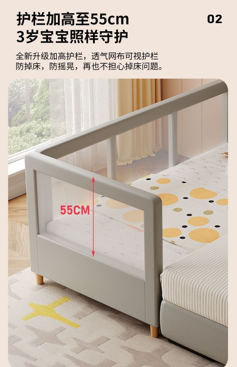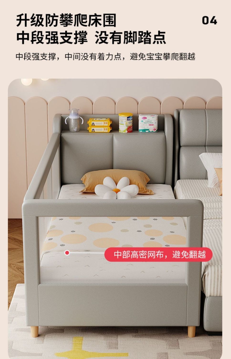 • 메쉬 스타일 무윤 그레이 v 3면 가드레일 + 매트리스