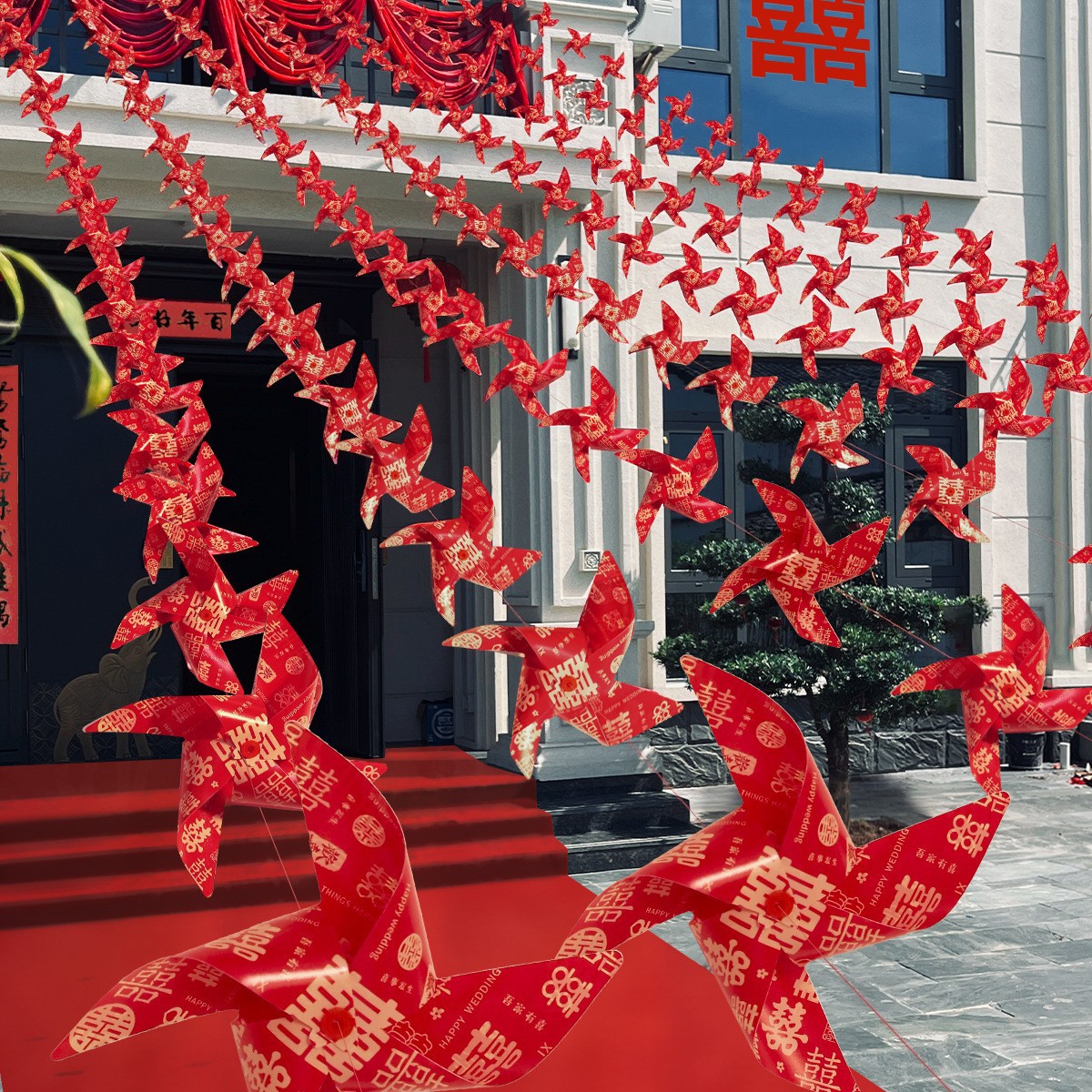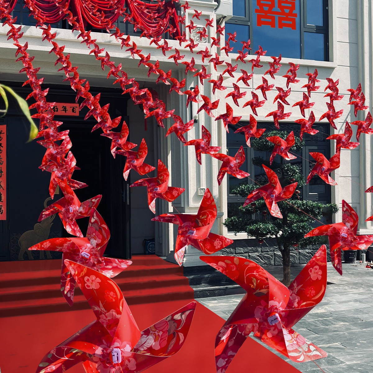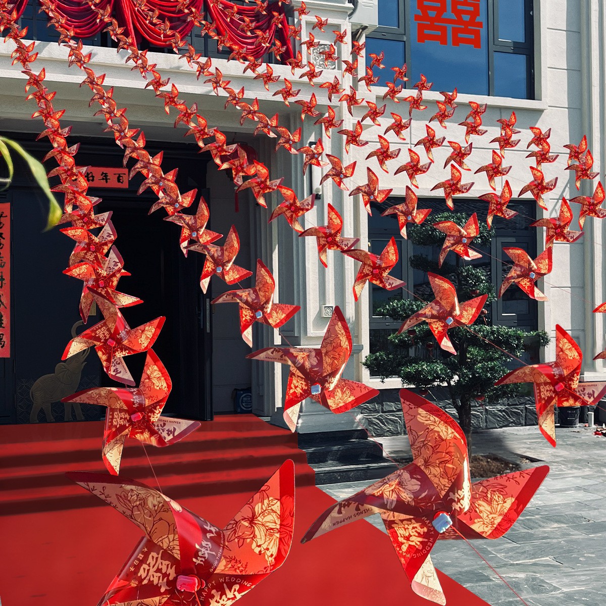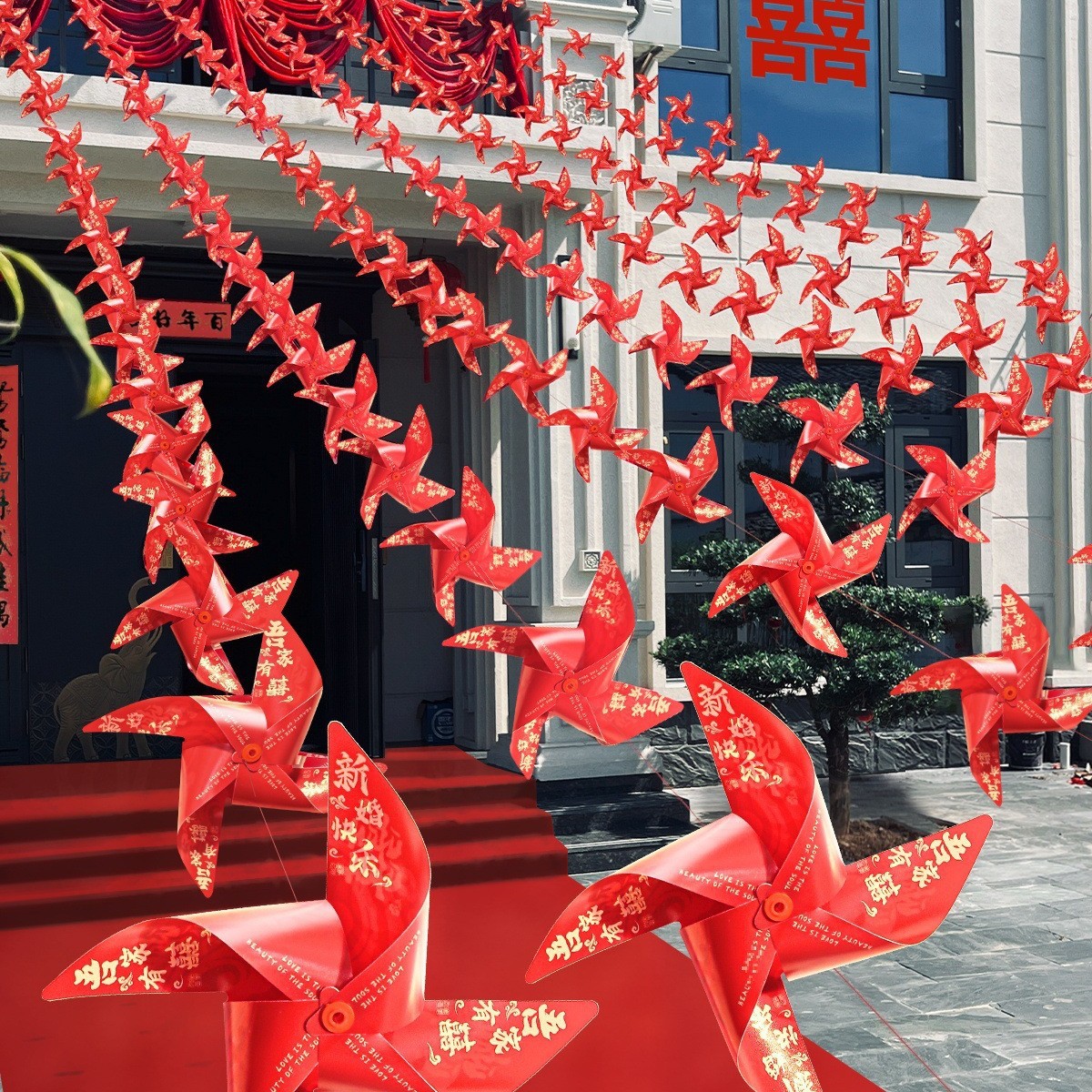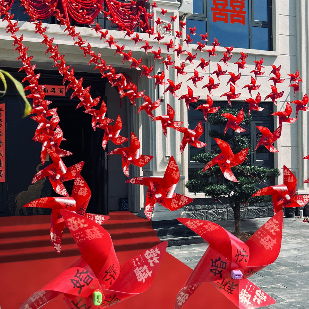 웨딩 풍차 야외 장식 웨딩 야외 마당 농촌 웨딩 원피스 레드 교수형 장식 해피 워드 로드 풍차
