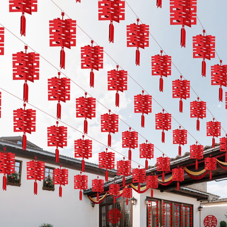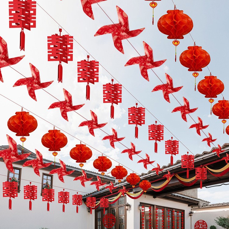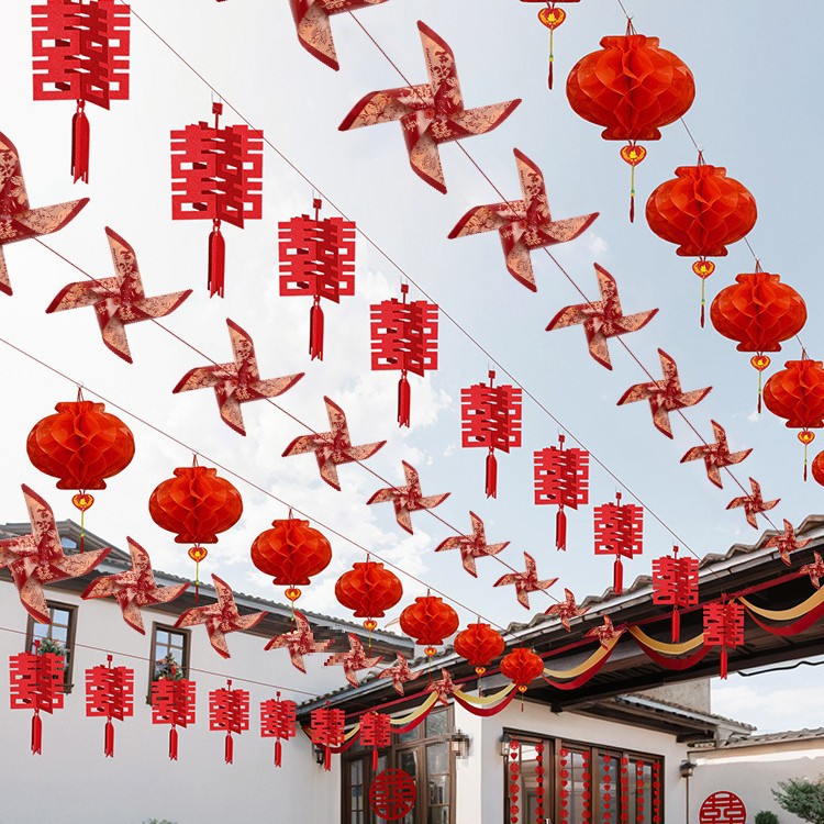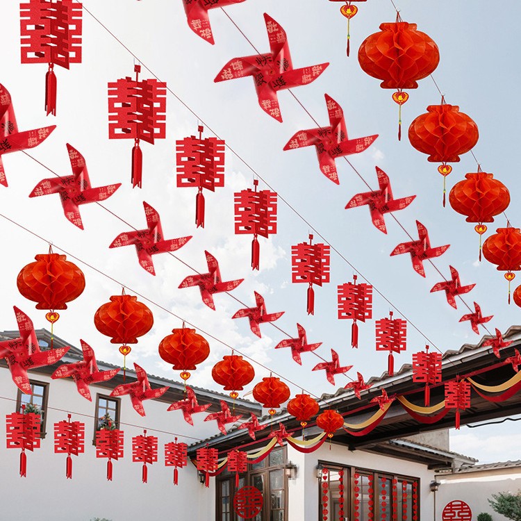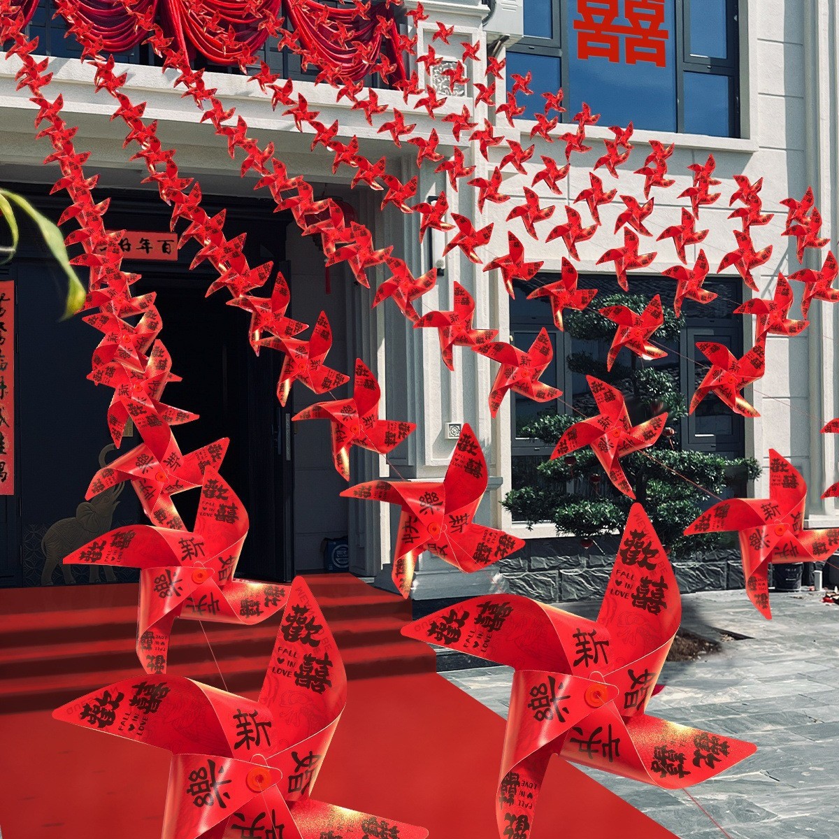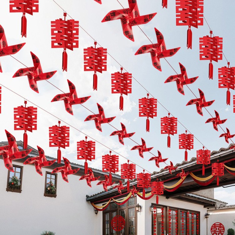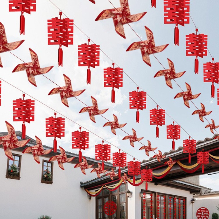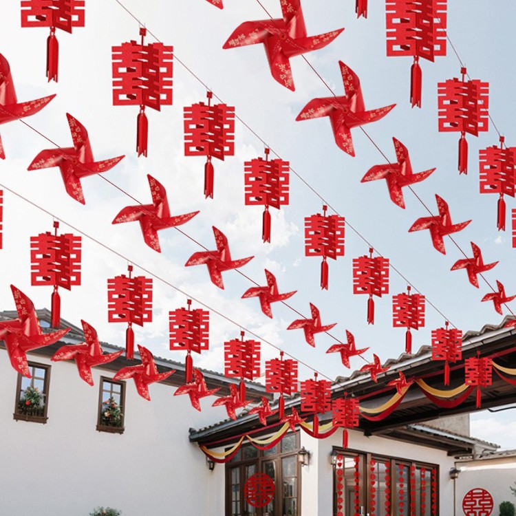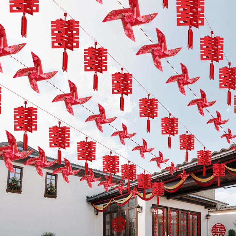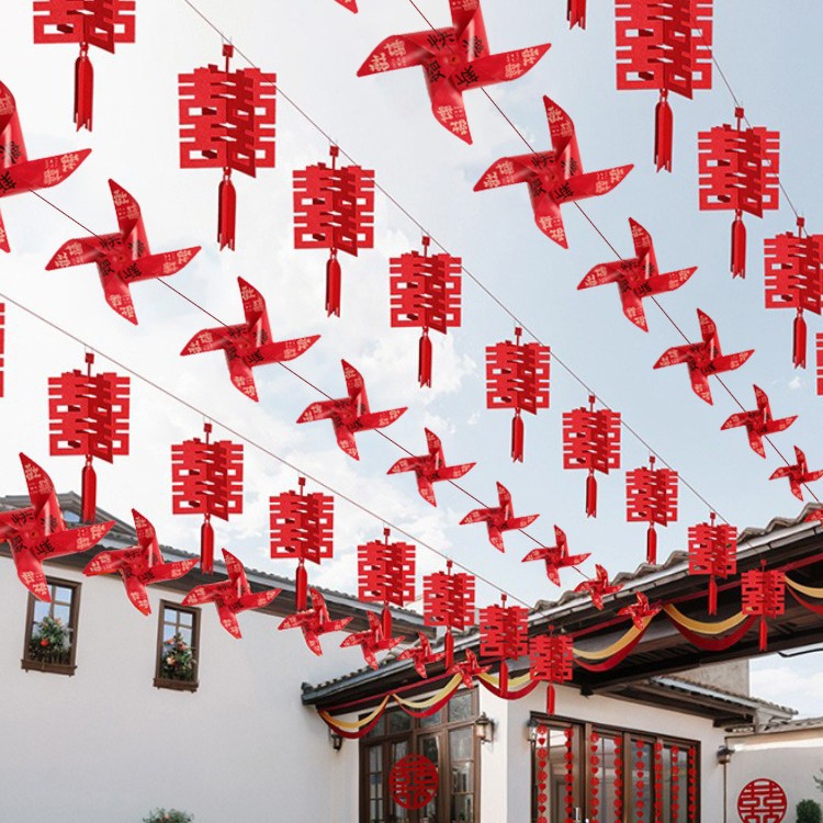 웨딩 풍차 야외 장식 웨딩 야외 마당 농촌 웨딩 원피스 레드 교수형 장식 해피 워드 로드 풍차