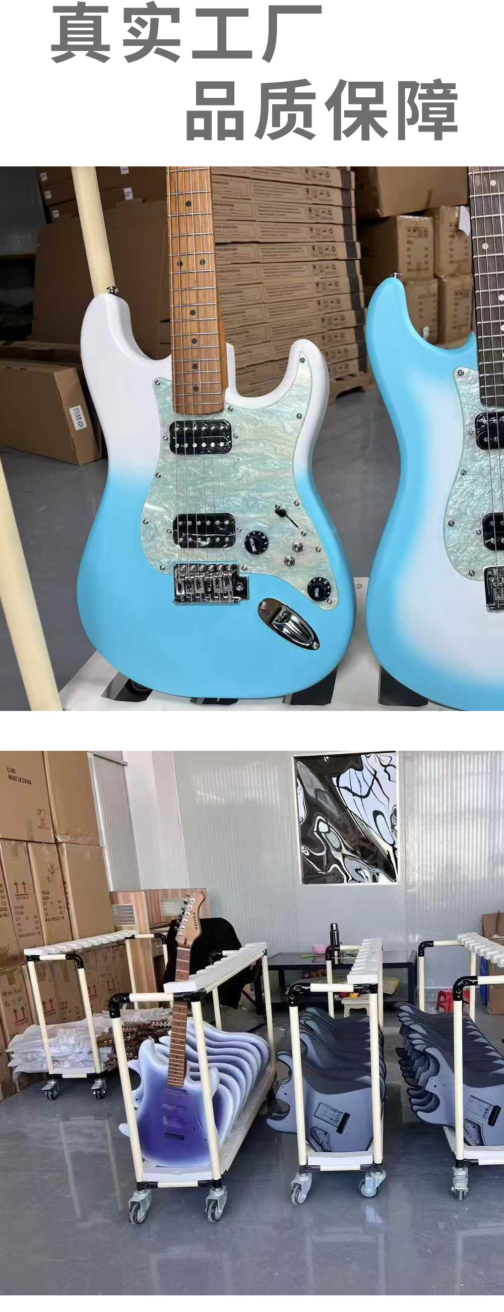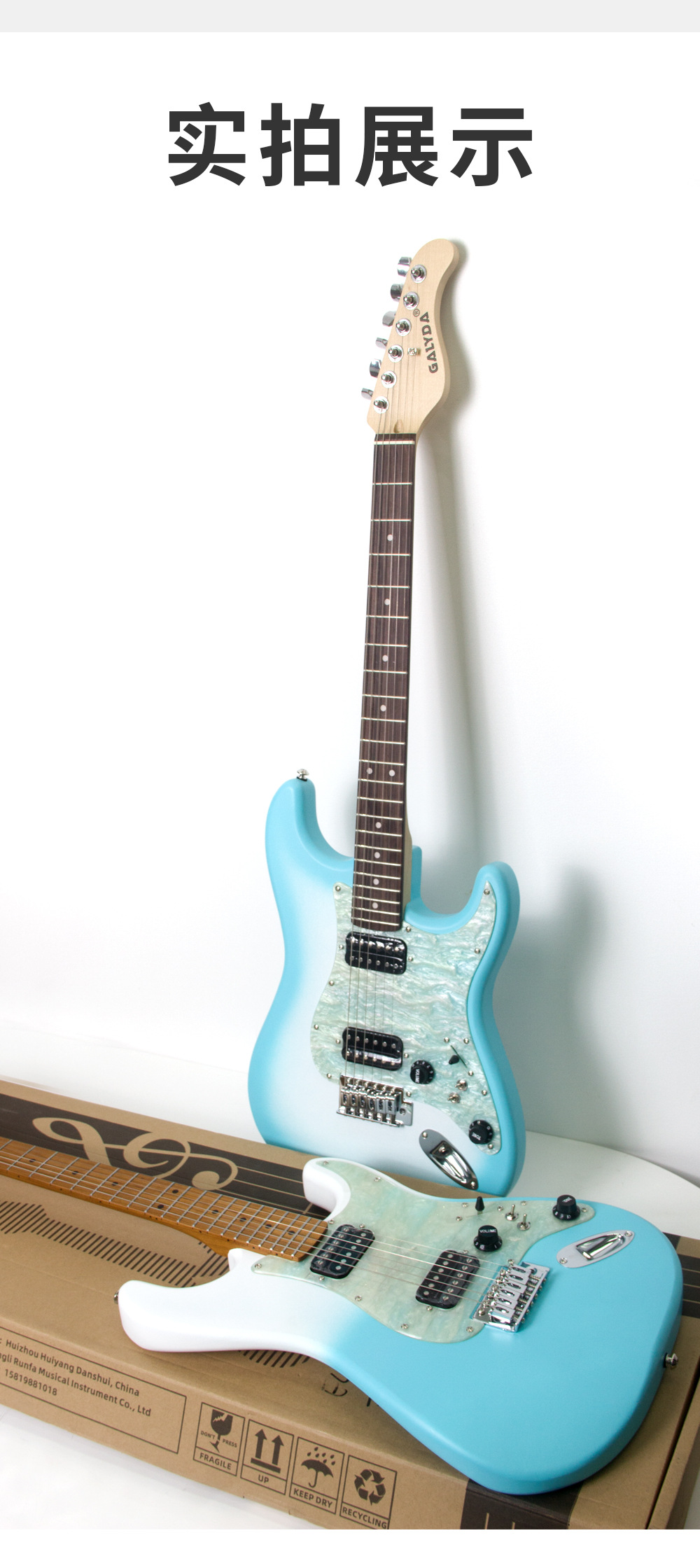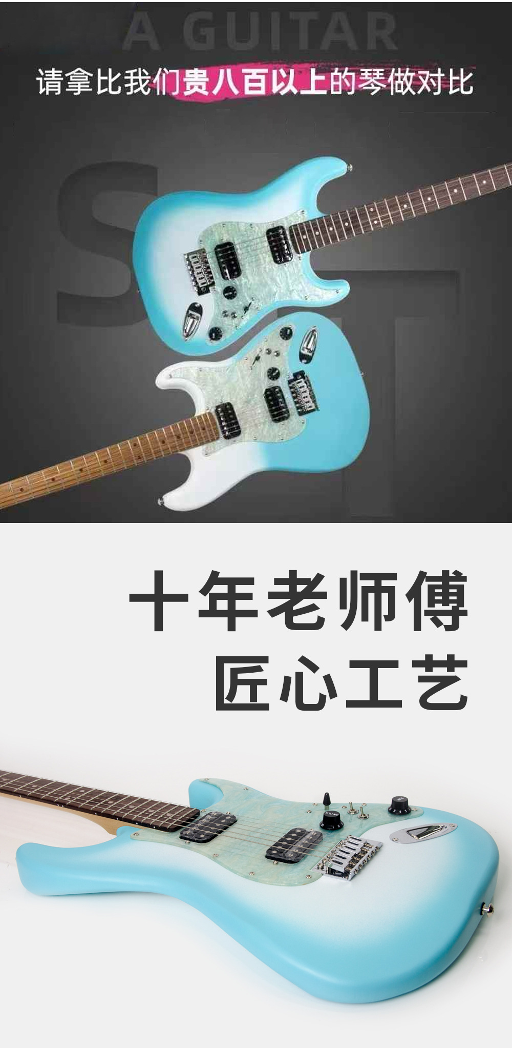 • 39inch ST 싱글 싱글 및 더블 일렉트릭 기타/블루 및 화이트 그라데이션