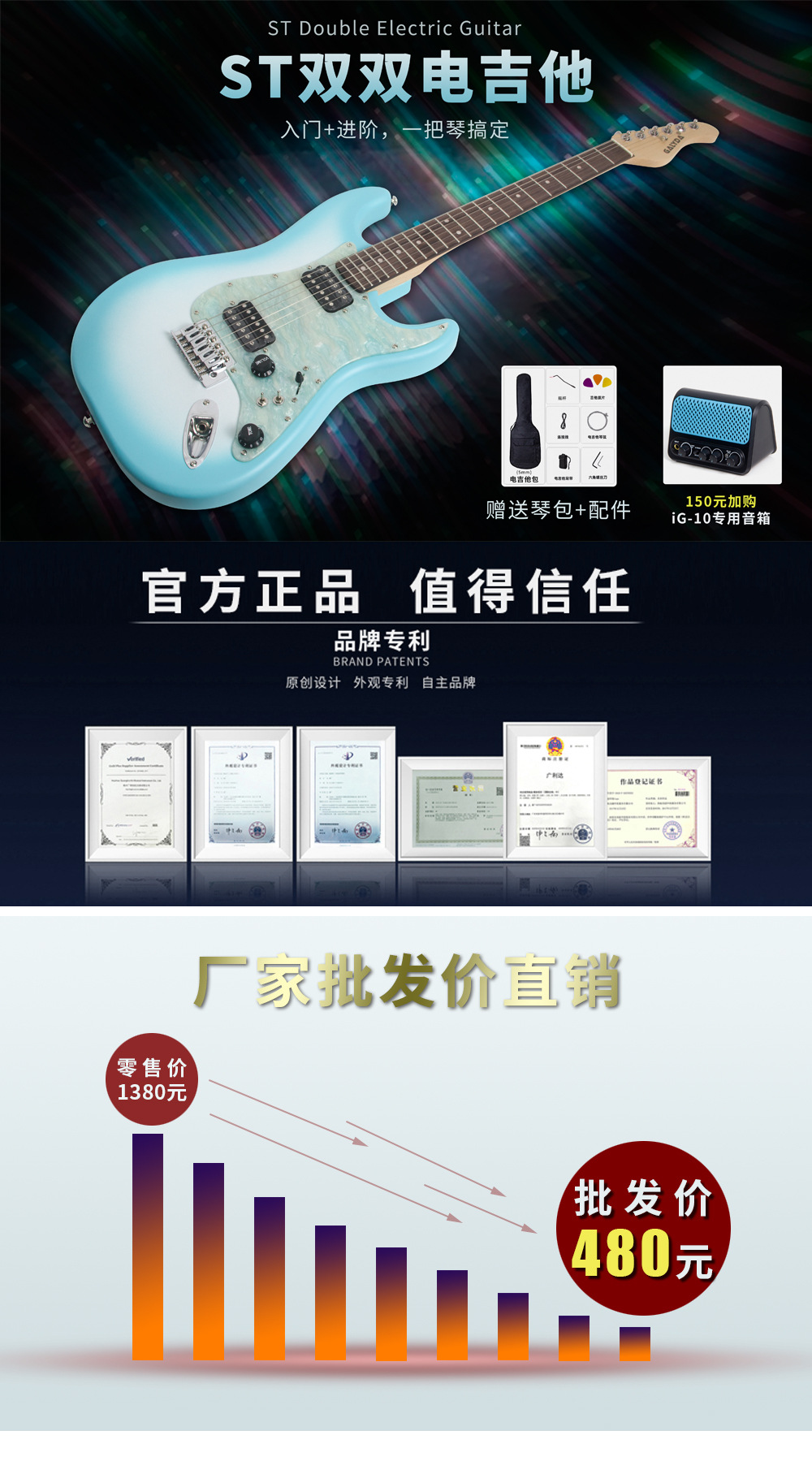 ST 더블 더블 일렉트릭 기타 메이플 넥 포플러 바디 엔트리 레벨 일렉트릭 기타 도매 솔리드 우드 매트 일렉트릭 기타스토어 가기