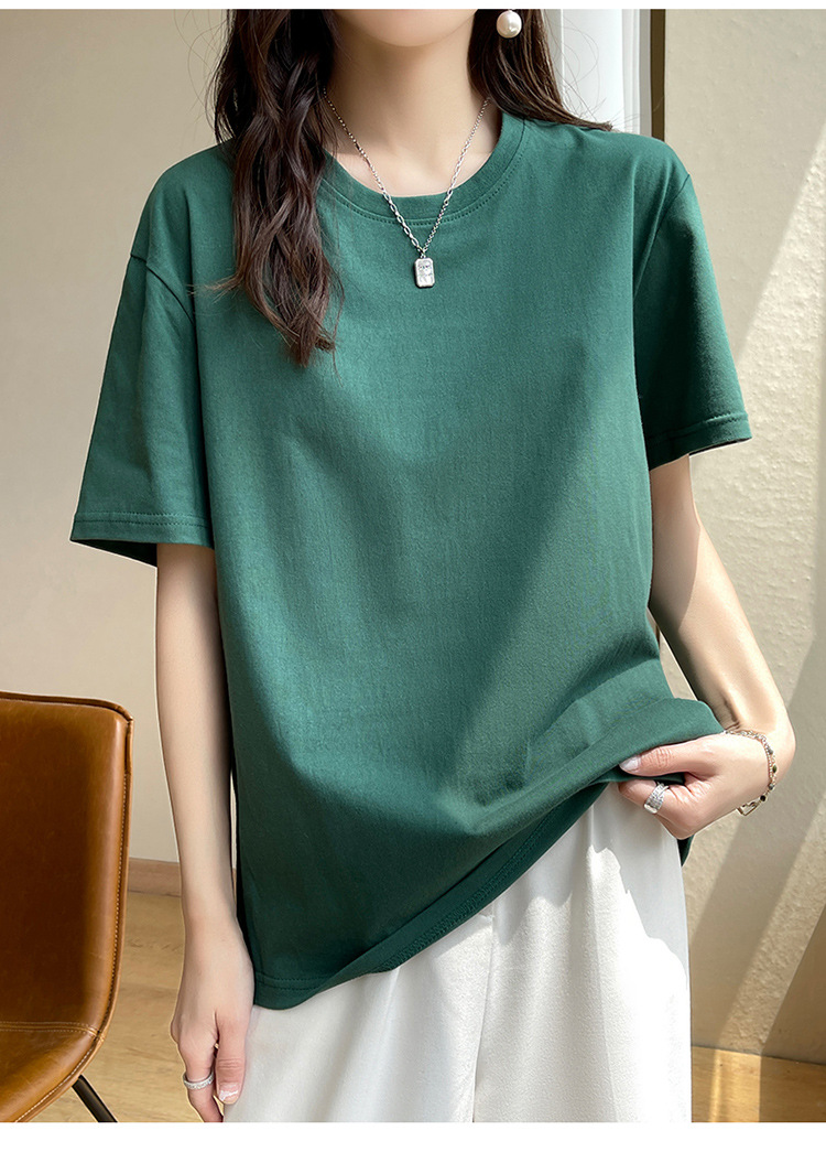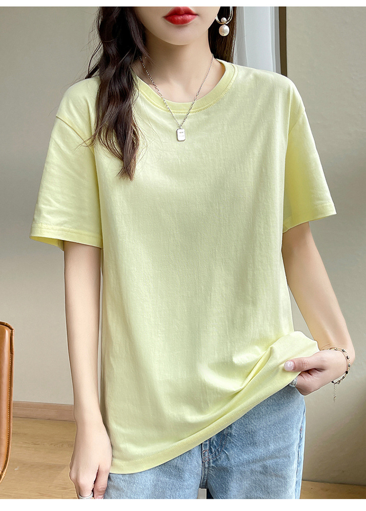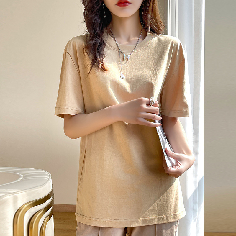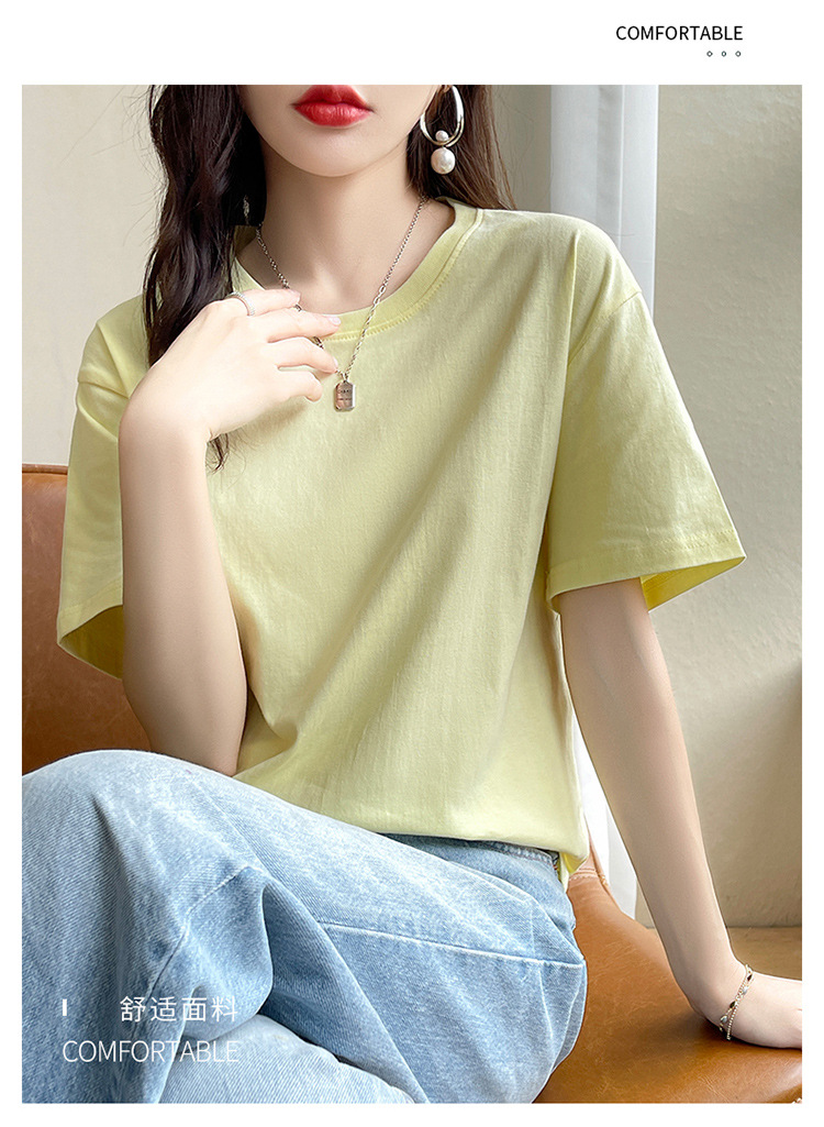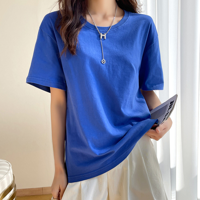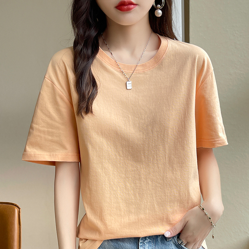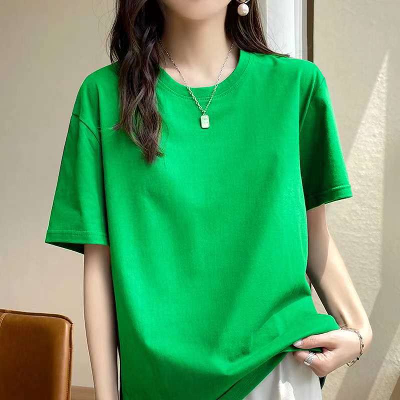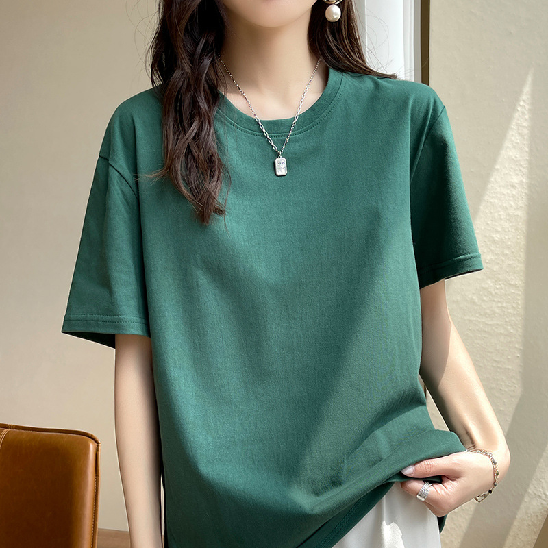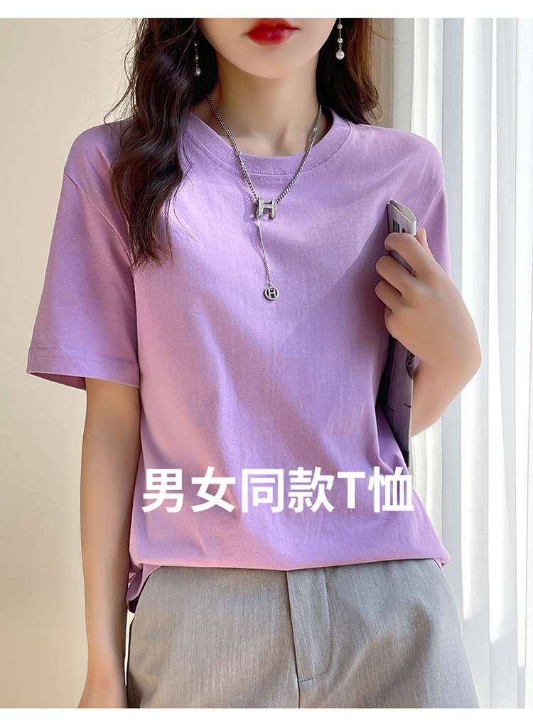 퓨어 코튼 반팔 티셔츠 여성 여름 2025 새로운 남성과 여성의 느슨한 화이트 크루 넥 티셔츠 솔리드 컬러베이스 탑 트렌디스토어 가기