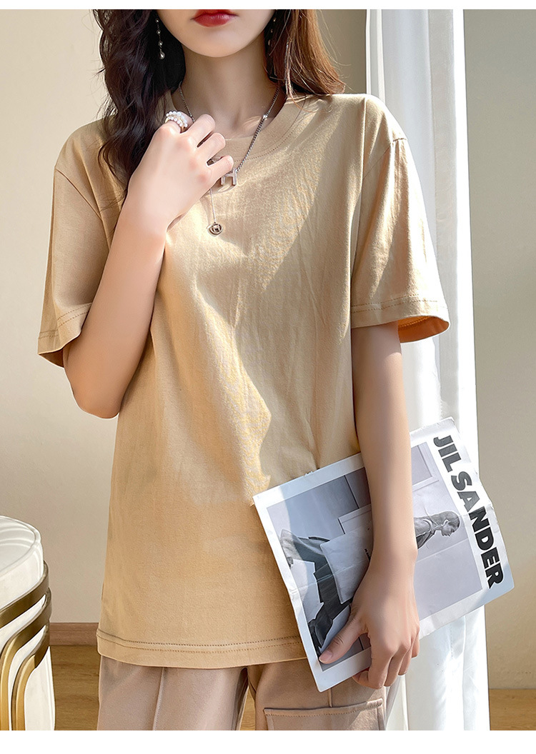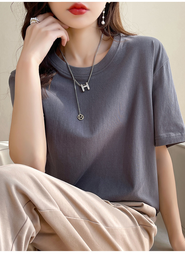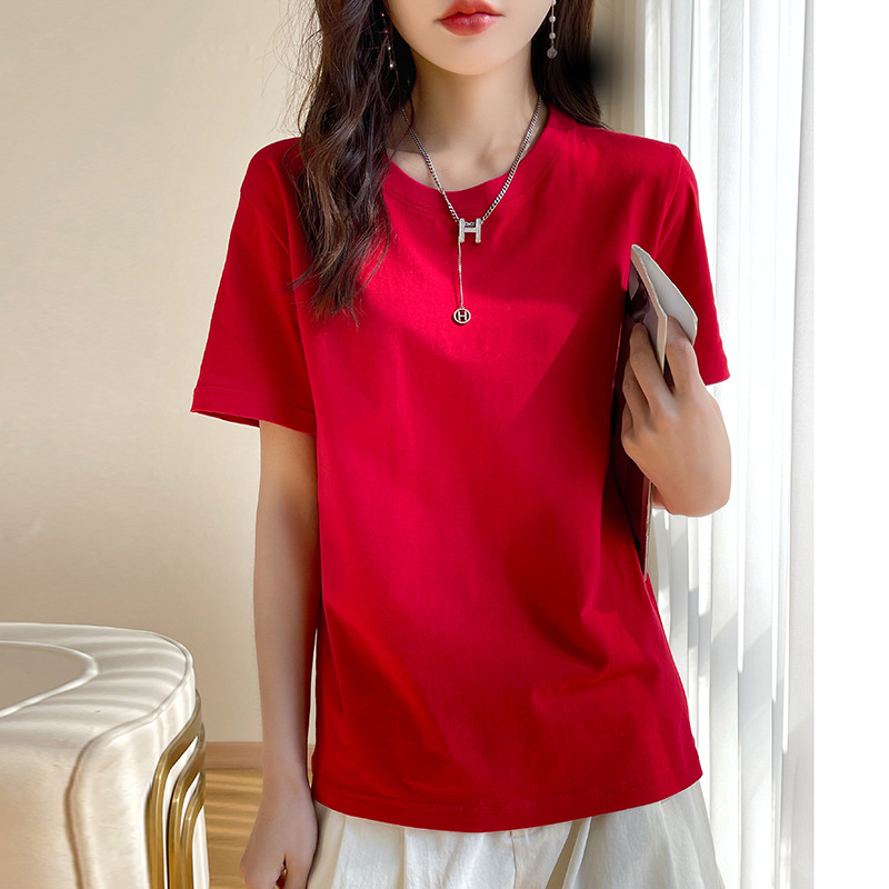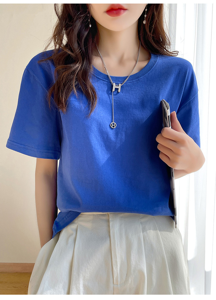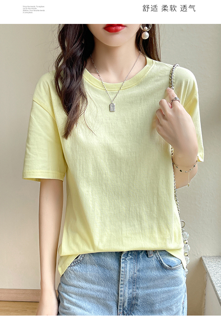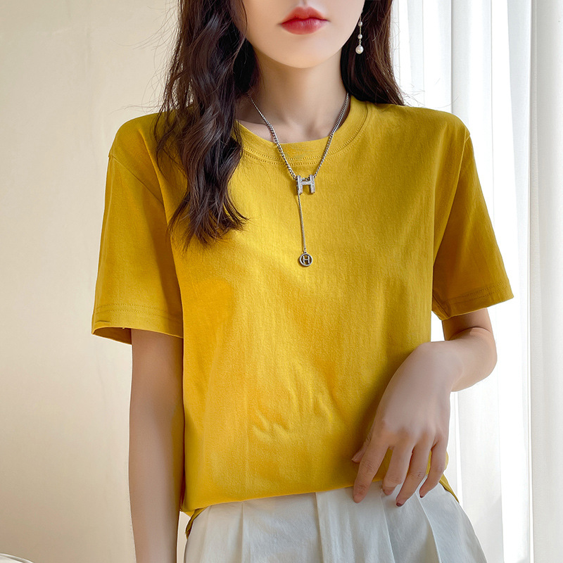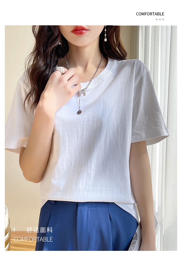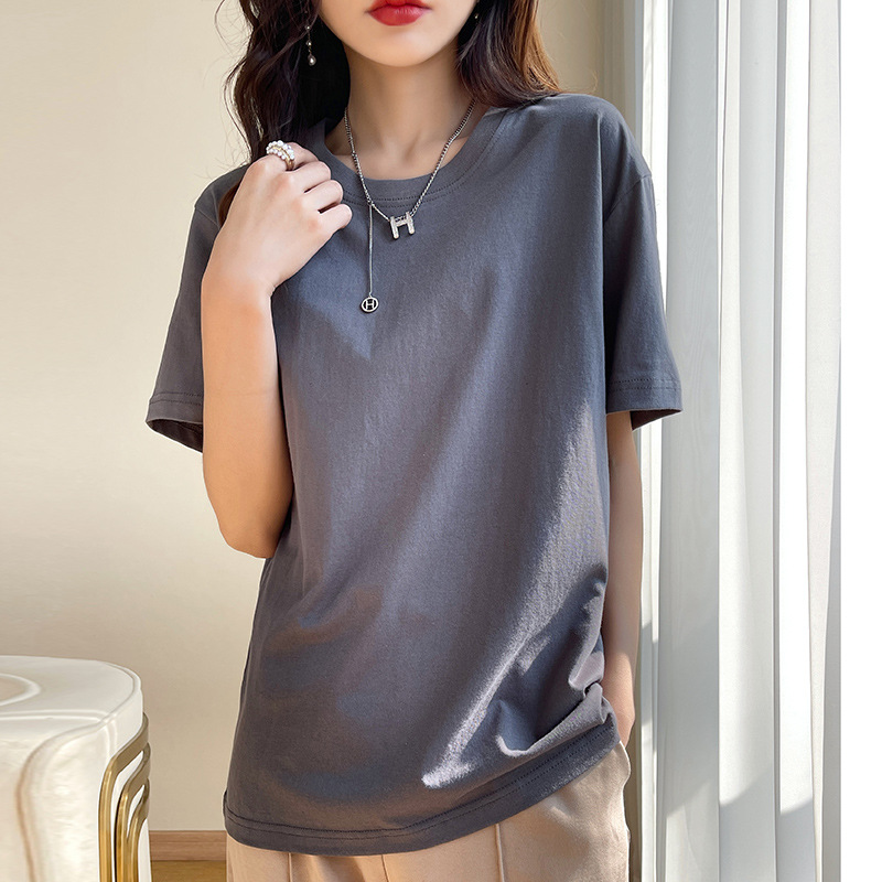 퓨어 코튼 반팔 티셔츠 여성 여름 2025 새로운 남성과 여성의 느슨한 화이트 크루 넥 티셔츠 솔리드 컬러베이스 탑 트렌디스토어 가기