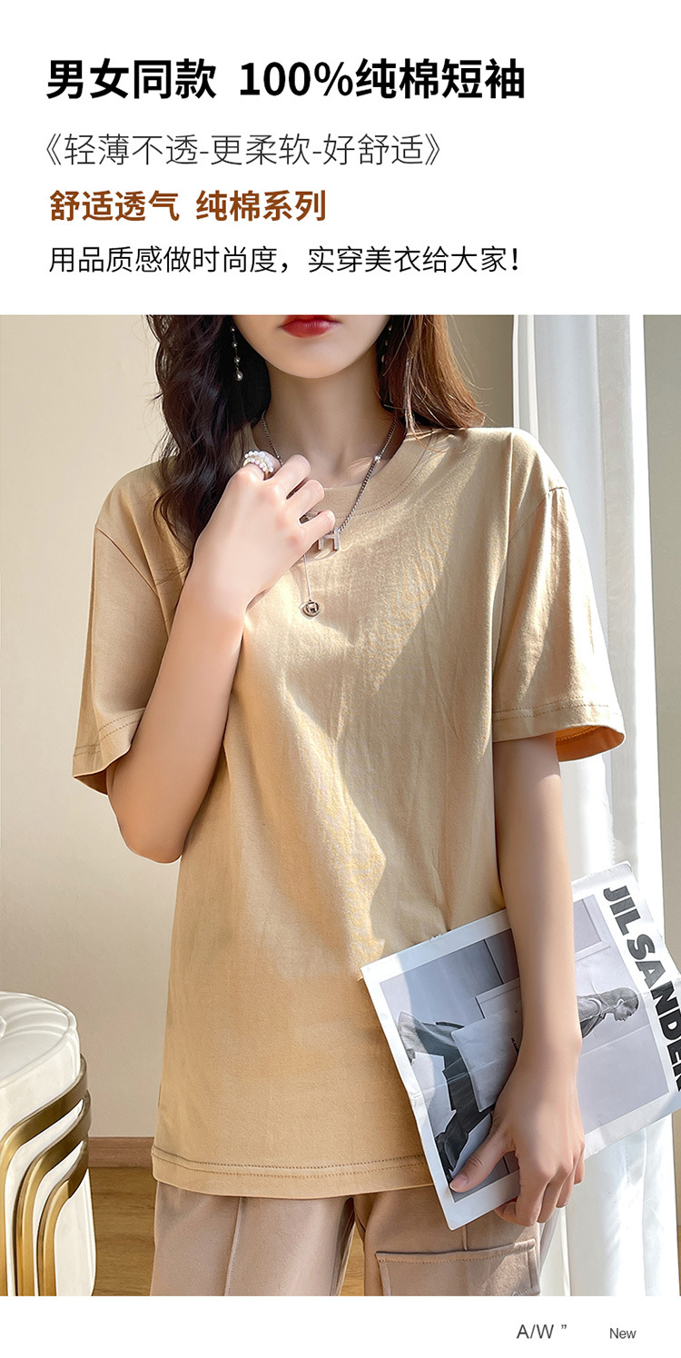 퓨어 코튼 반팔 티셔츠 여성 여름 2025 새로운 남성과 여성의 느슨한 화이트 크루 넥 티셔츠 솔리드 컬러베이스 탑 트렌디