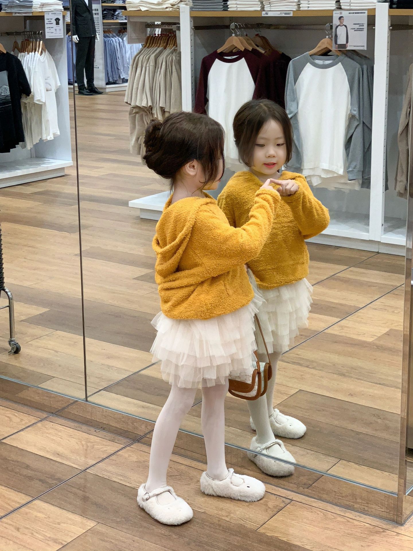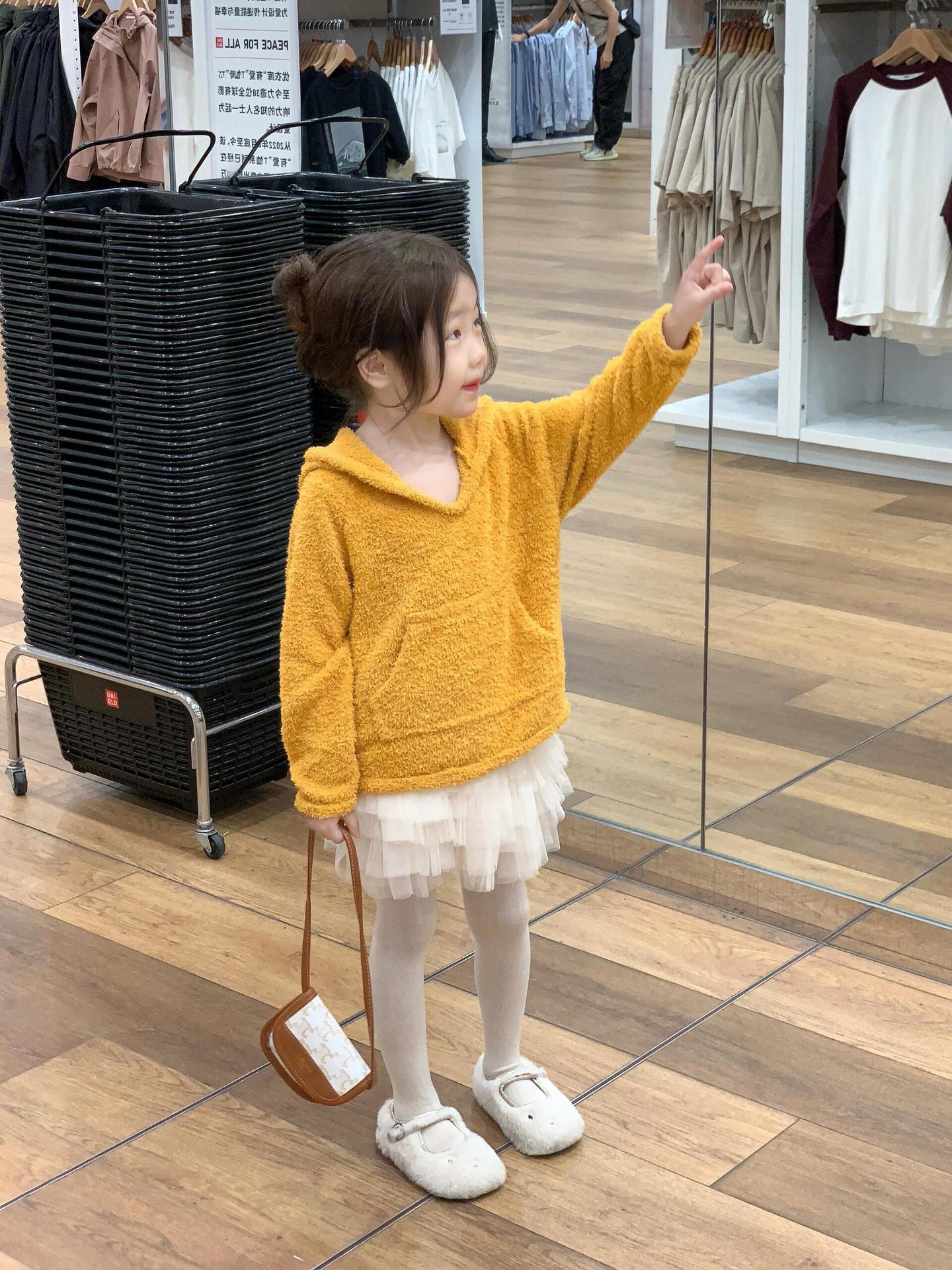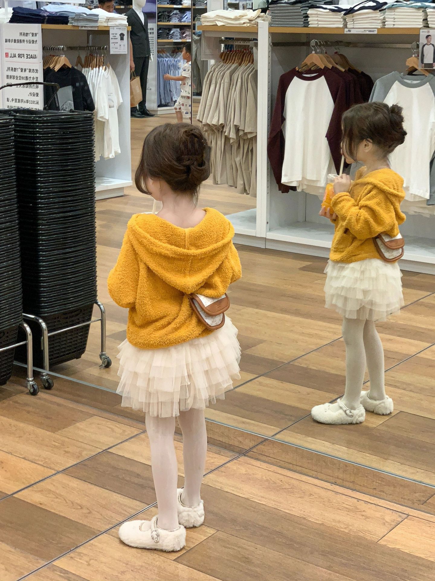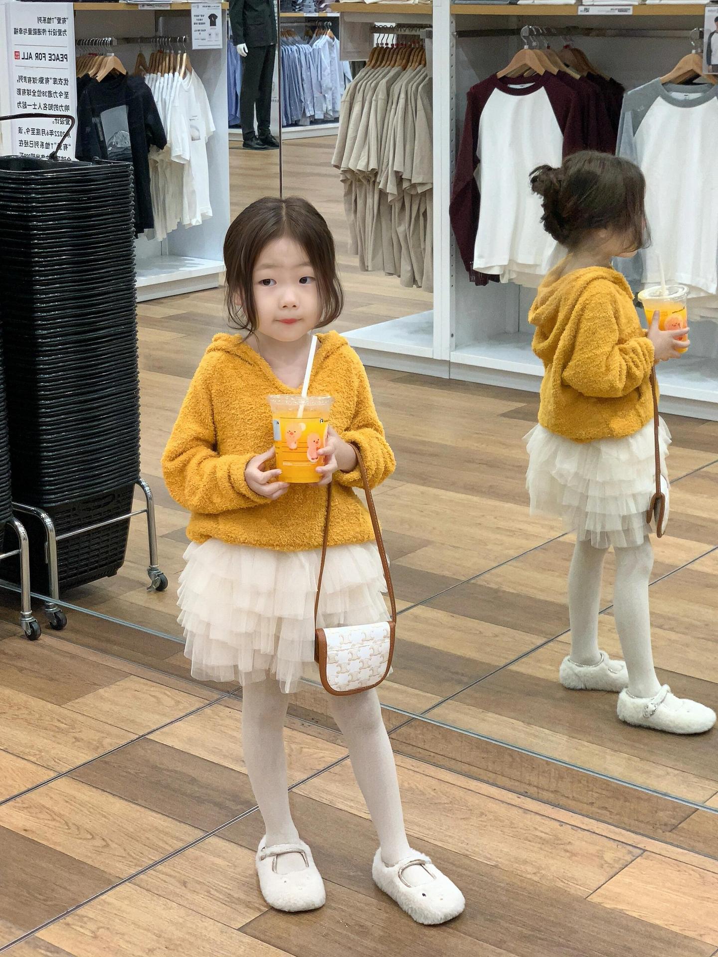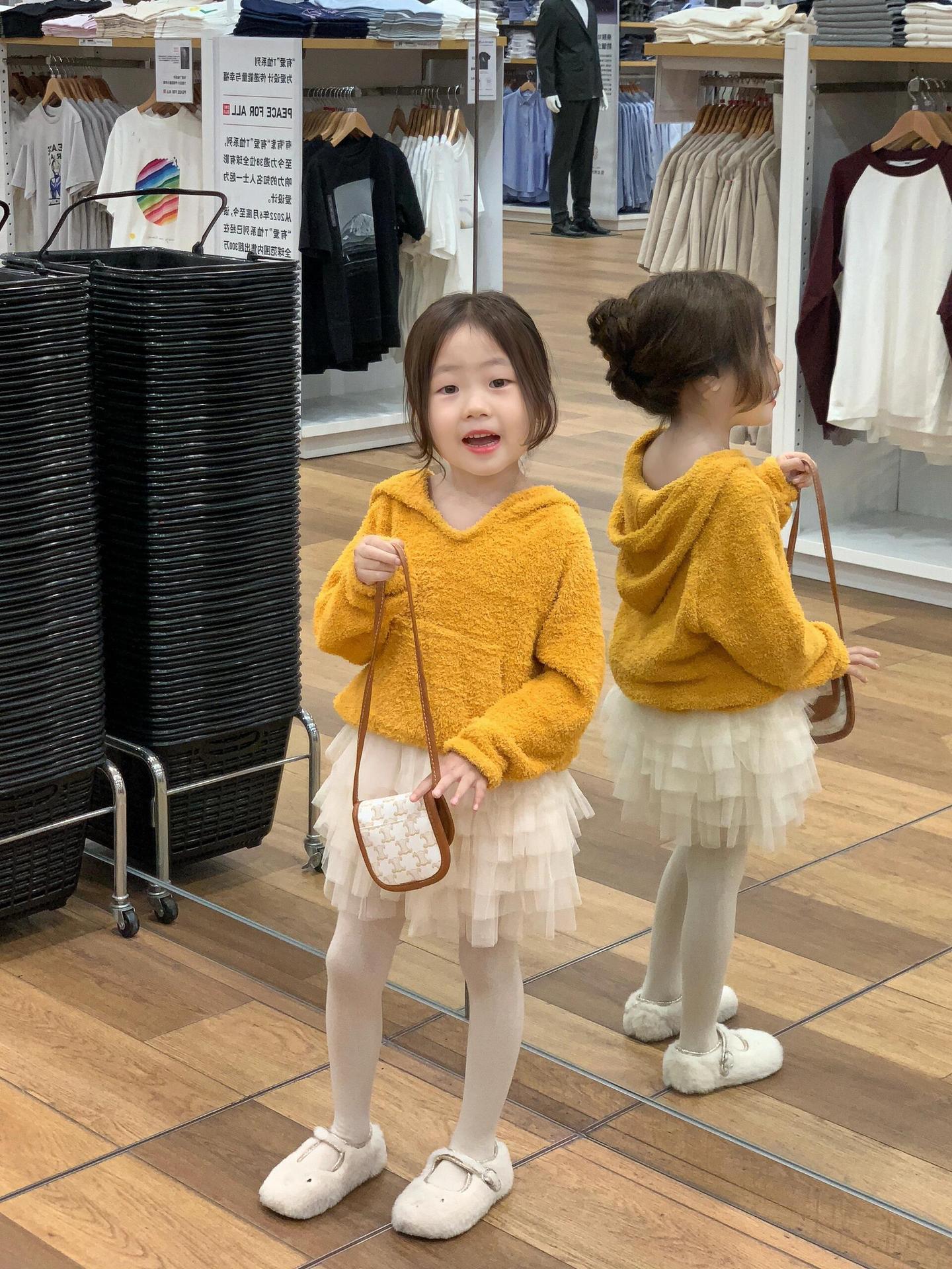 2025 봄 소녀 캐주얼 소프트 왁스 옐로우 후드 스위트 스타일 레이어 별 반 길이 케이크 거즈 스커트 촬영스토어 가기