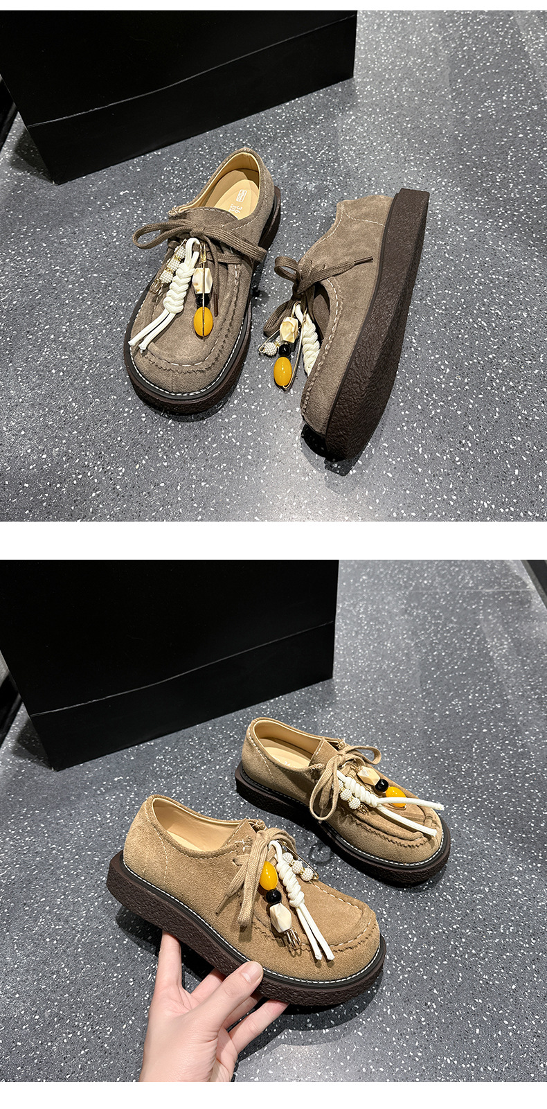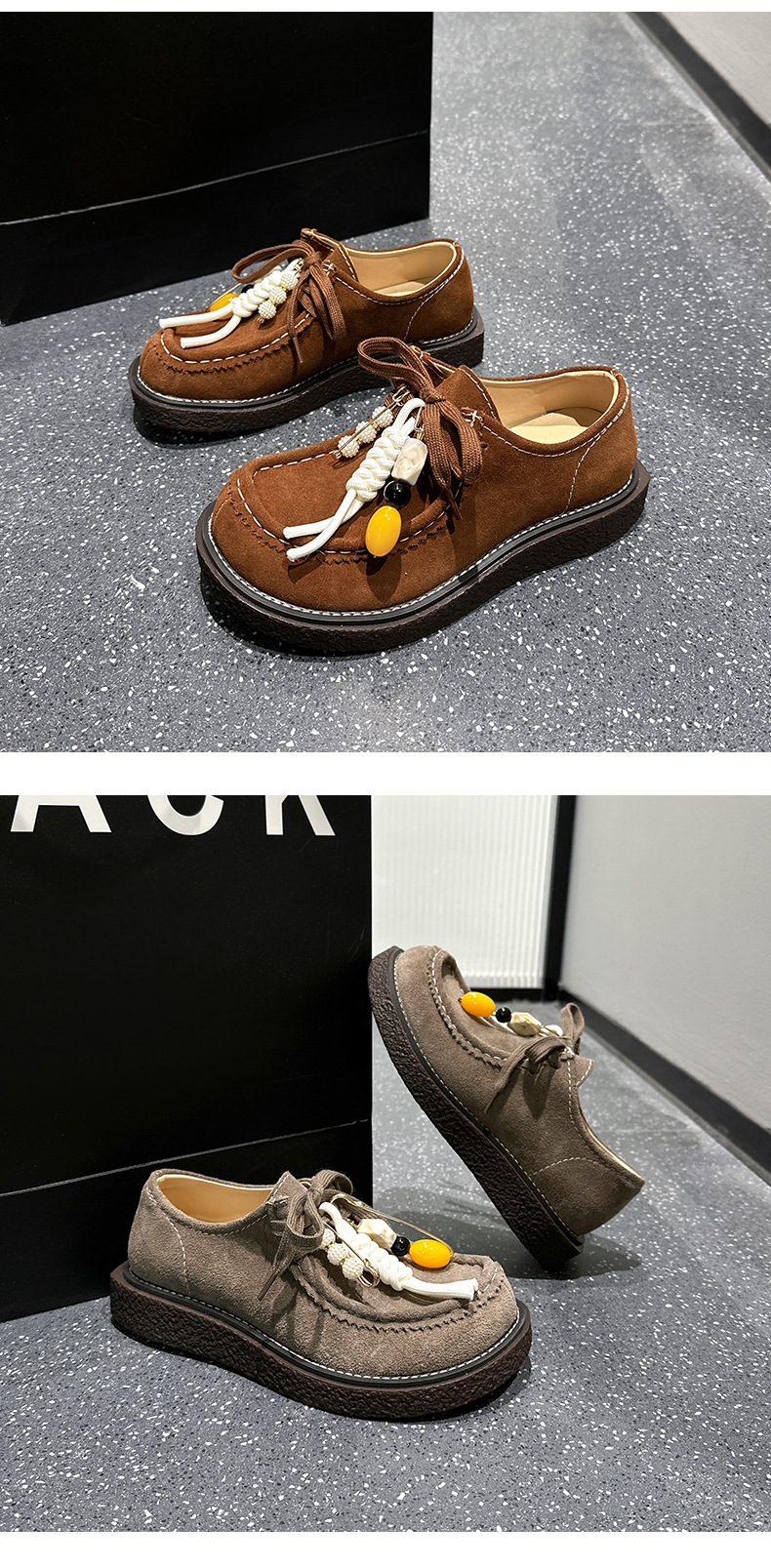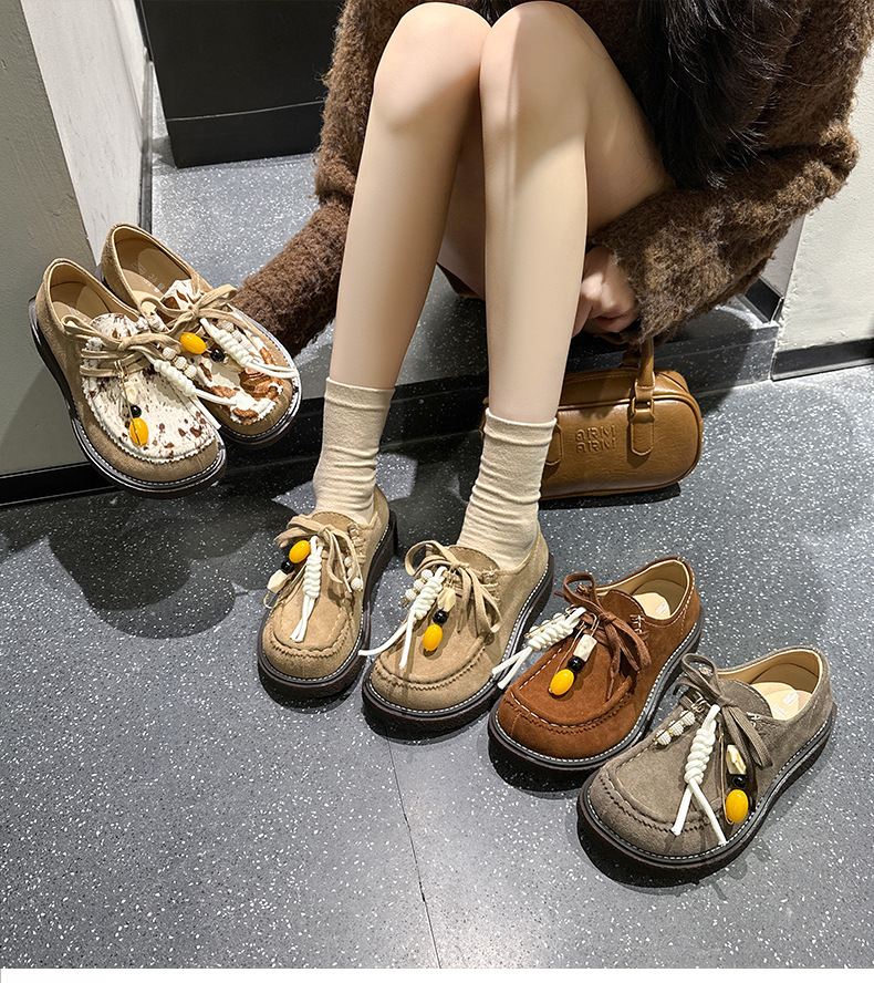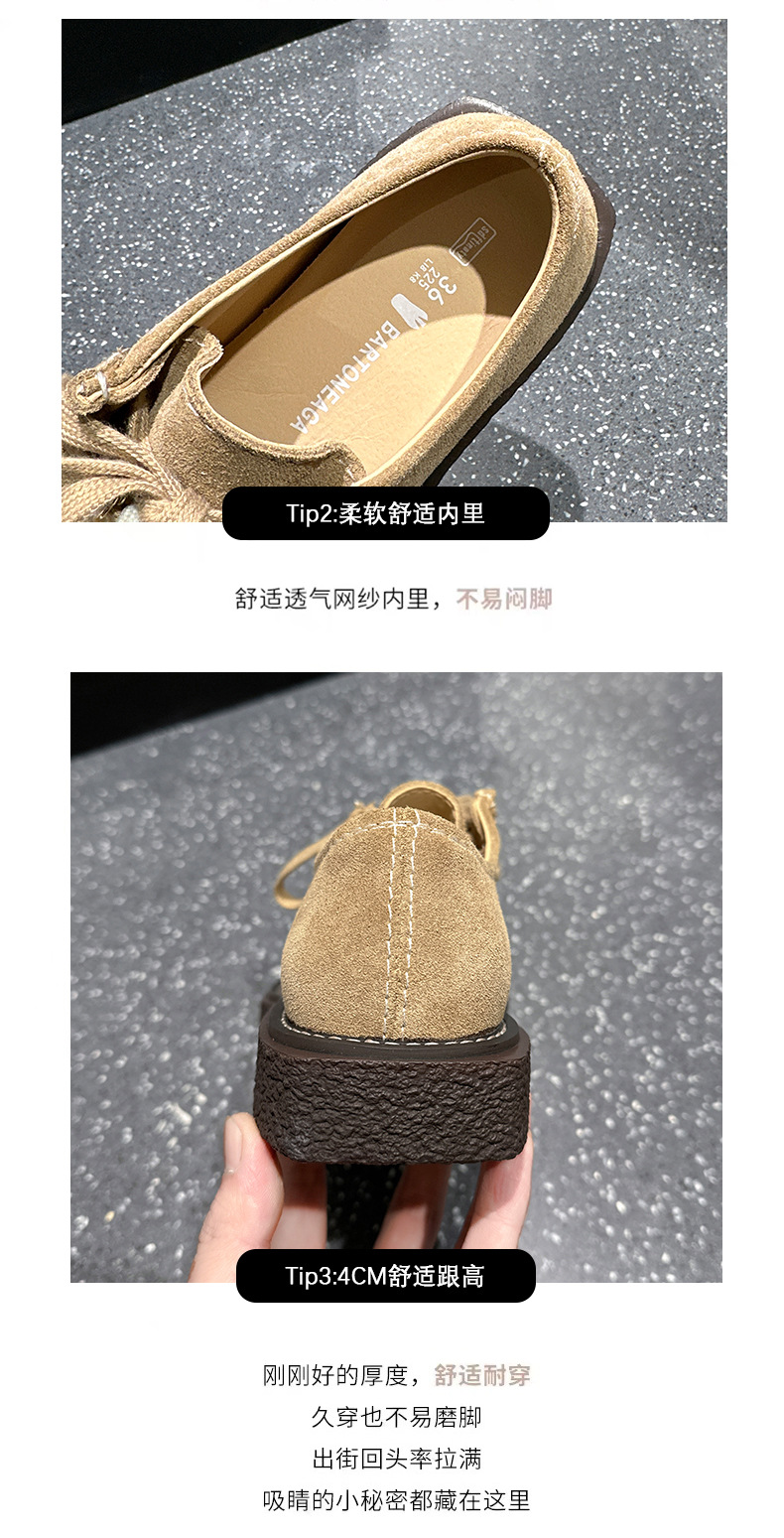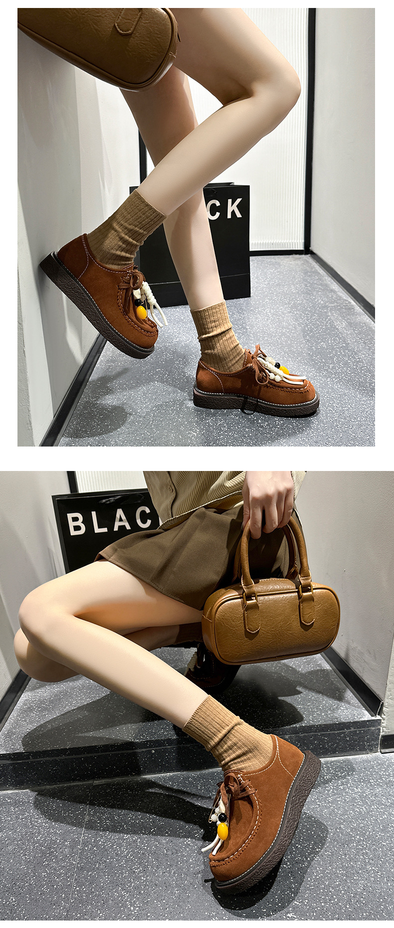 정품 가죽 빅 헤드 더비 슈즈 여성 두꺼운 밑창 신발 2025 봄 신작 영국 스타일 로퍼 복고풍 작은 가죽 신발스토어 가기