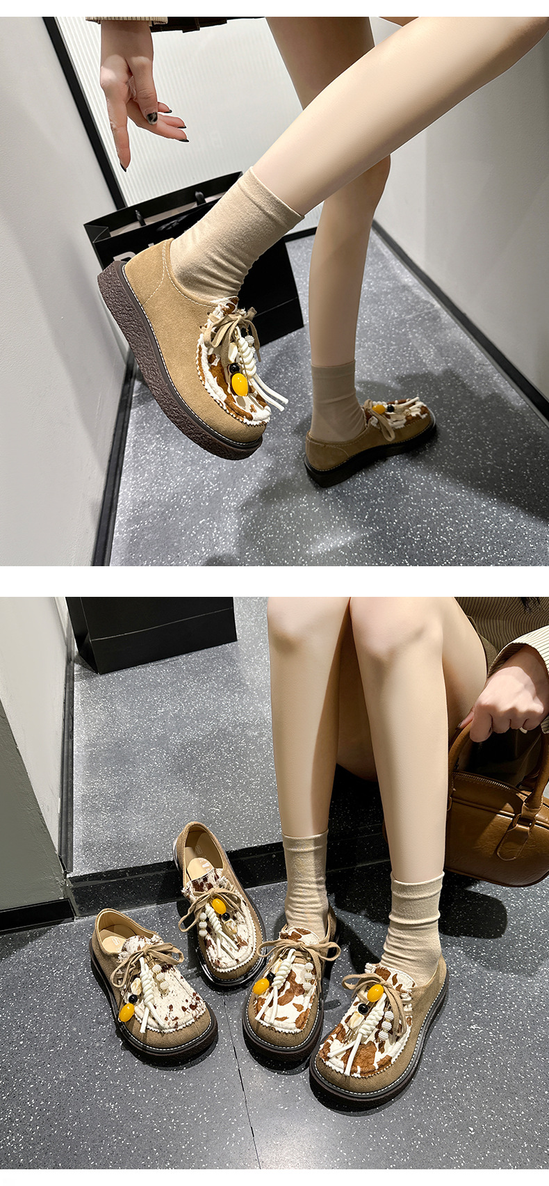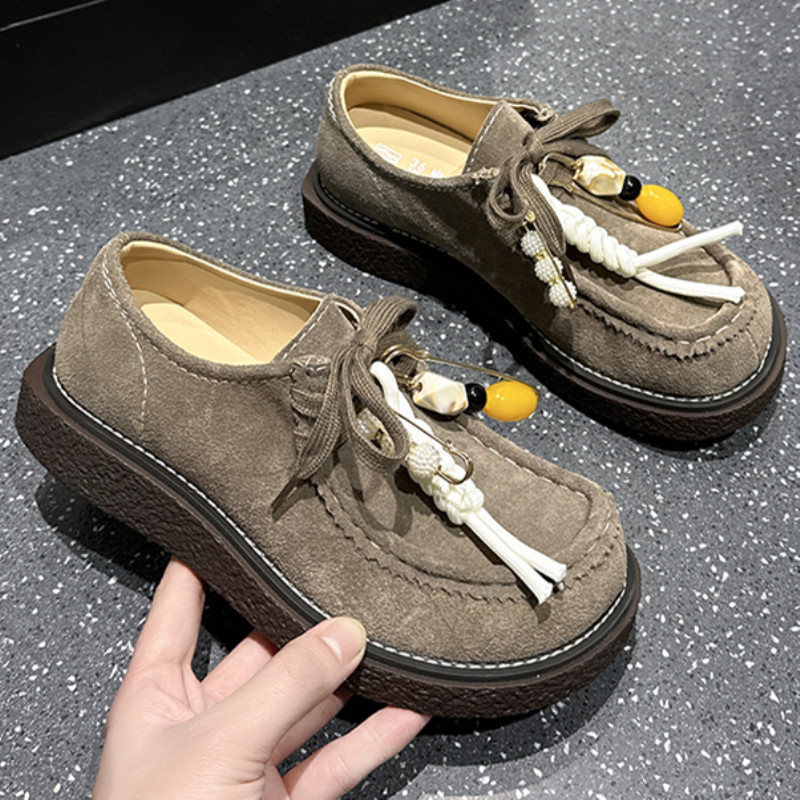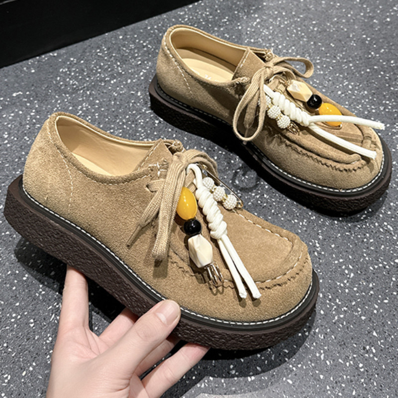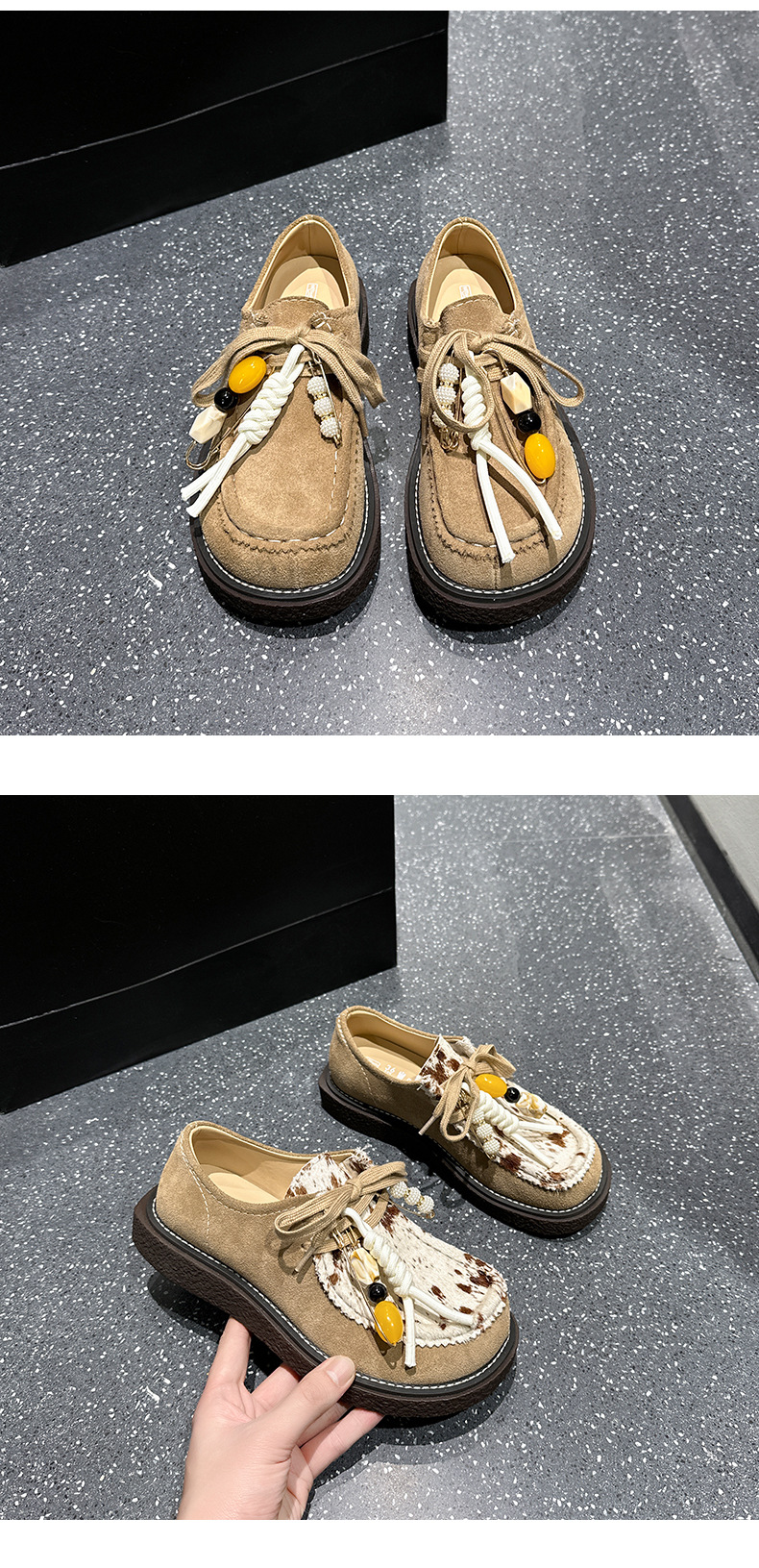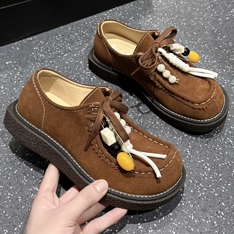 정품 가죽 빅 헤드 더비 슈즈 여성 두꺼운 밑창 신발 2025 봄 신작 영국 스타일 로퍼 복고풍 작은 가죽 신발스토어 가기