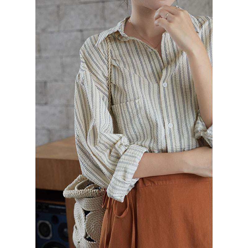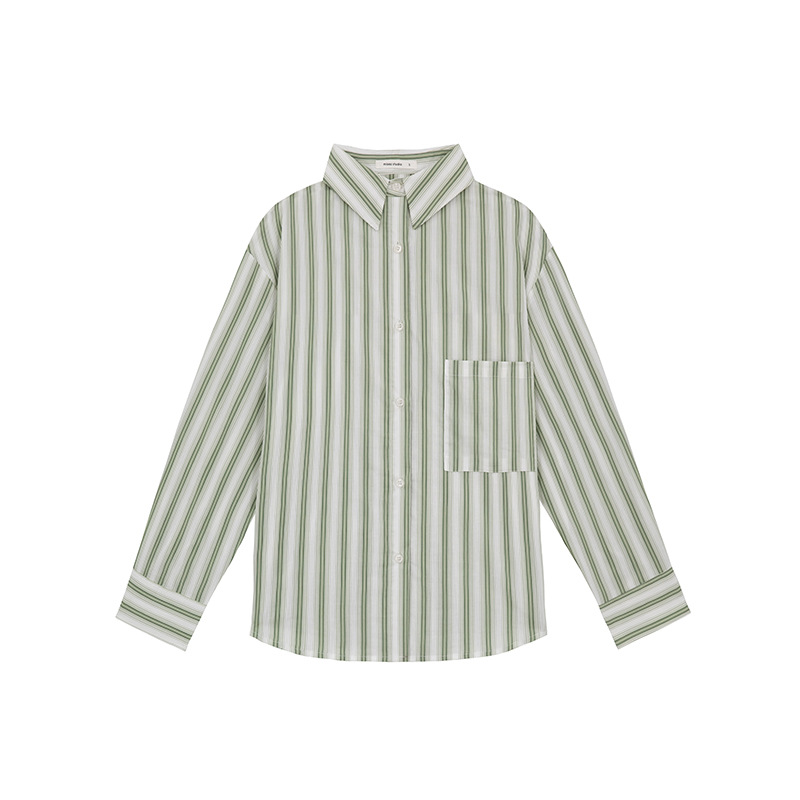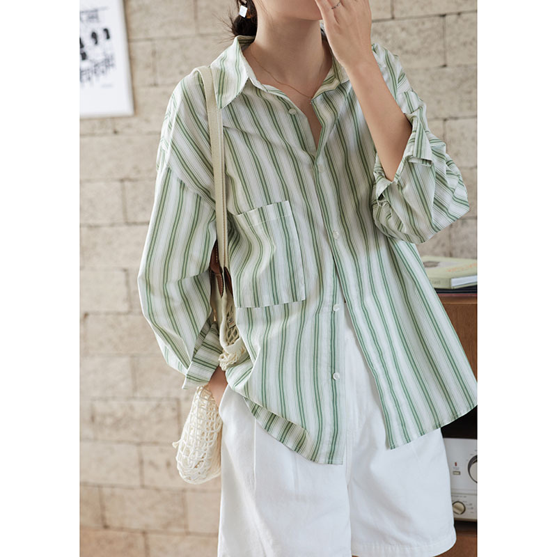 春夏新款薄外套绿条纹衬衫女宽松防晒衫显瘦百搭慵懒风上衣中长款스토어 가기