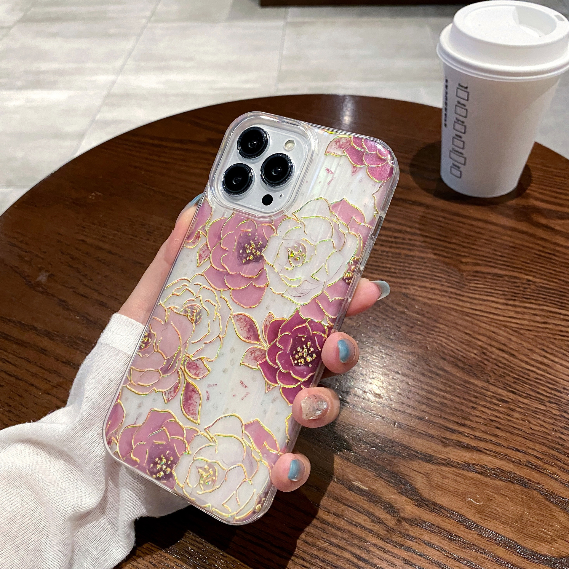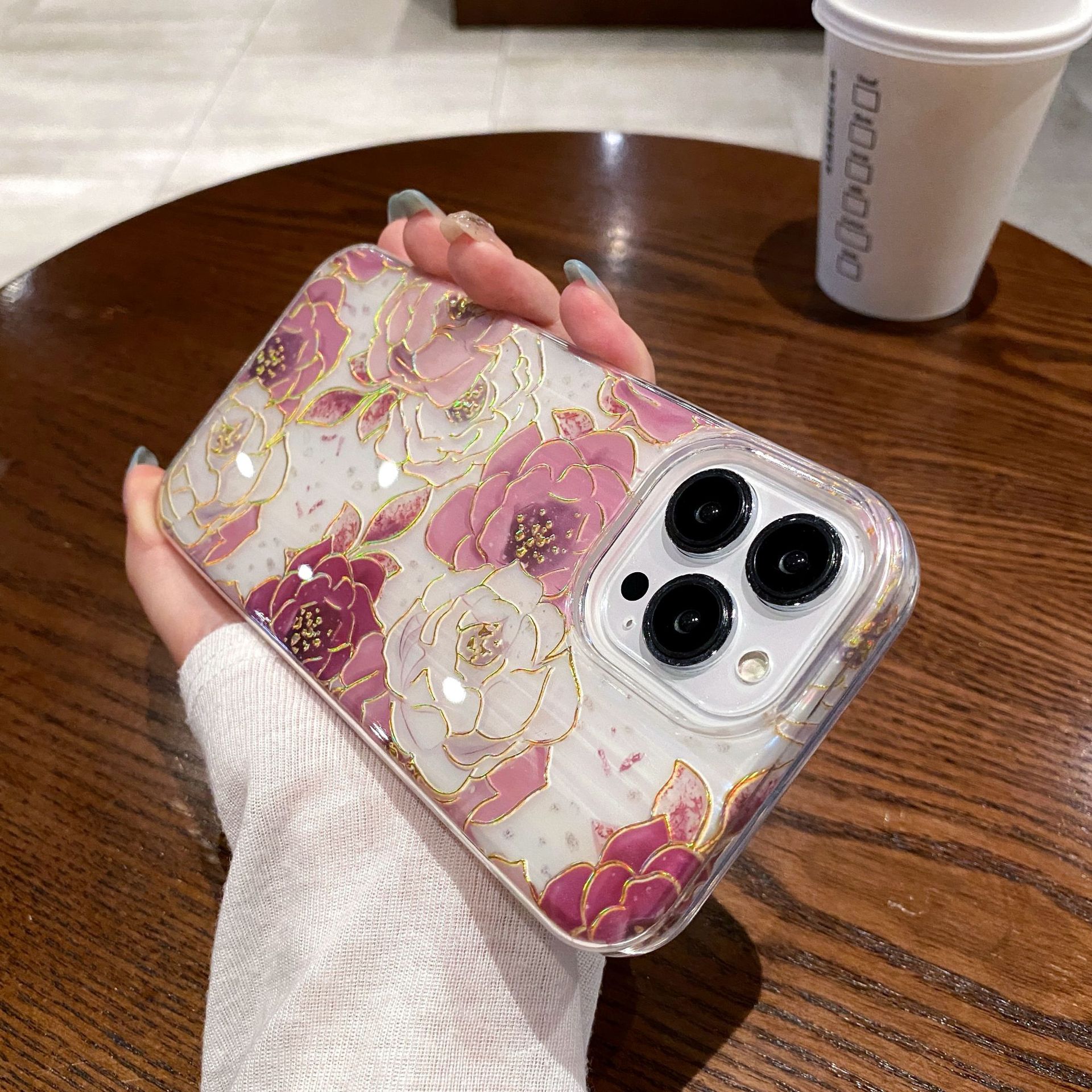暗粉牡丹三合一全包苹果11手机壳12炫彩iPhone14promax苹果手机壳