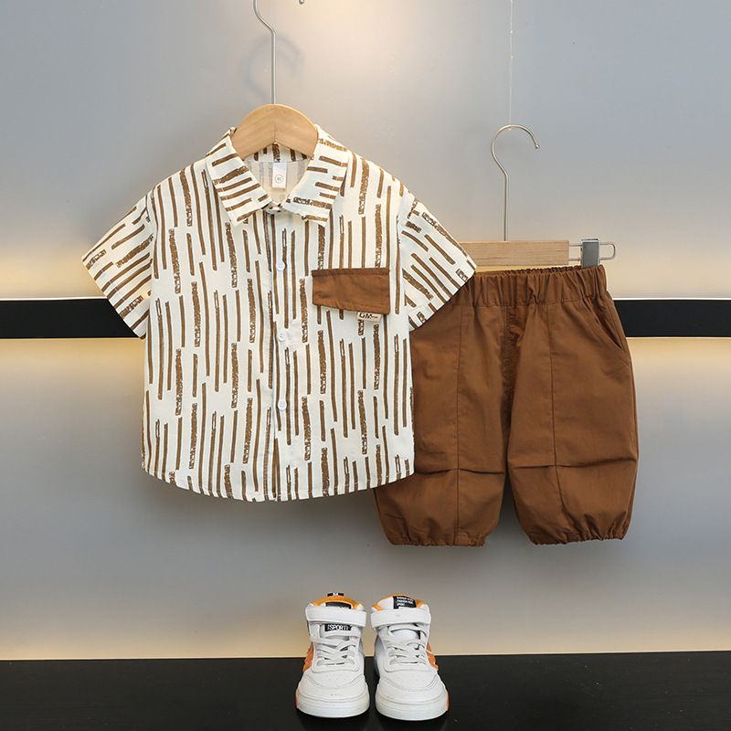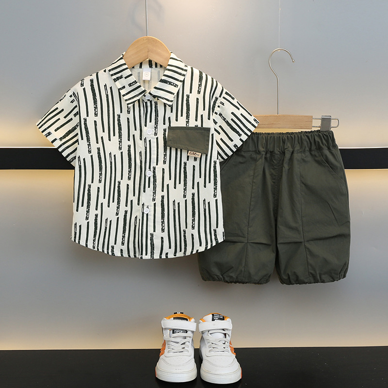 男童夏装套装2024新款洋气儿童装韩版衬衫两件套宝宝夏季薄款衣服