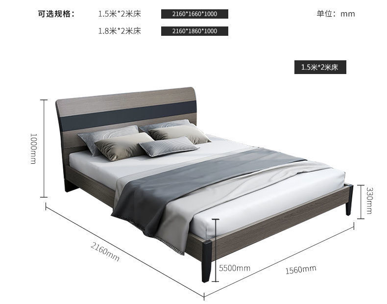 [602 컬렉션] 2023 새로운 광동 불산 단단한 나무 1.8 m 침대 높은 상자 1.2 m 싱글 침대 더블