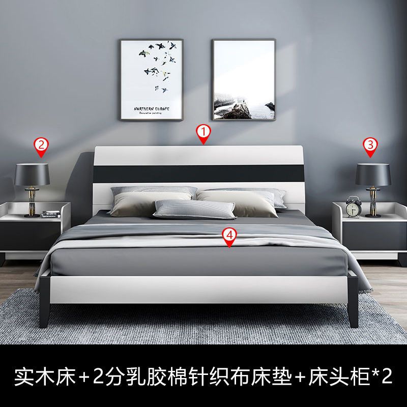 • 원목 침대 + 2포인트 라텍스 면 니트 매트리스 + 캐비닛 1개