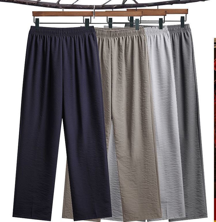 중년 및 노인 여름 당나라 정장 남성 바지 아빠 느슨한 스트레이트 얇은 캐주얼 바지 여름 할아버지 얼음 실크 바지