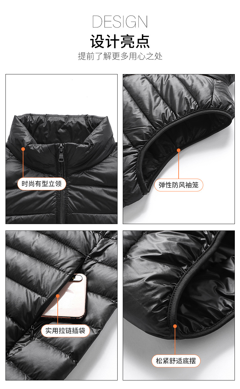 국경을 넘는 새로운 남성 스탠드 칼라 다운 라이너 조끼 라이트 다운 재킷 따뜻한 민소매 재킷 얇은 양복 조끼스토어 가기