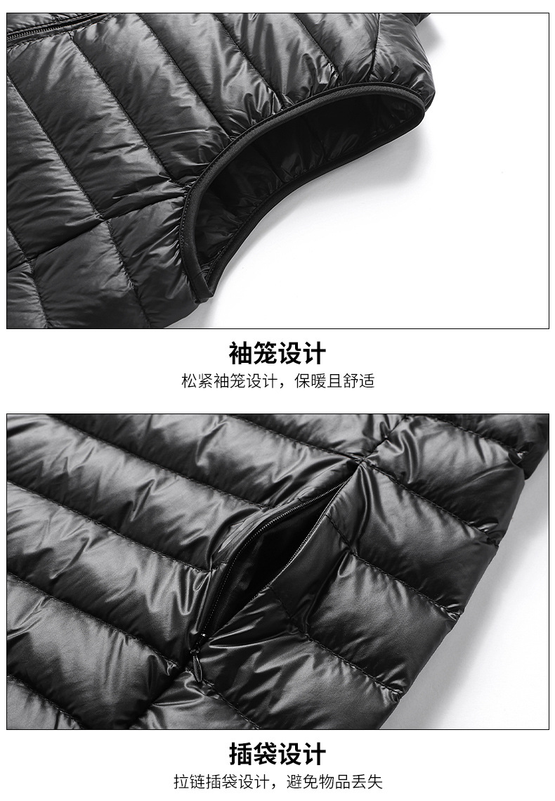 국경을 넘는 새로운 남성 스탠드 칼라 다운 라이너 조끼 라이트 다운 재킷 따뜻한 민소매 재킷 얇은 양복 조끼